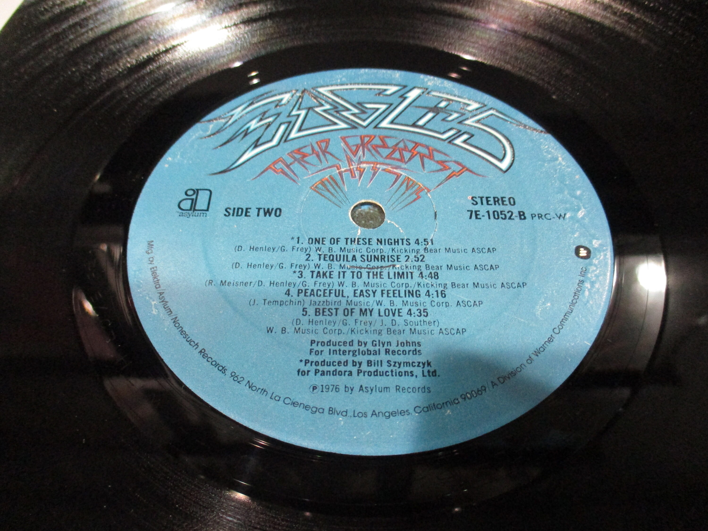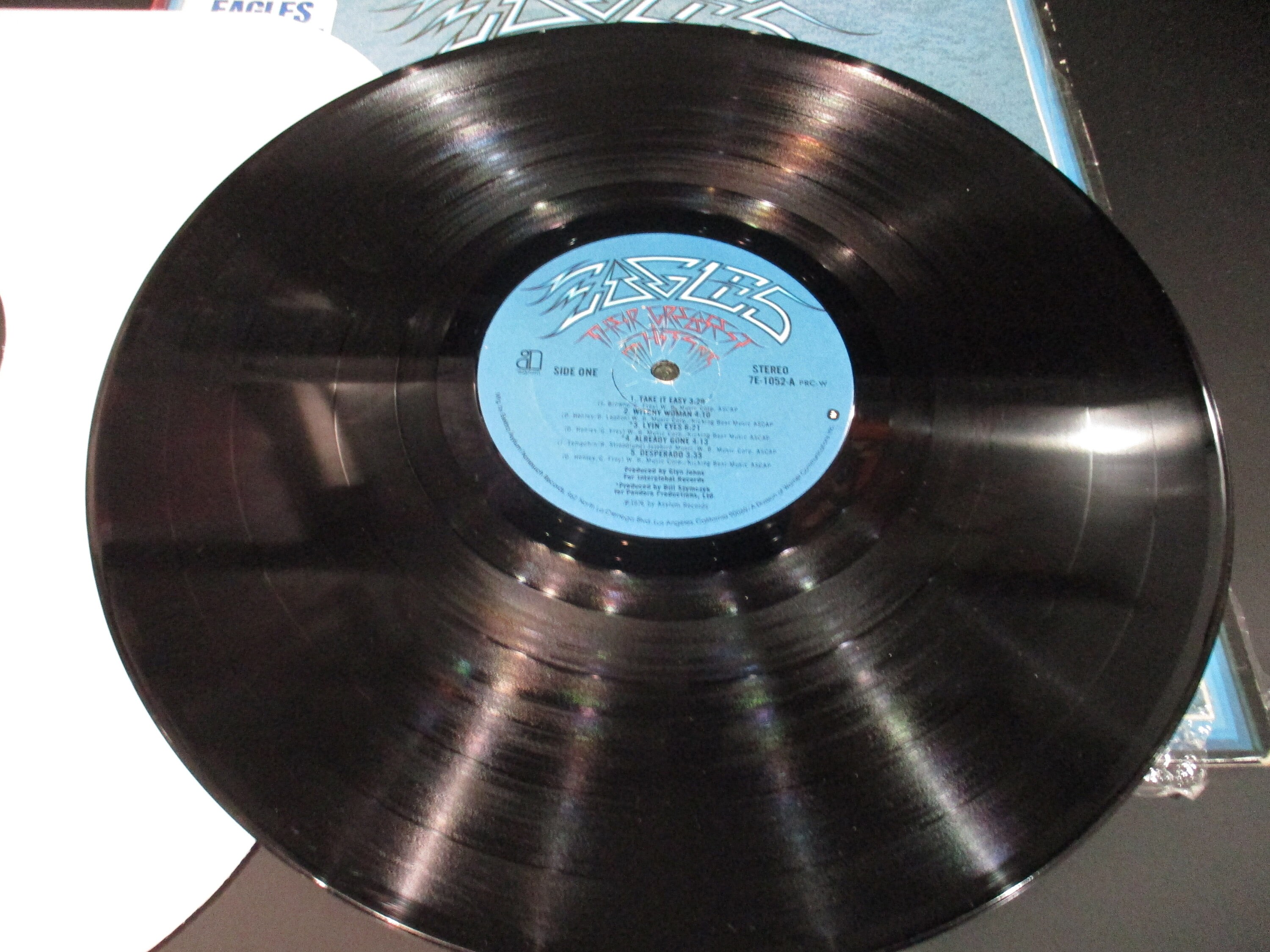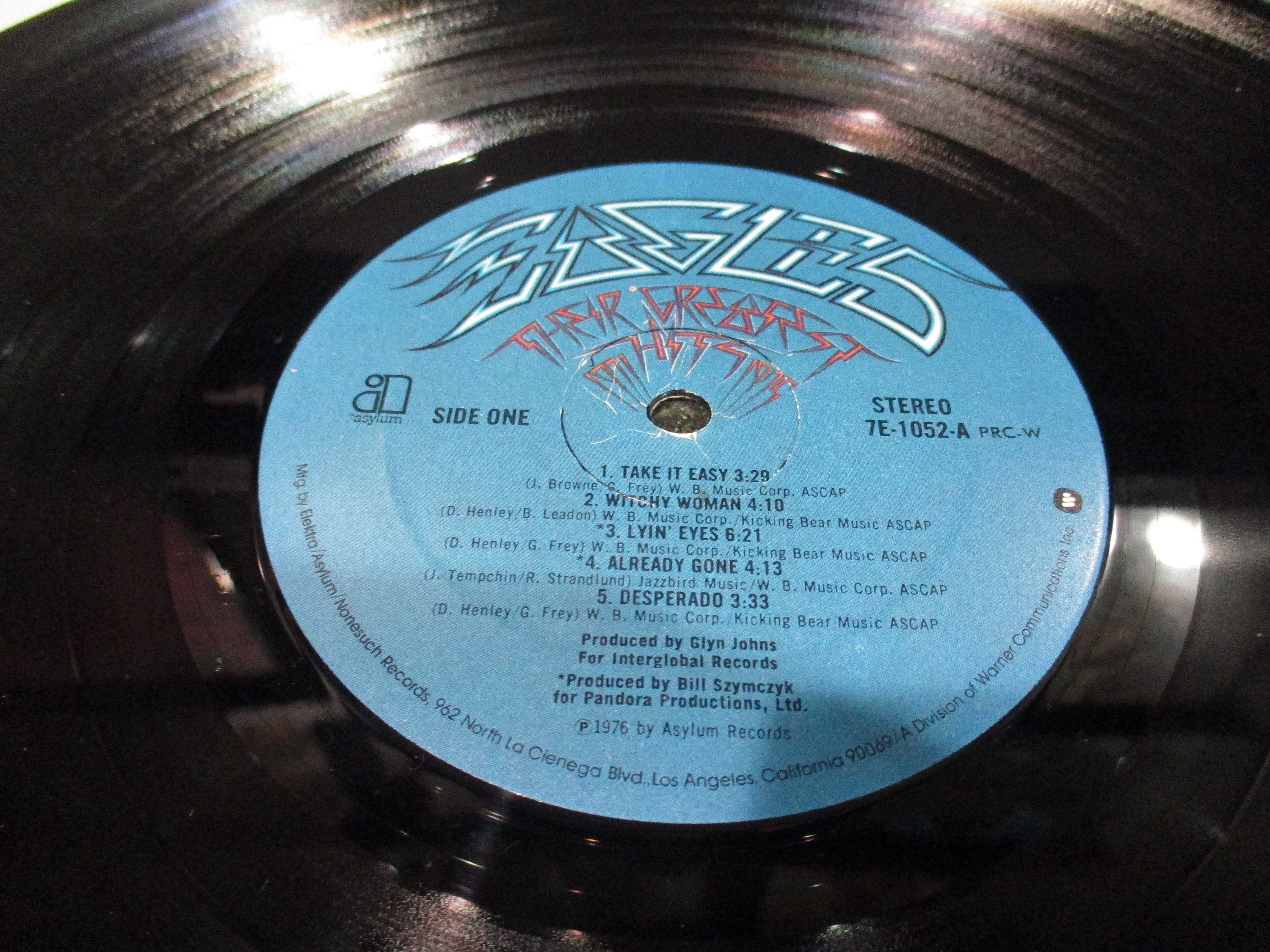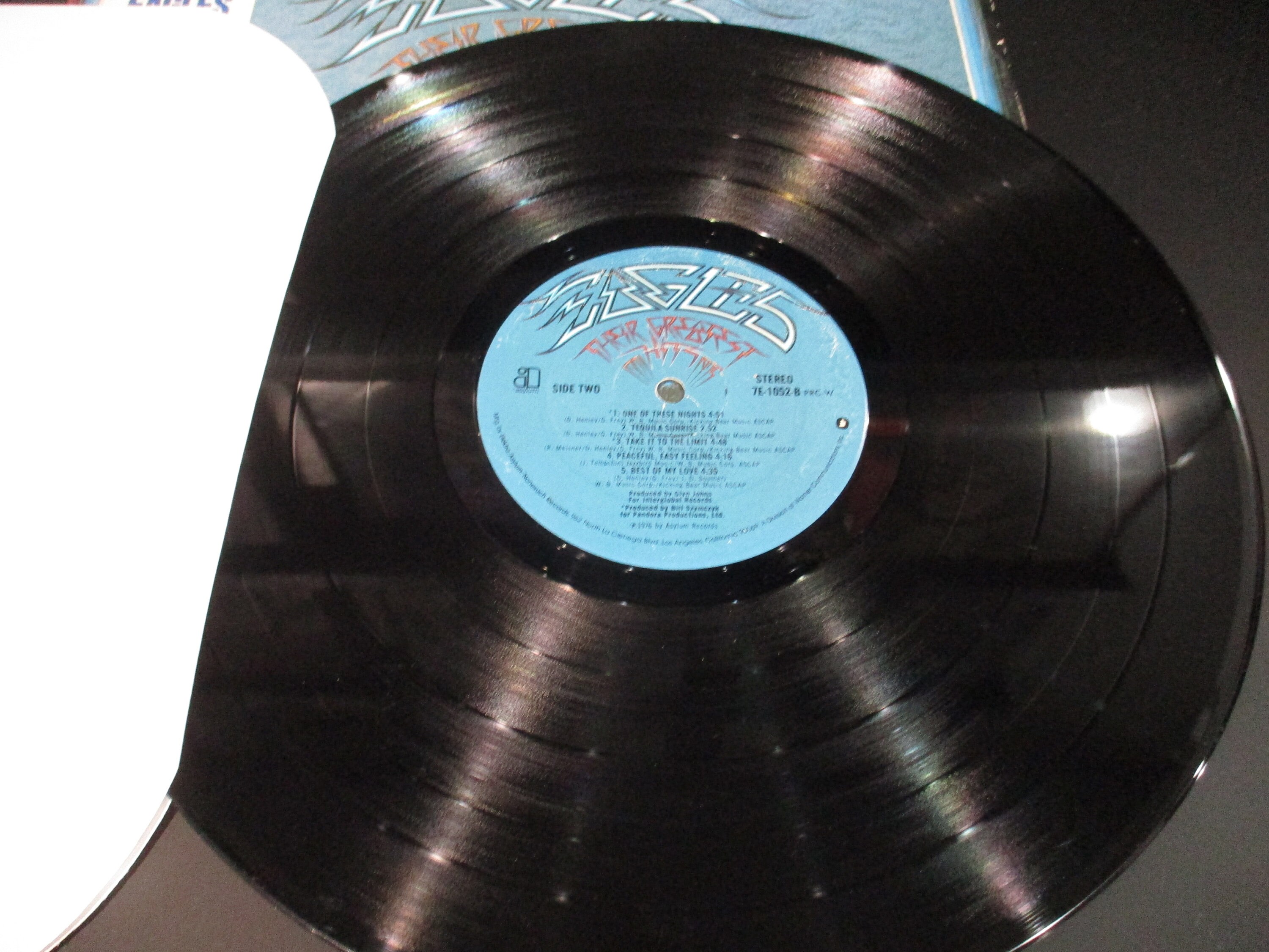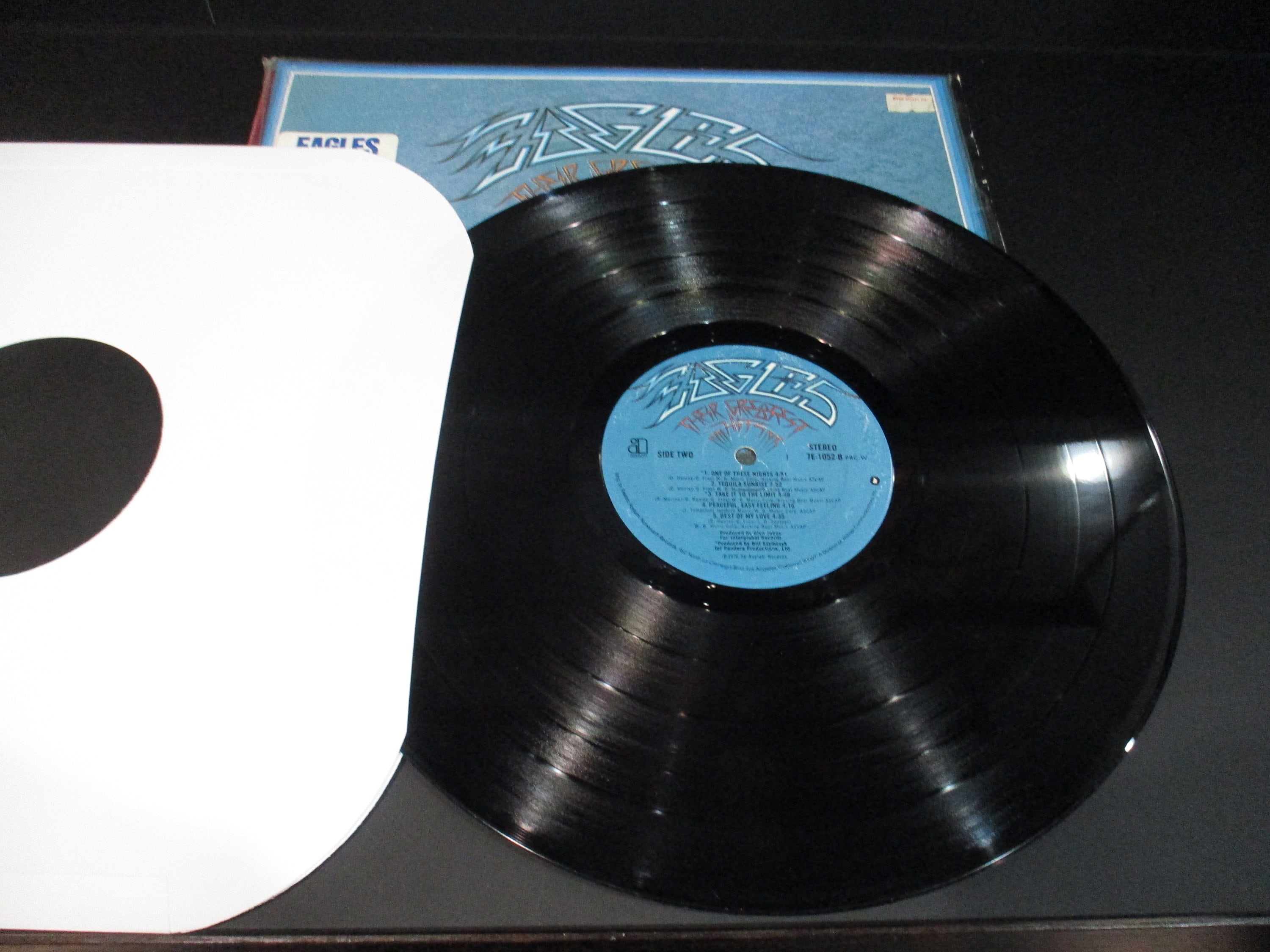 Vintage 1976 LP Vinyl Record The Eagles Greatest Hits Excellent Condition In Shrink Hype Sticker. Original cover is in excellent condition and includes the inner paper sleeve, factory shrink wrap and hype sticker. Record is excellent as well. Has some light marks, has been tested and plays well with no skips. Tracks are as follows