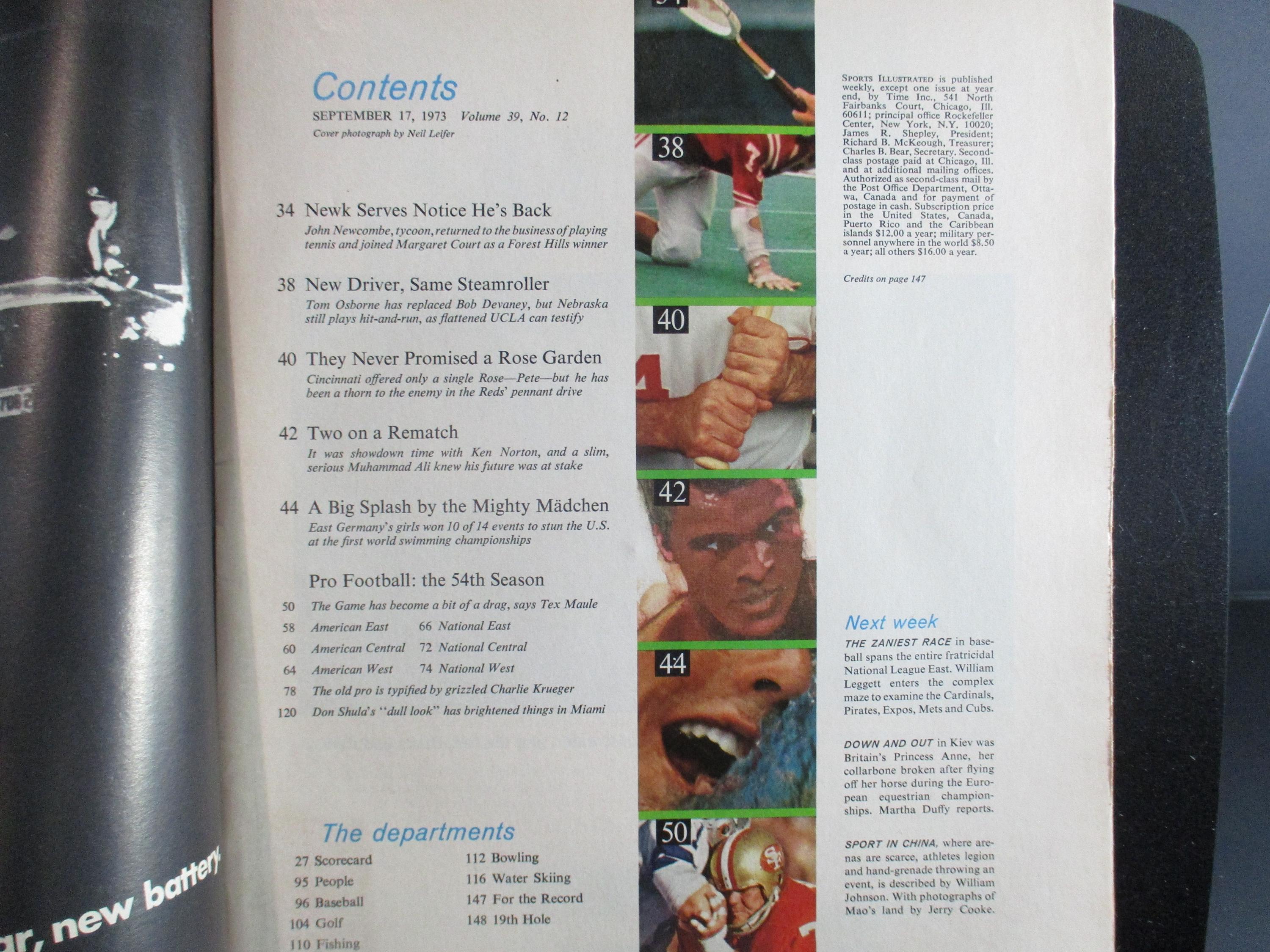 Vintage September 17, 1973 Sports Illustrated Magazine Miami Dolphins Larry Csonka Excellent Condition. Complete, great old ad's for cars, liquor, beer, cigarettes, shoes, gasoline, oil, televisions, radio's, and on and on!
