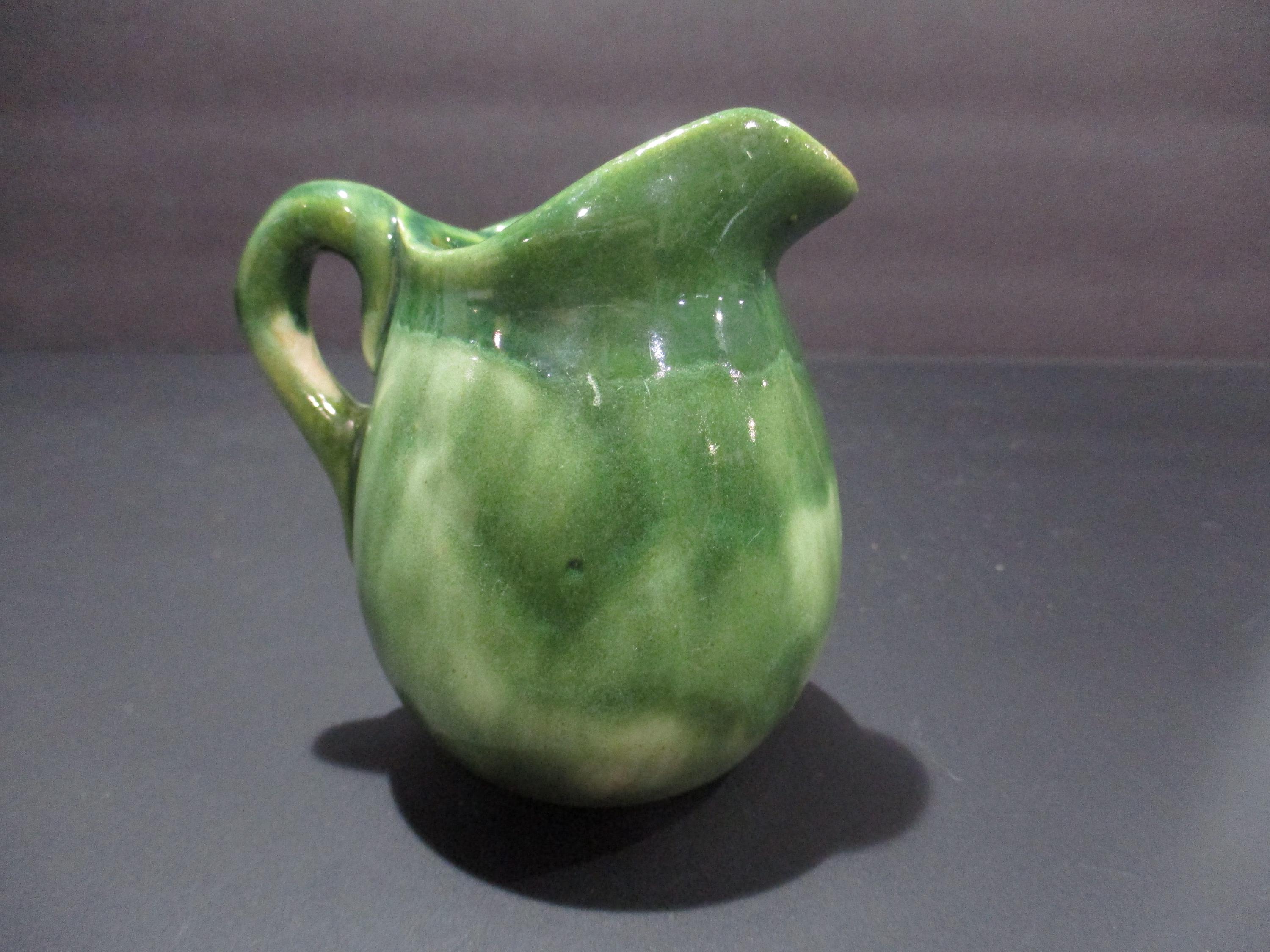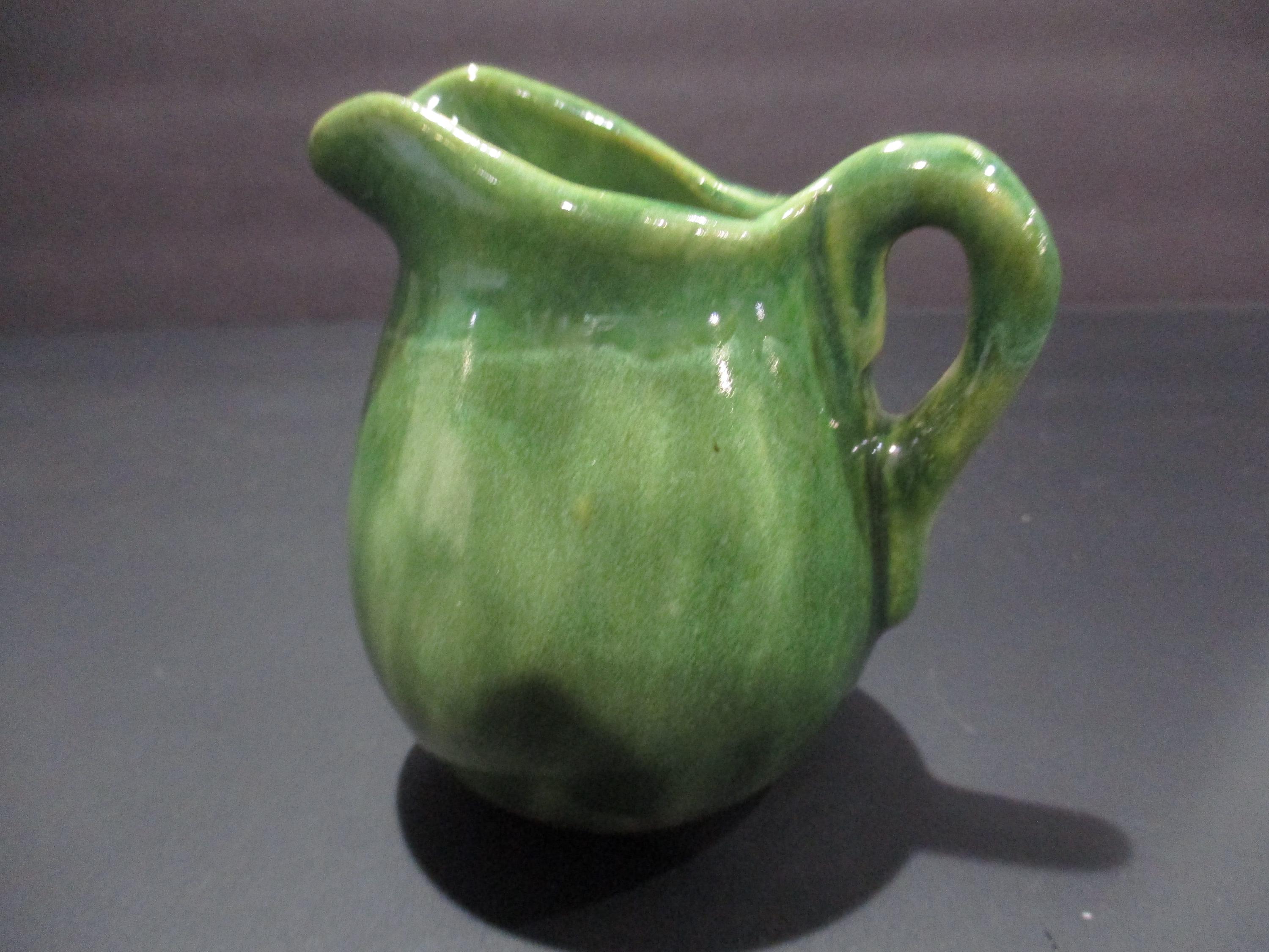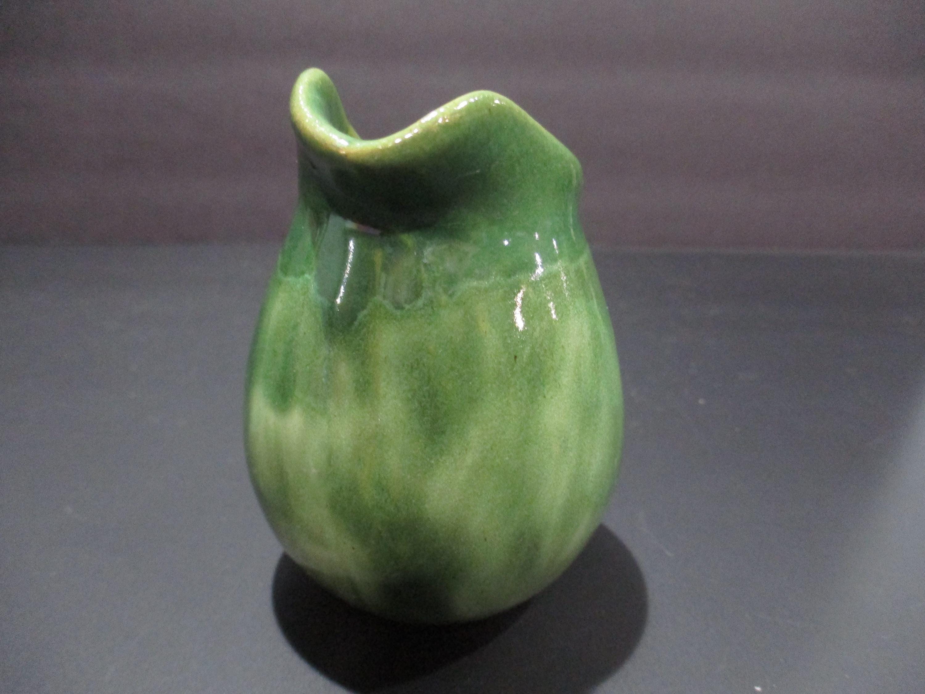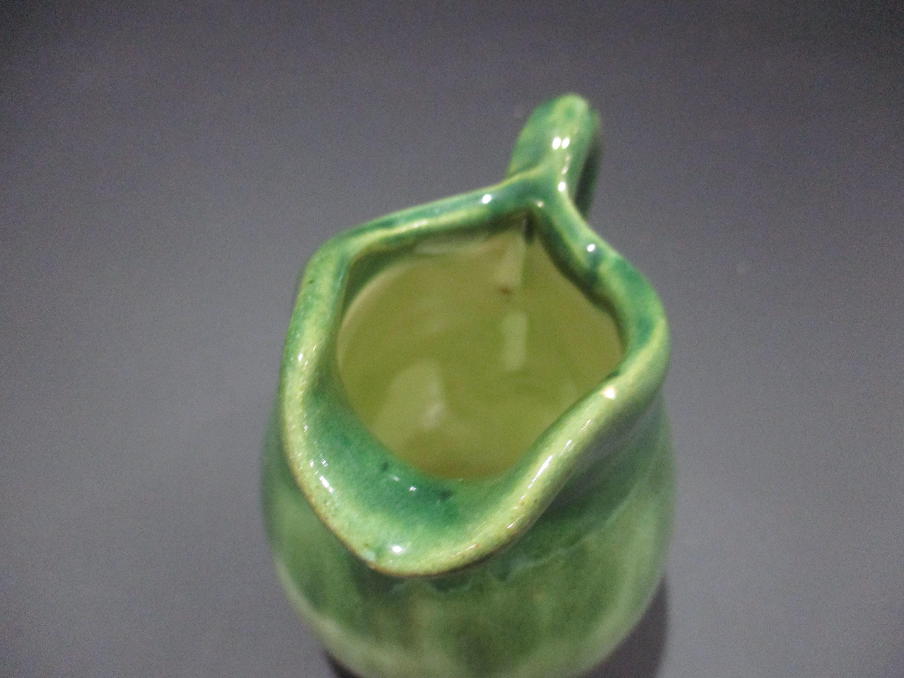 Mini Pottery Green Pitcher Lydia Los Angeles 3.5 Inches tall Adorable Excellent Condition . Beautiful LIttle Pitcher and a great gift!