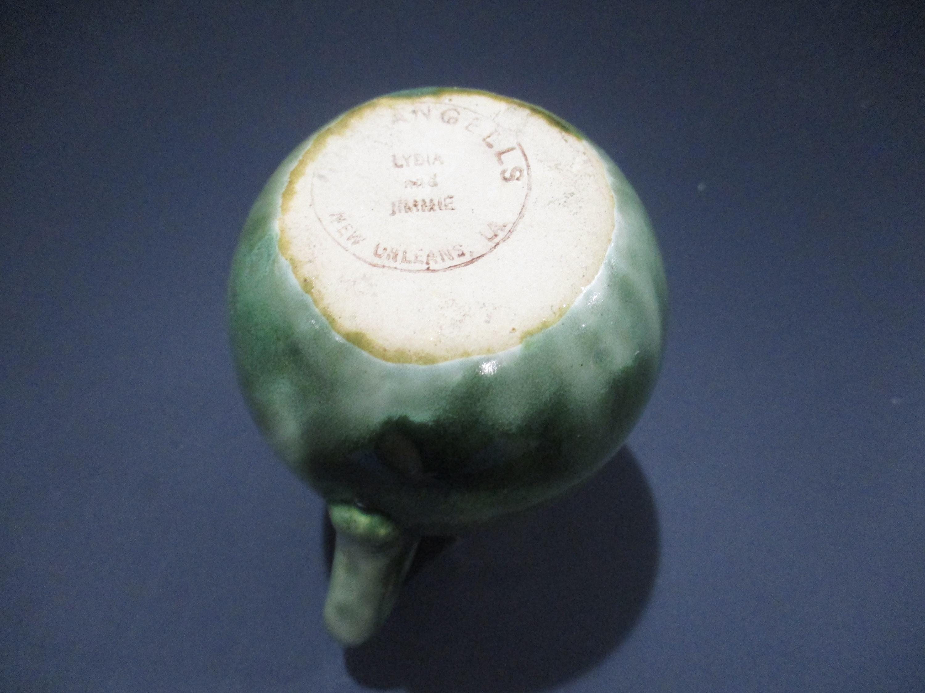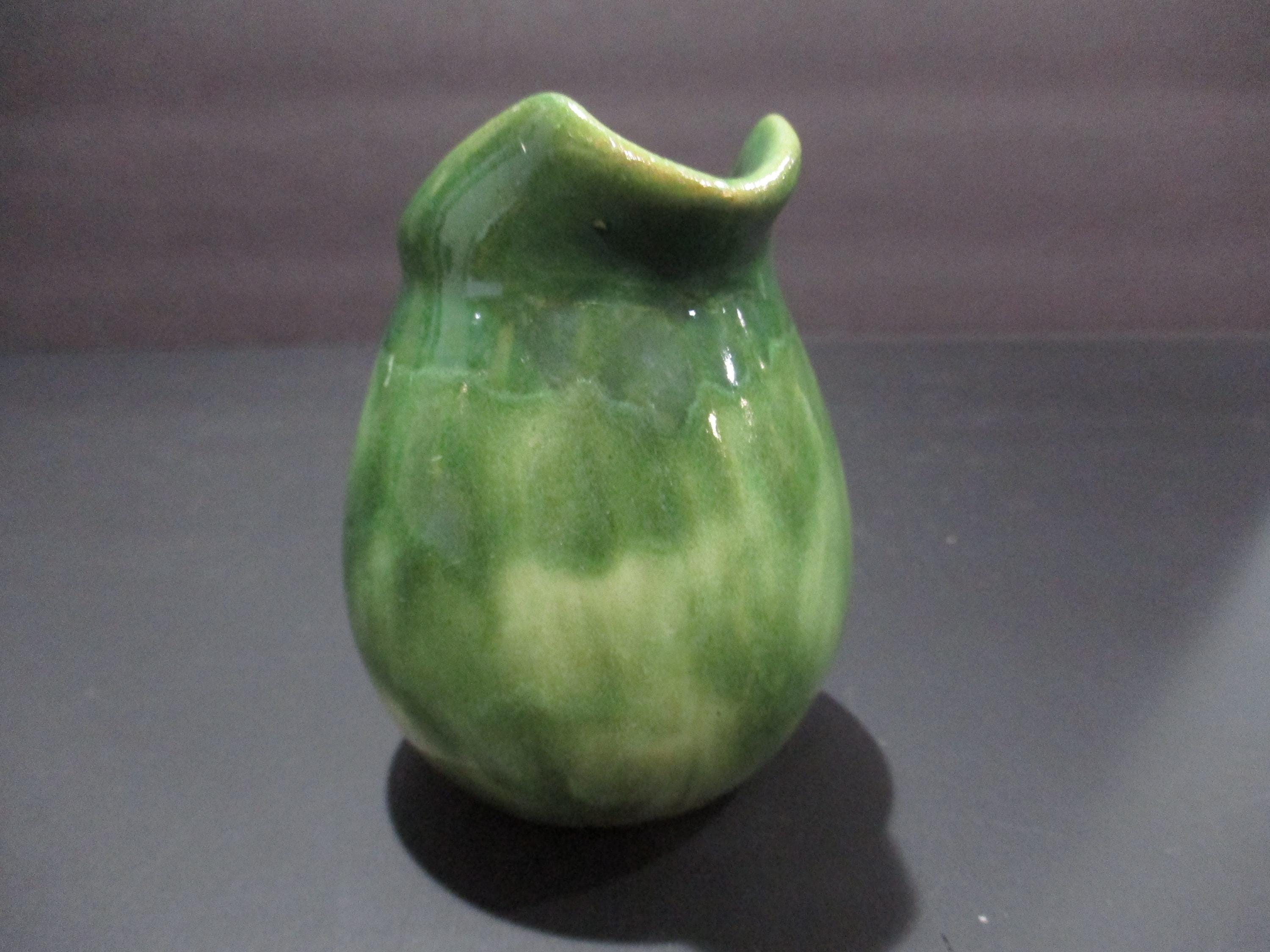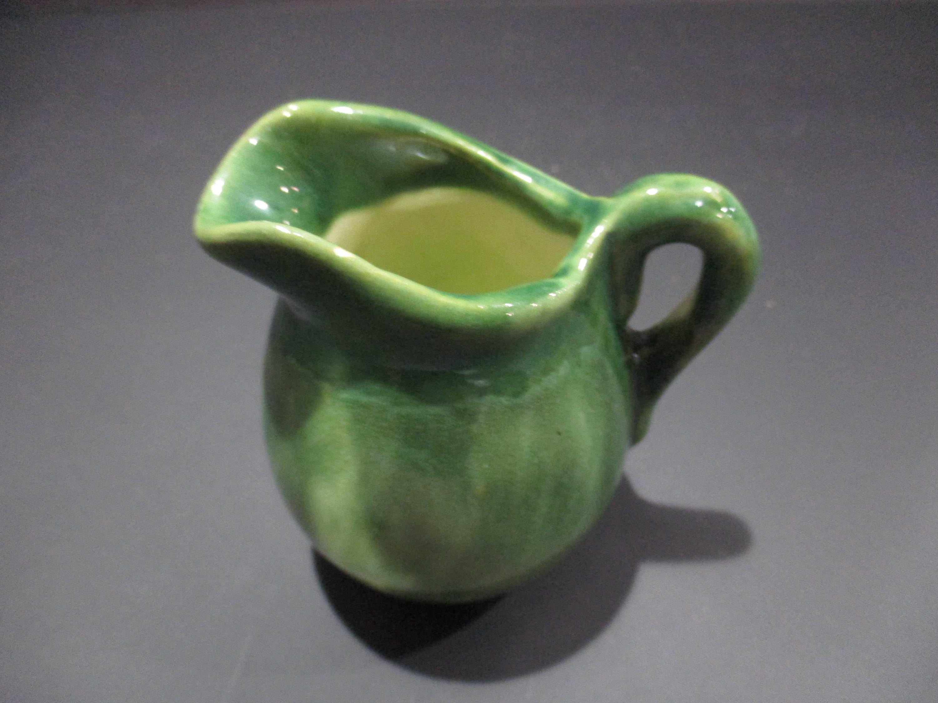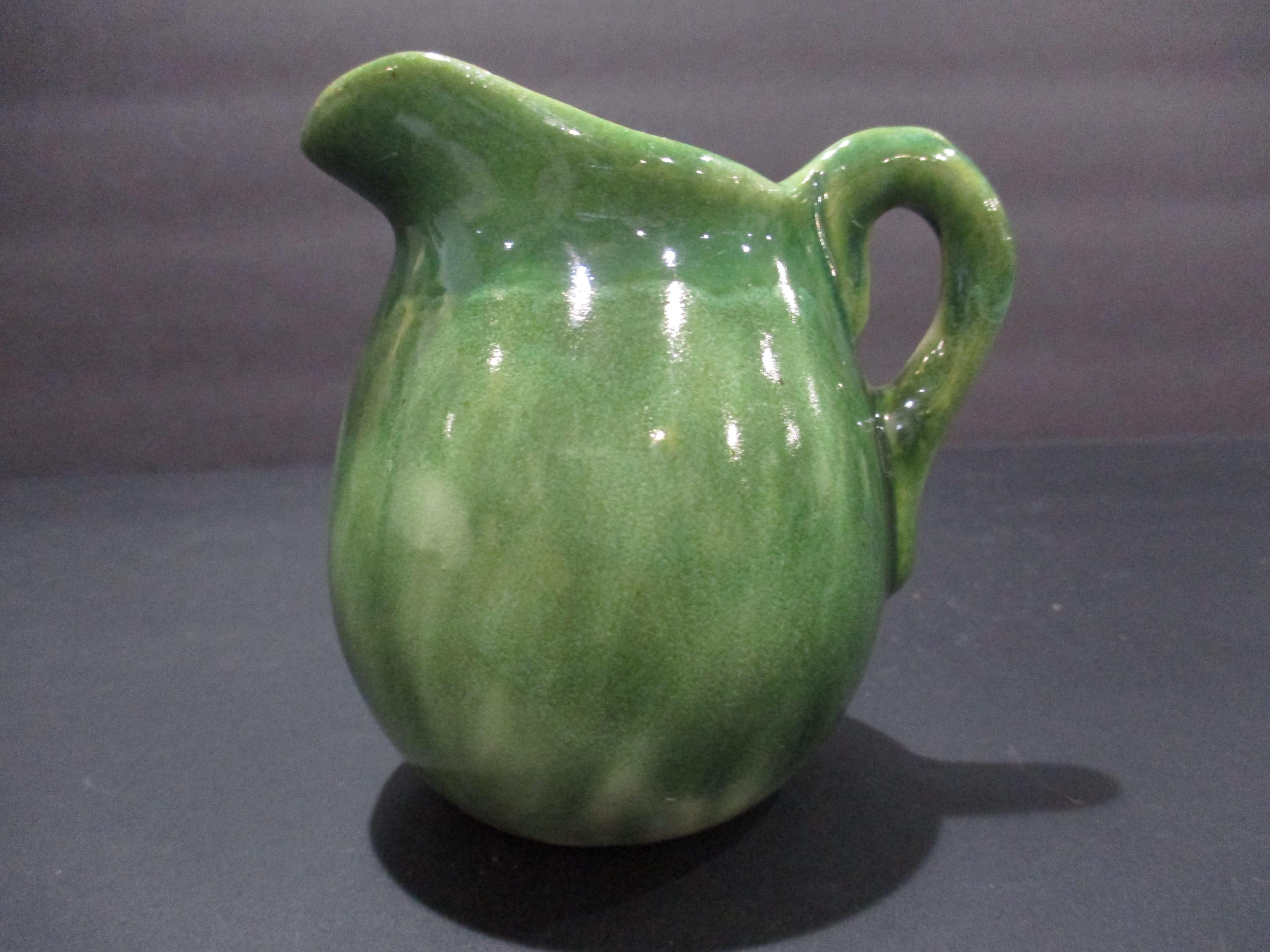 Mini Pottery Green Pitcher Lydia Los Angeles 3.5 Inches tall Adorable Excellent Condition . Beautiful LIttle Pitcher and a great gift!