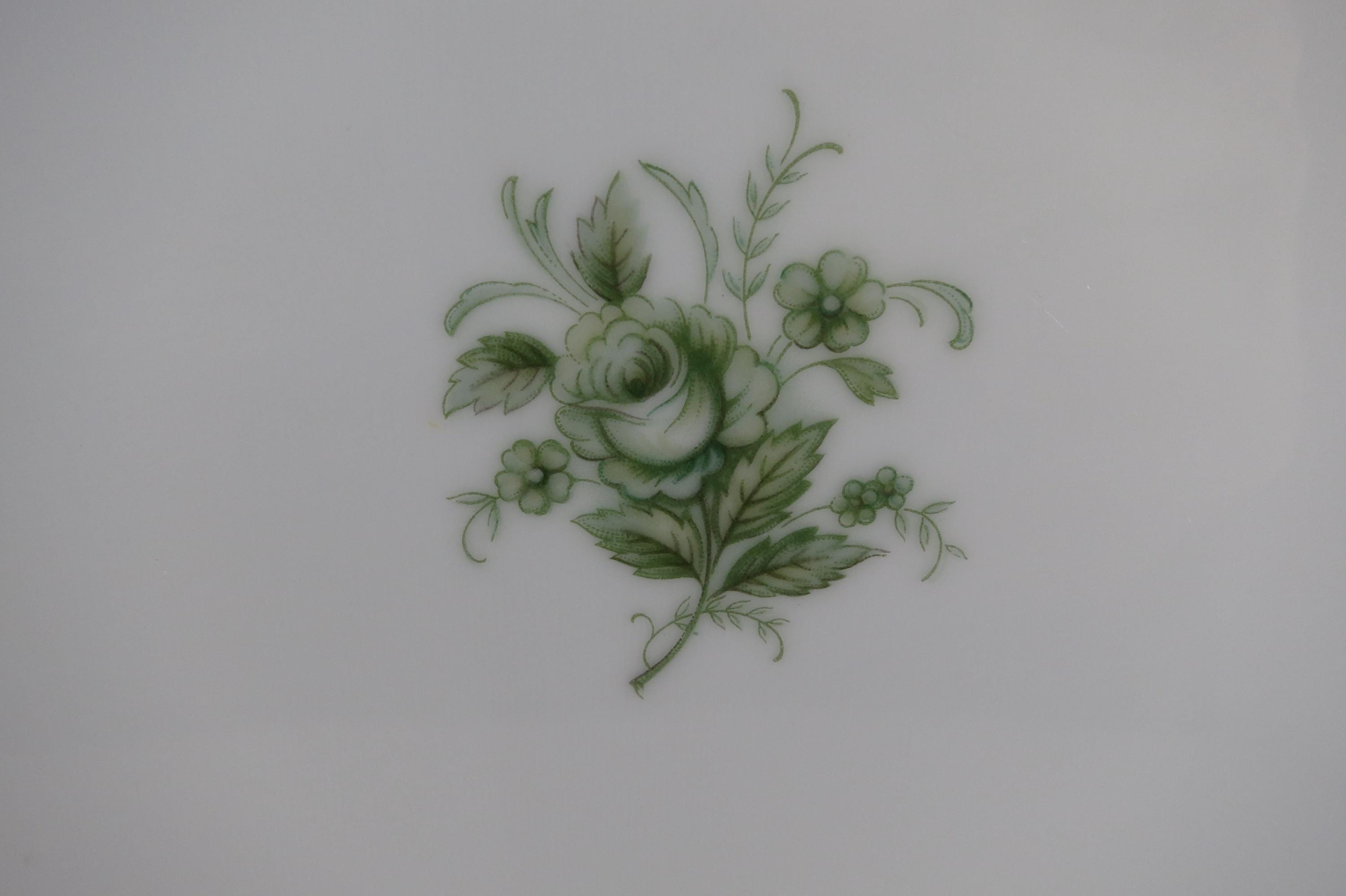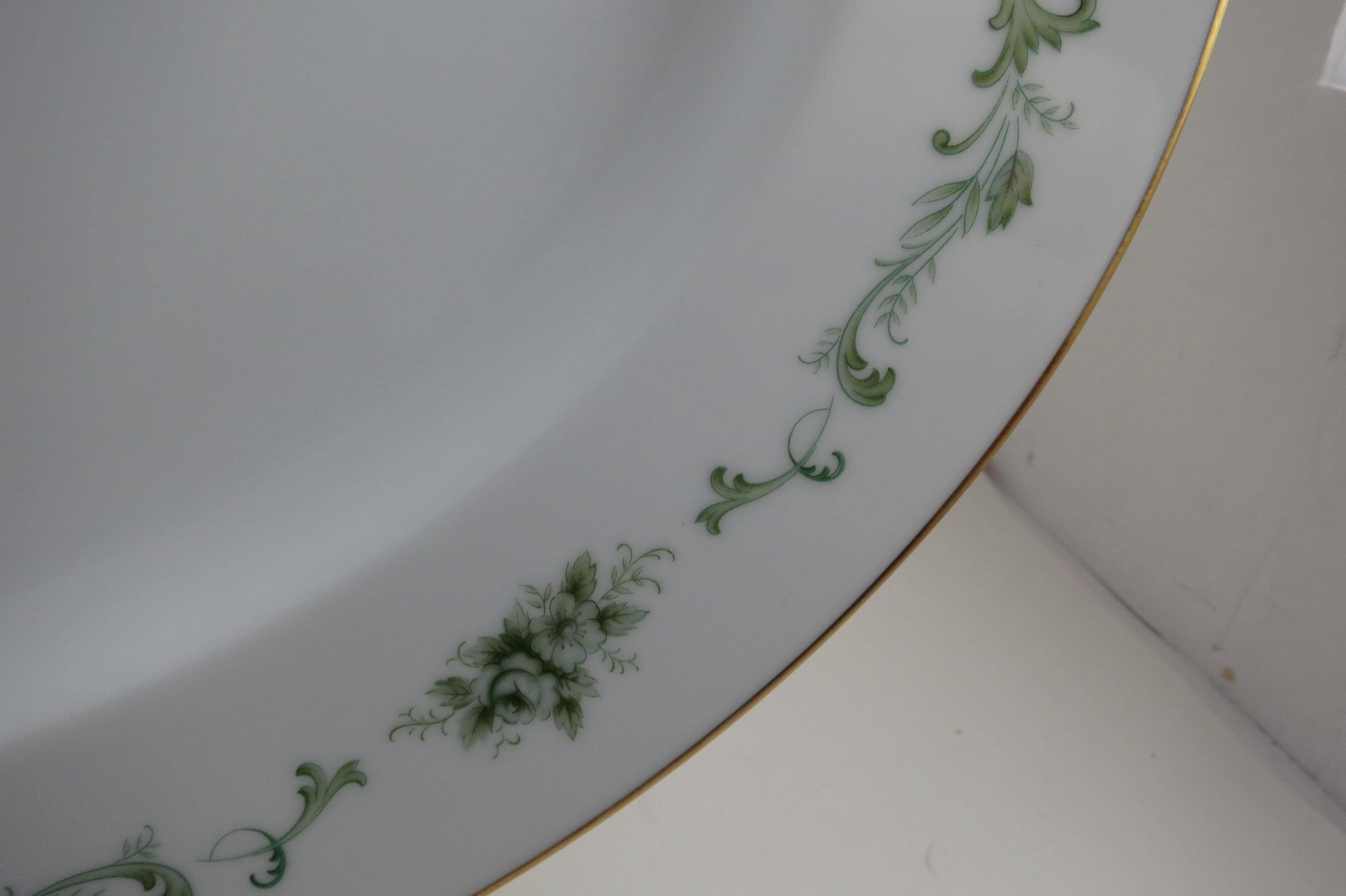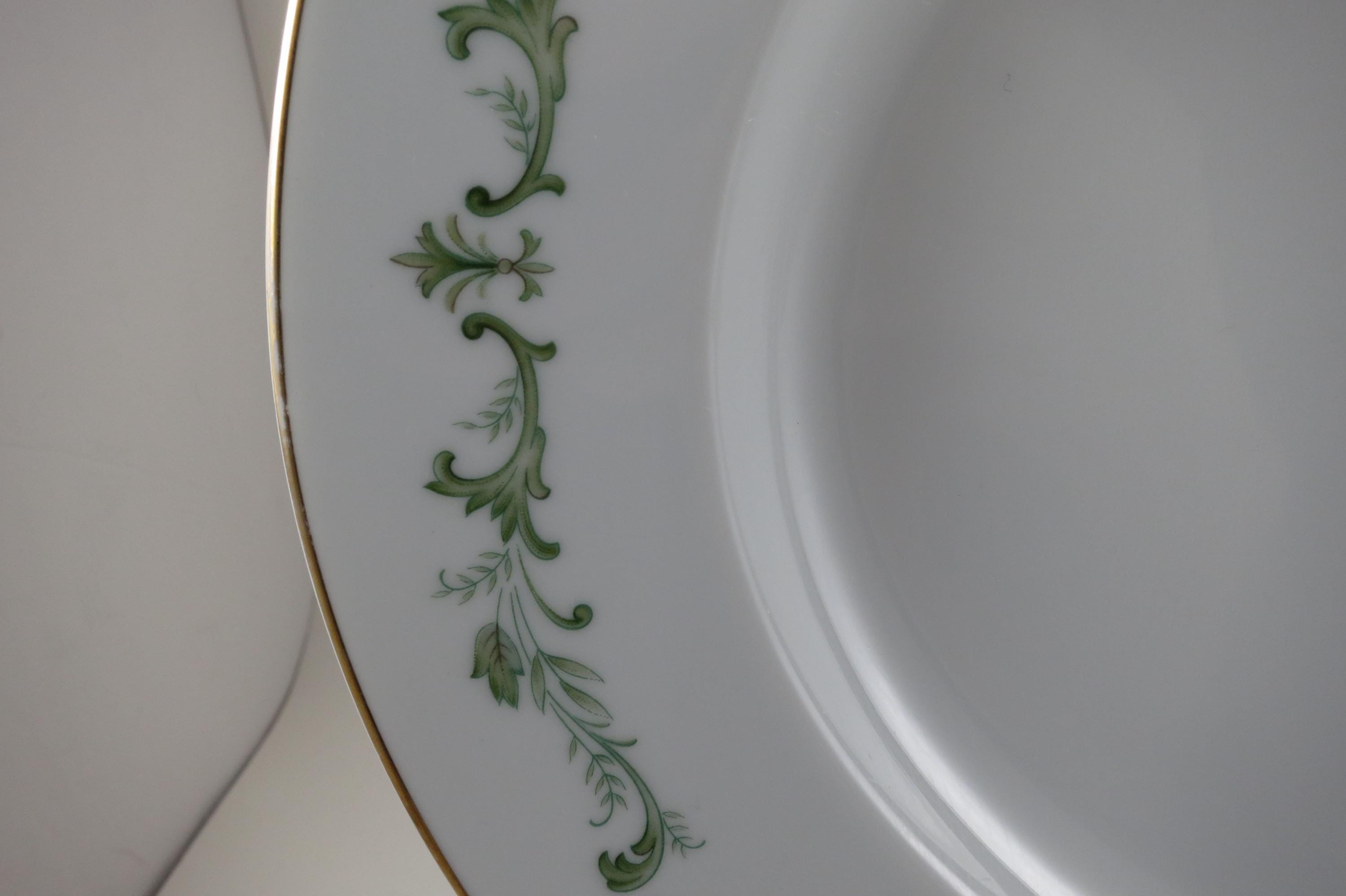 Beautiful Pattern made by Noritake between 1963 and 1967. White with green flowers, leaves and scroll. Beautiful condition with no chips, cracks or damages. Shows hardly and use wear.