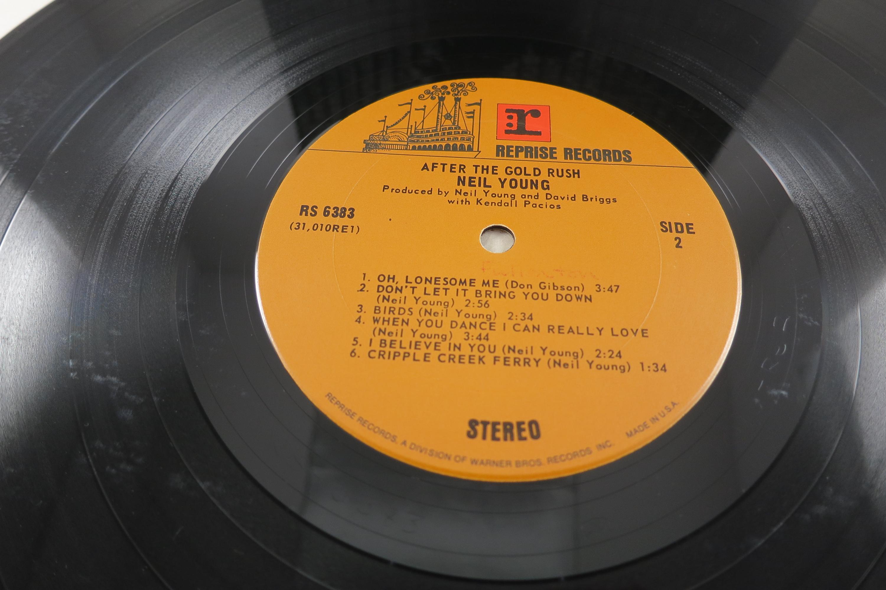1970 LP Record Neil Young After The Gold Rush Very Good Condition. Original Gate fold Cover is in very good condition and includes the inner paper sleeve. Rear seam is taped. Record is very good. Has plastic gassing marks and a light storage warp, but has been tested and plays very nicely. Great Gift or addition to any collection. Tracks are as follows