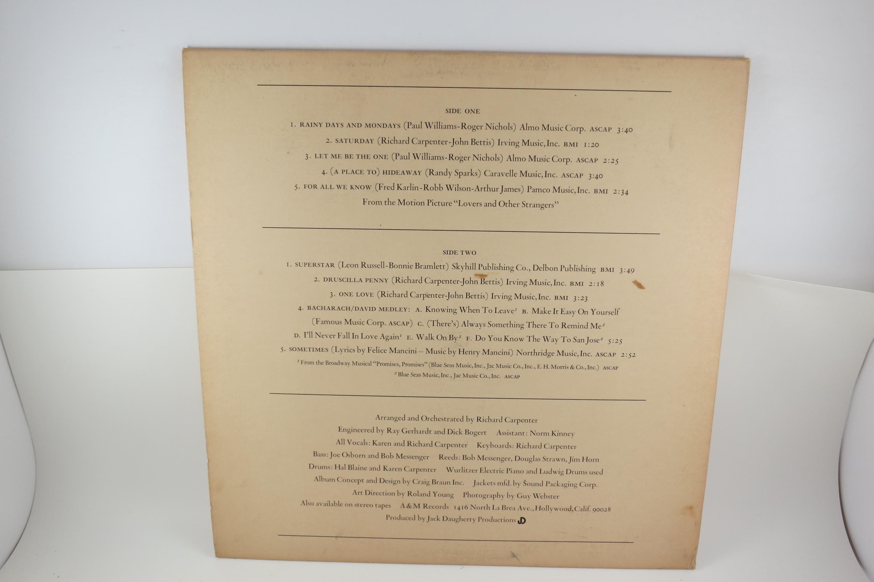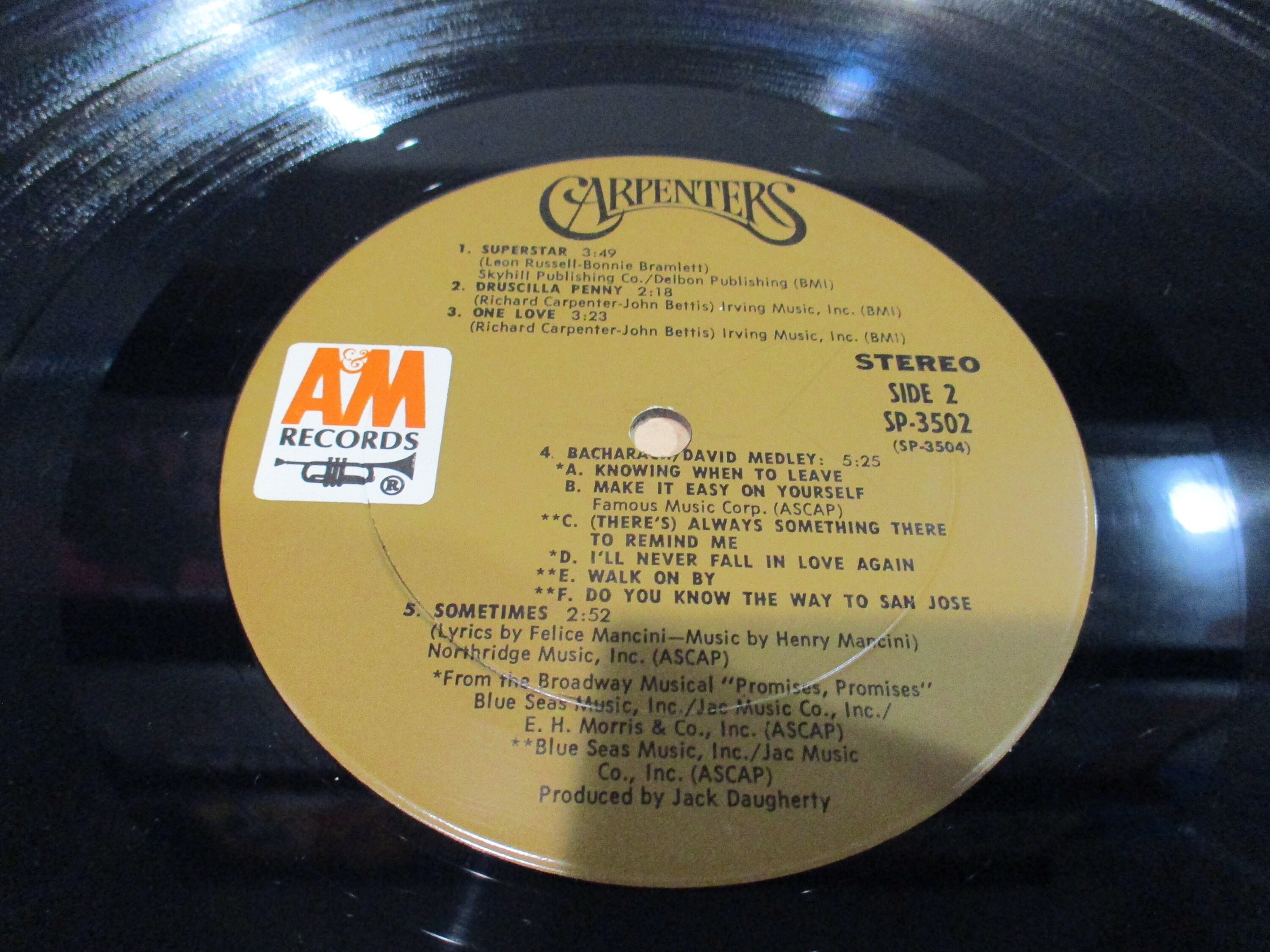 1971 Vinyl LP Record The Carpenters Excellent Condition. Original cover is in very good condition and includes the inner paper sleeve. Record is excellent. Tracks are as follows