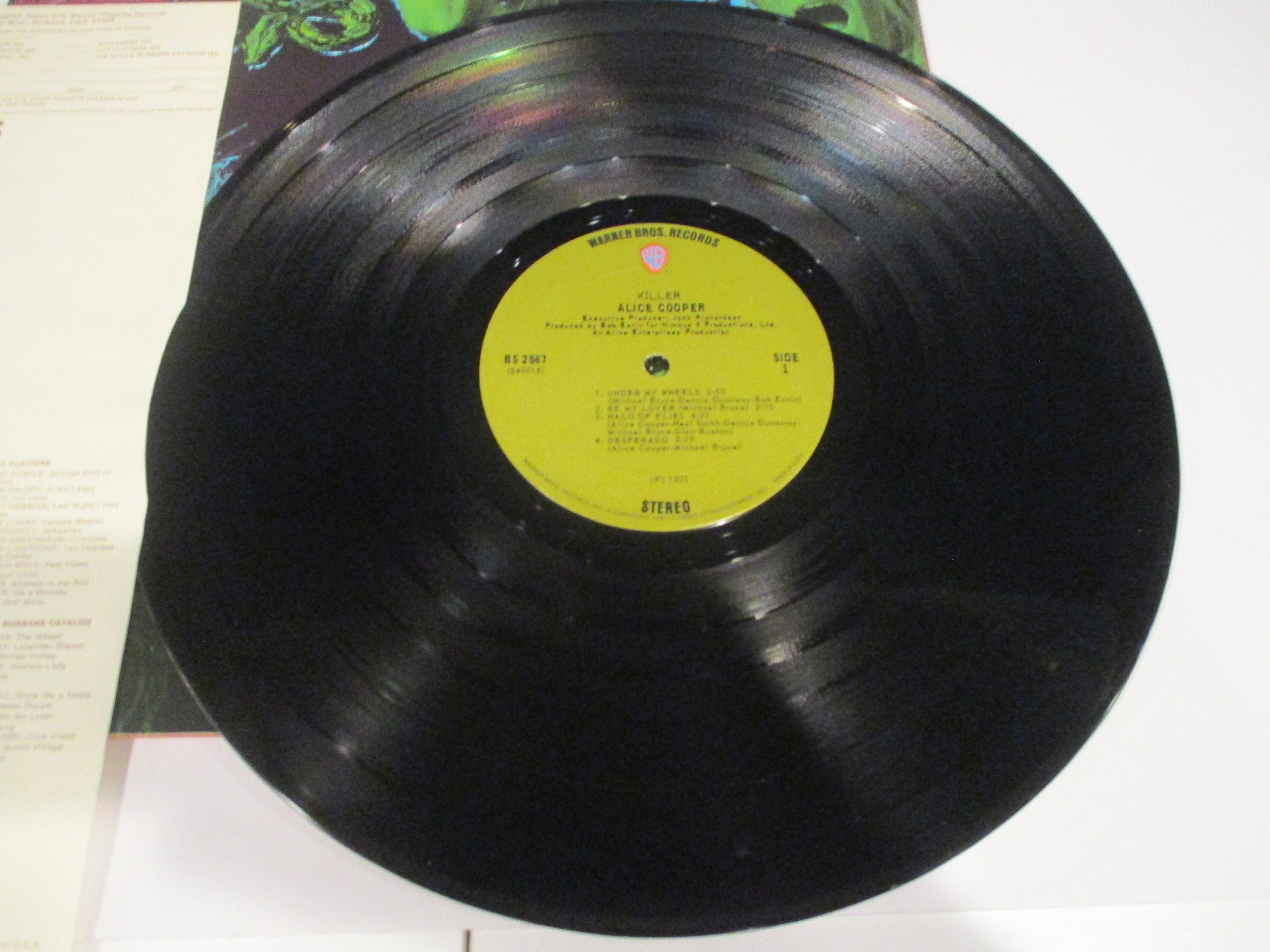 1971 Vinyl LP Record Alice Cooper Killer Excellent Condition Green Label with Original Detachable 1972 Calendar. Original cover is in excellent condition and includes the original inner paper sleeve and the original detachable fold out 1972 calendar, which is quite rare. Record is excellent and plays great. Tracks are as follows