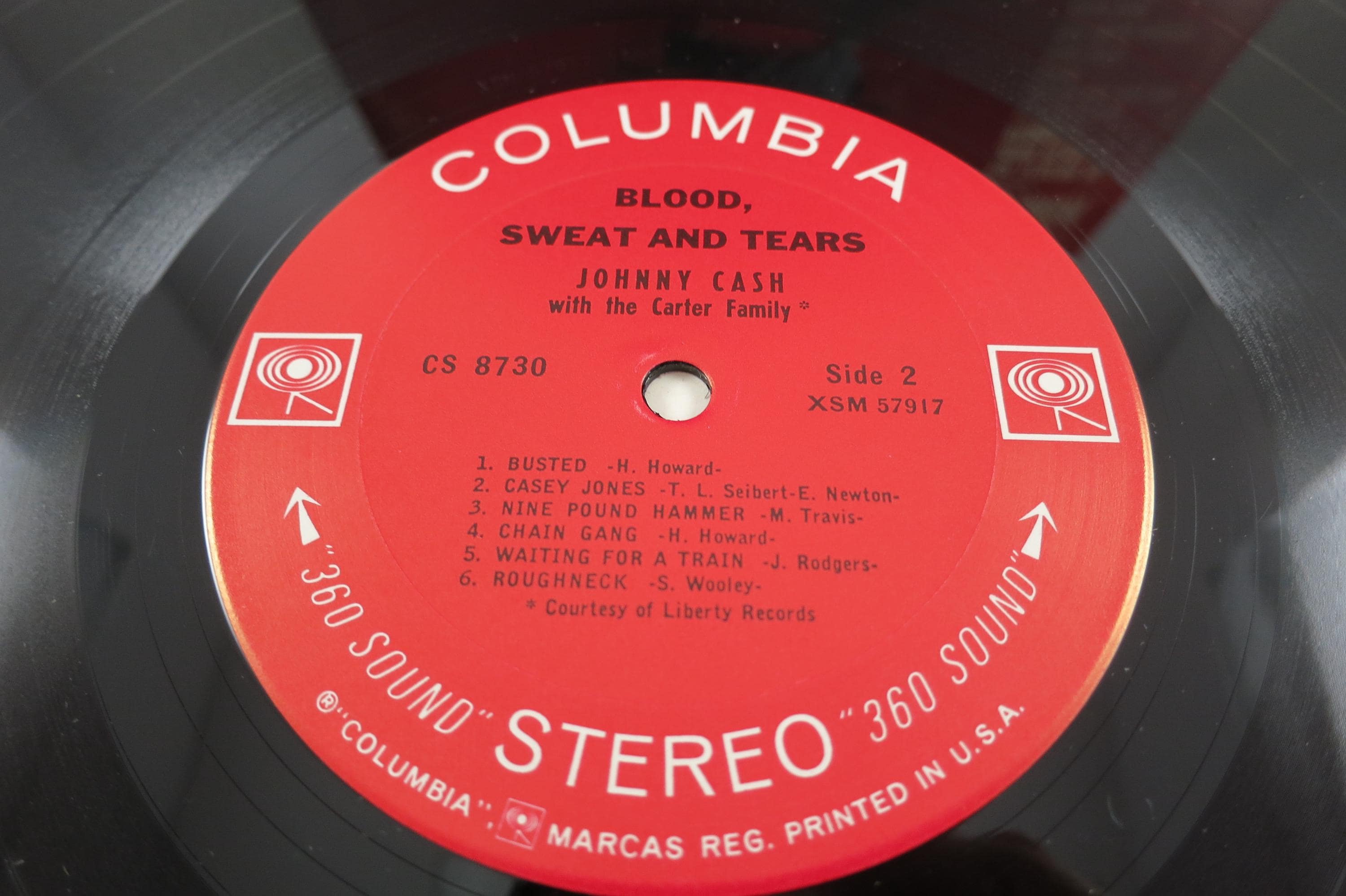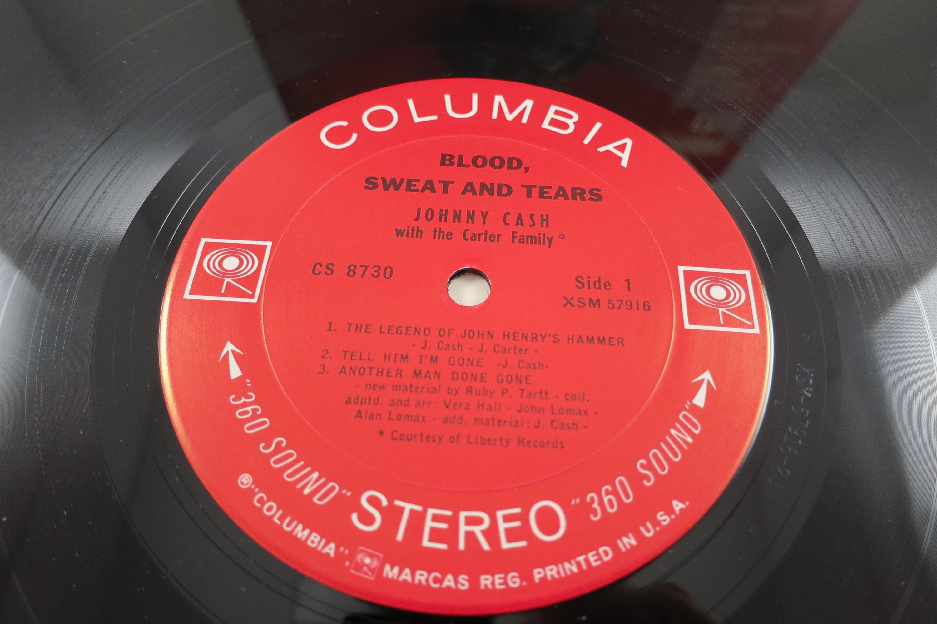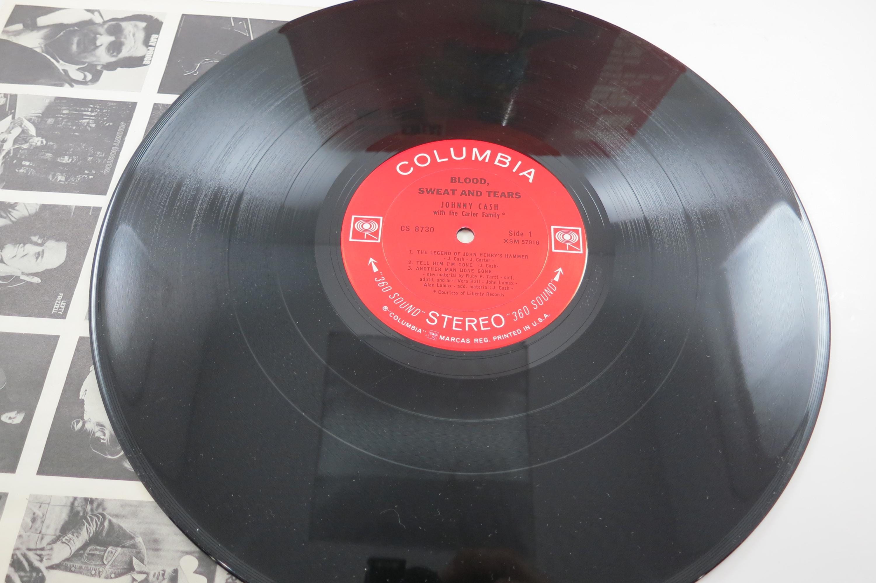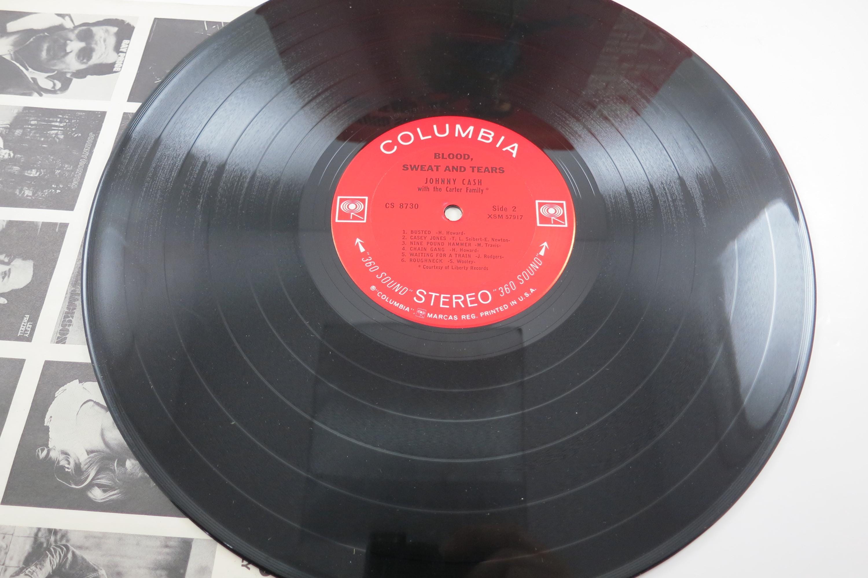 1965 Vinyl LP Record Blood Sweat and Tears Johnny Cash Excellent Condition 360 Sound Stereo Pressing. Original cover is in good condition and includes the inner paper sleeve. Cover has normal wear for the age and a light stain at the bottom. Record is excellent and is the 360 Sound Stereo Label. Tracks are as follows