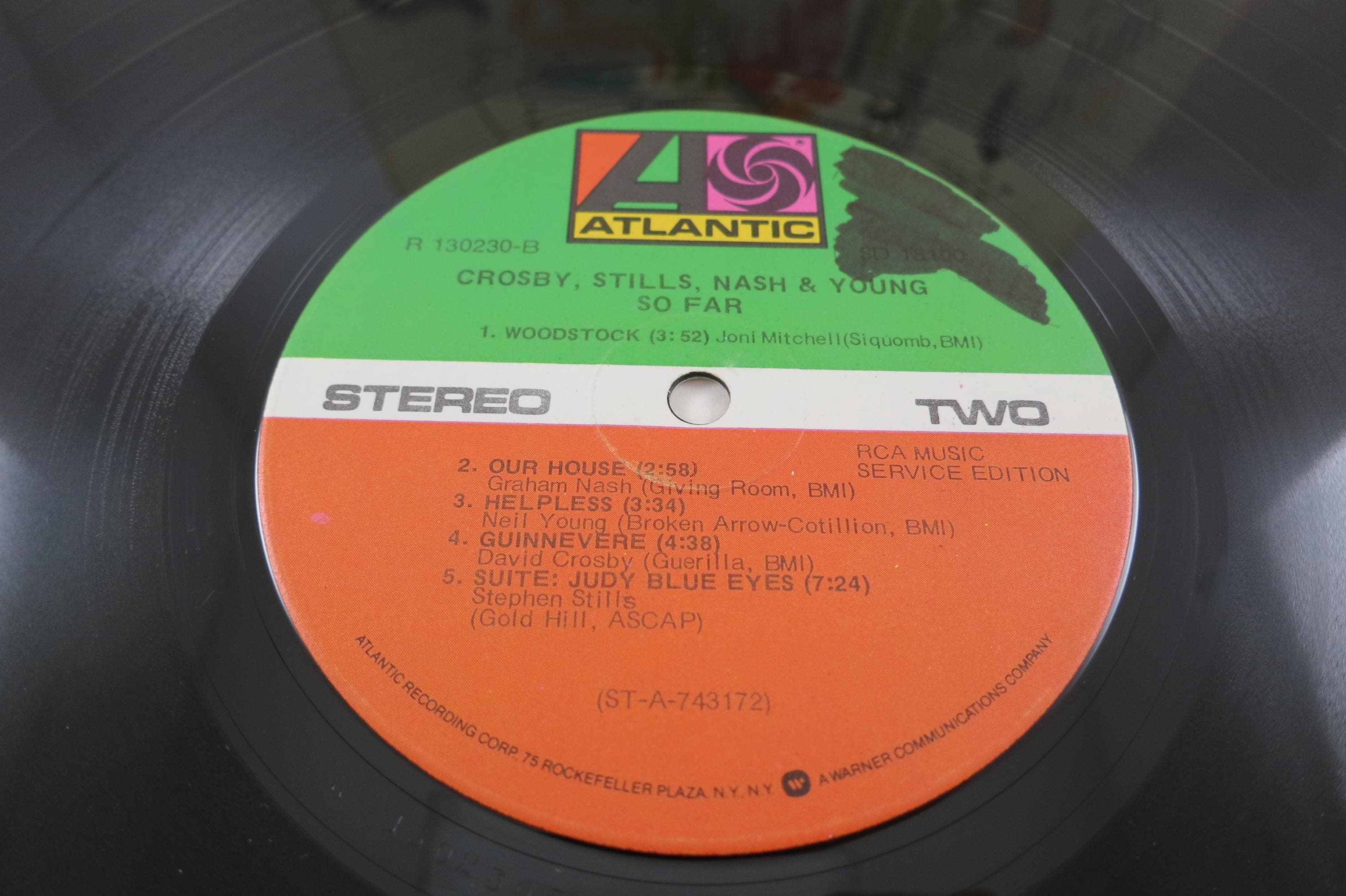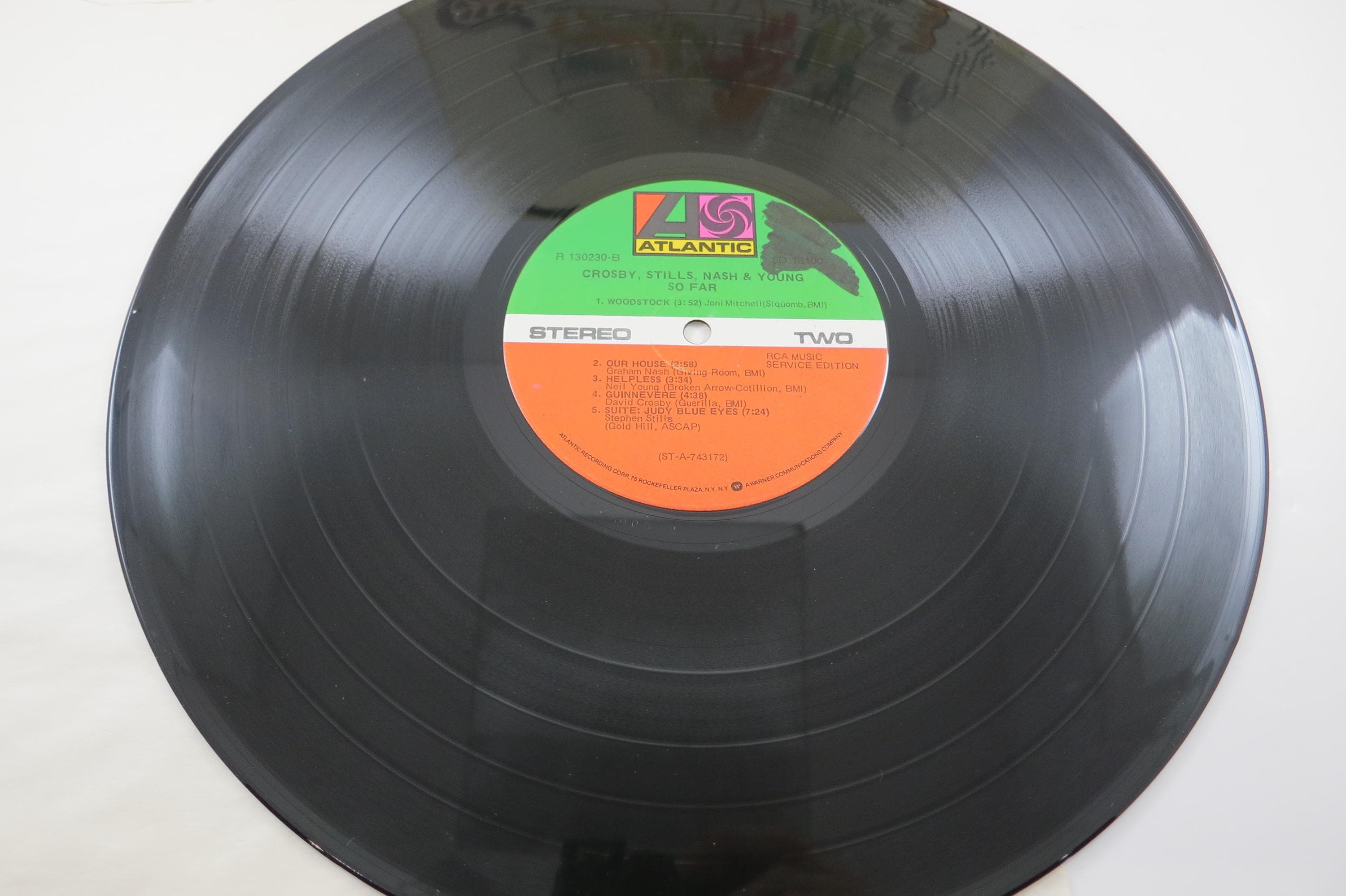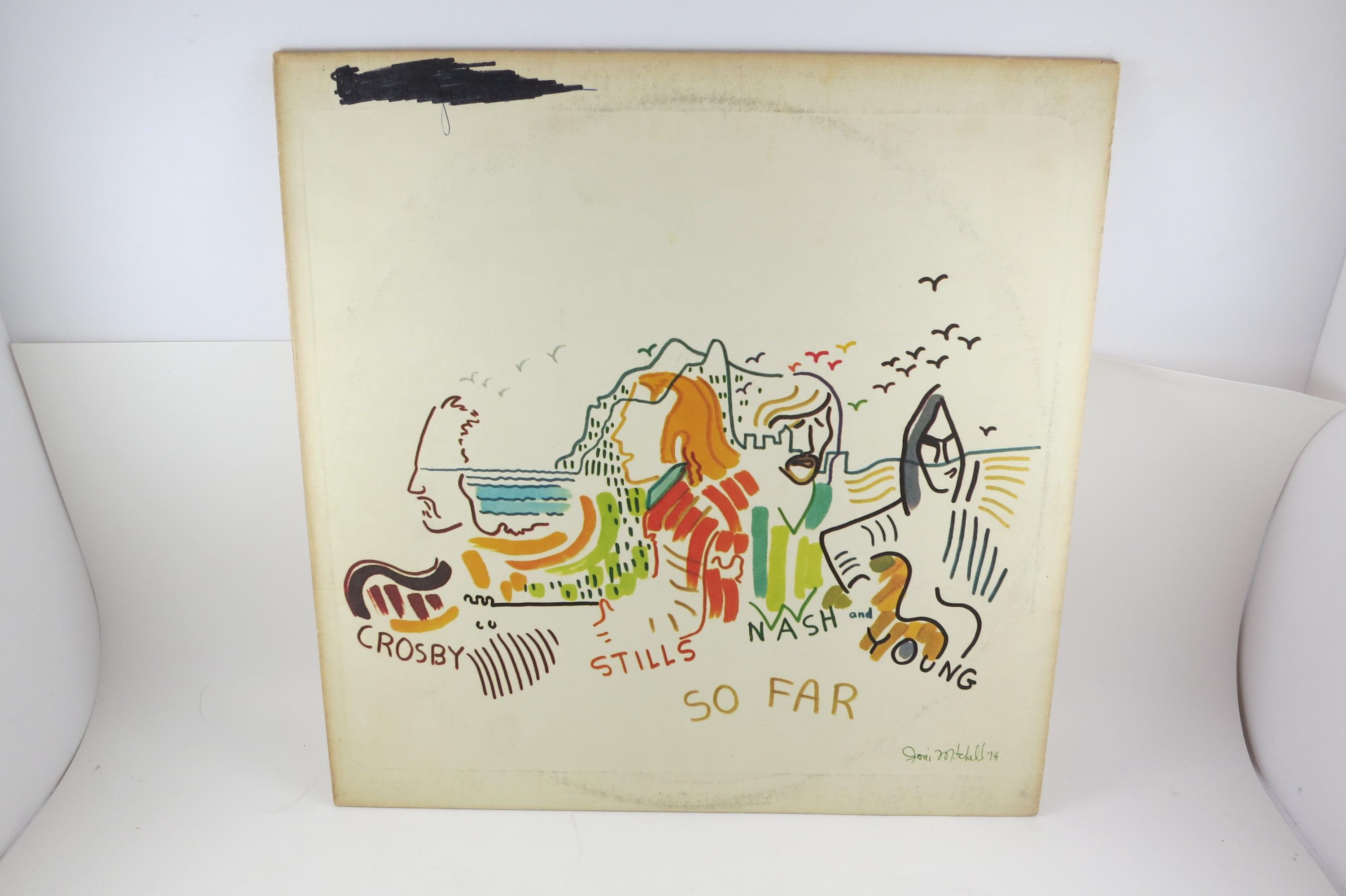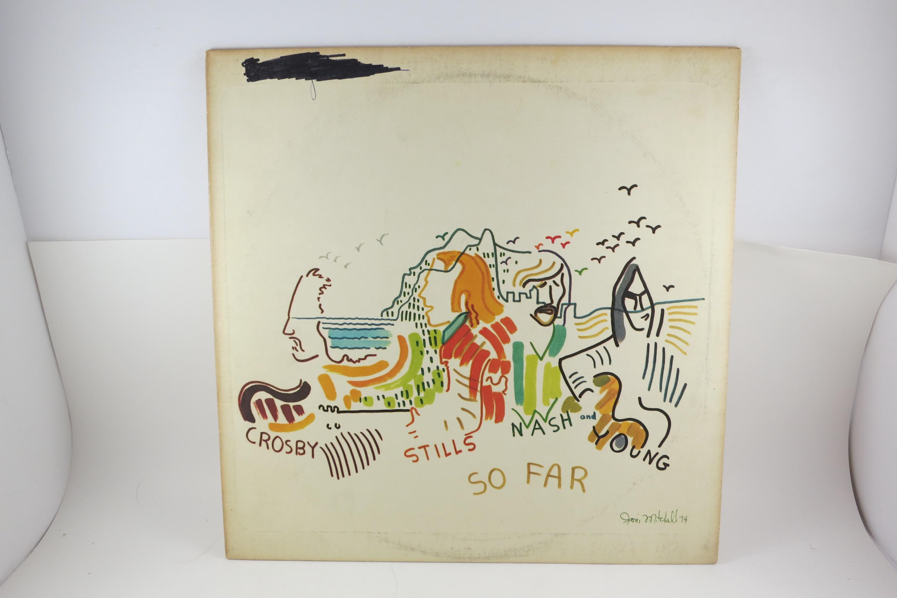 1974 Vinyl LP Record So Far Crosby Stills Nash Young Excellent Condition. Original cover is very good and includes the inner paper sleeve. Has some scribble on the cover and label as seen in the pictures. Record is excellent. Tracks are as follows