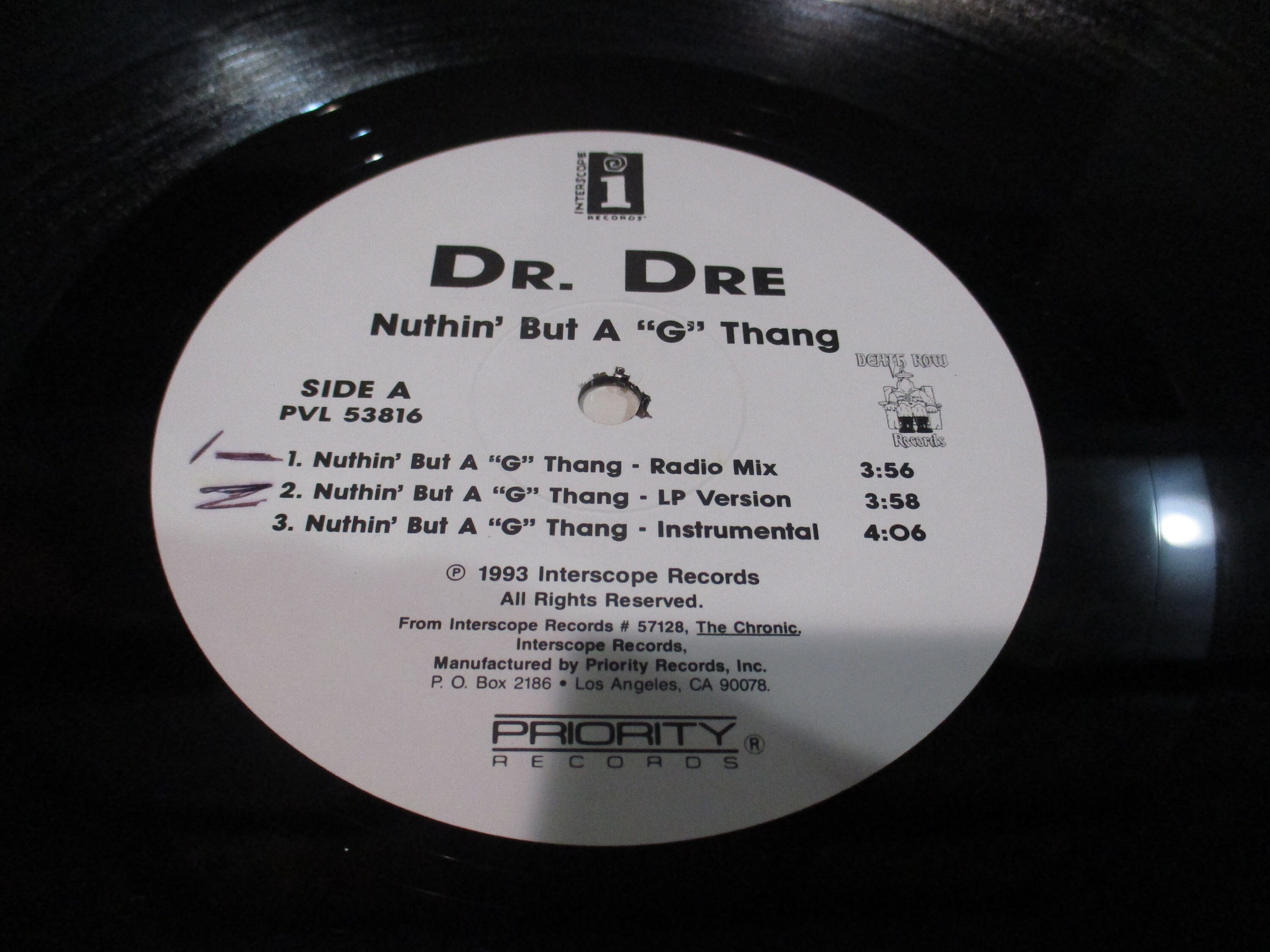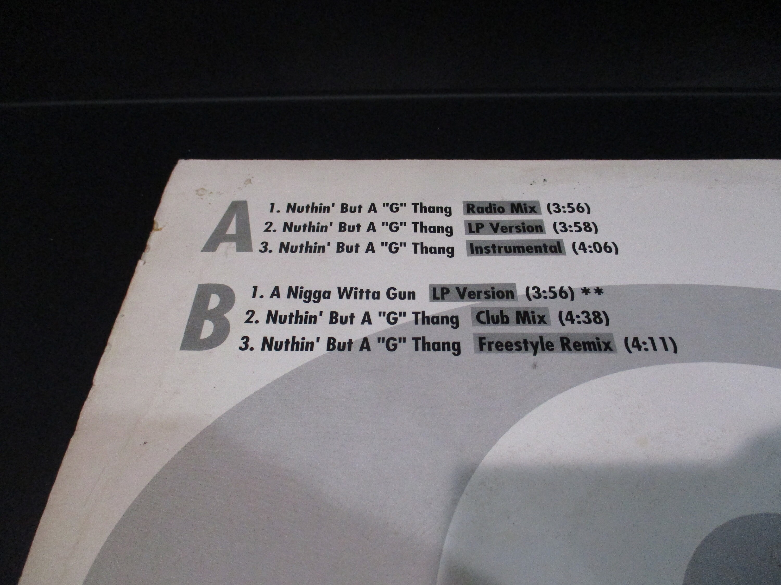 1993 Vinyl EP Record Nuthin' But A G Thang Dr Dre Excellent Condition. Original cover is in excellent condition and includes the inner paper sleeve. Record is excellent. Tracks are as follows
