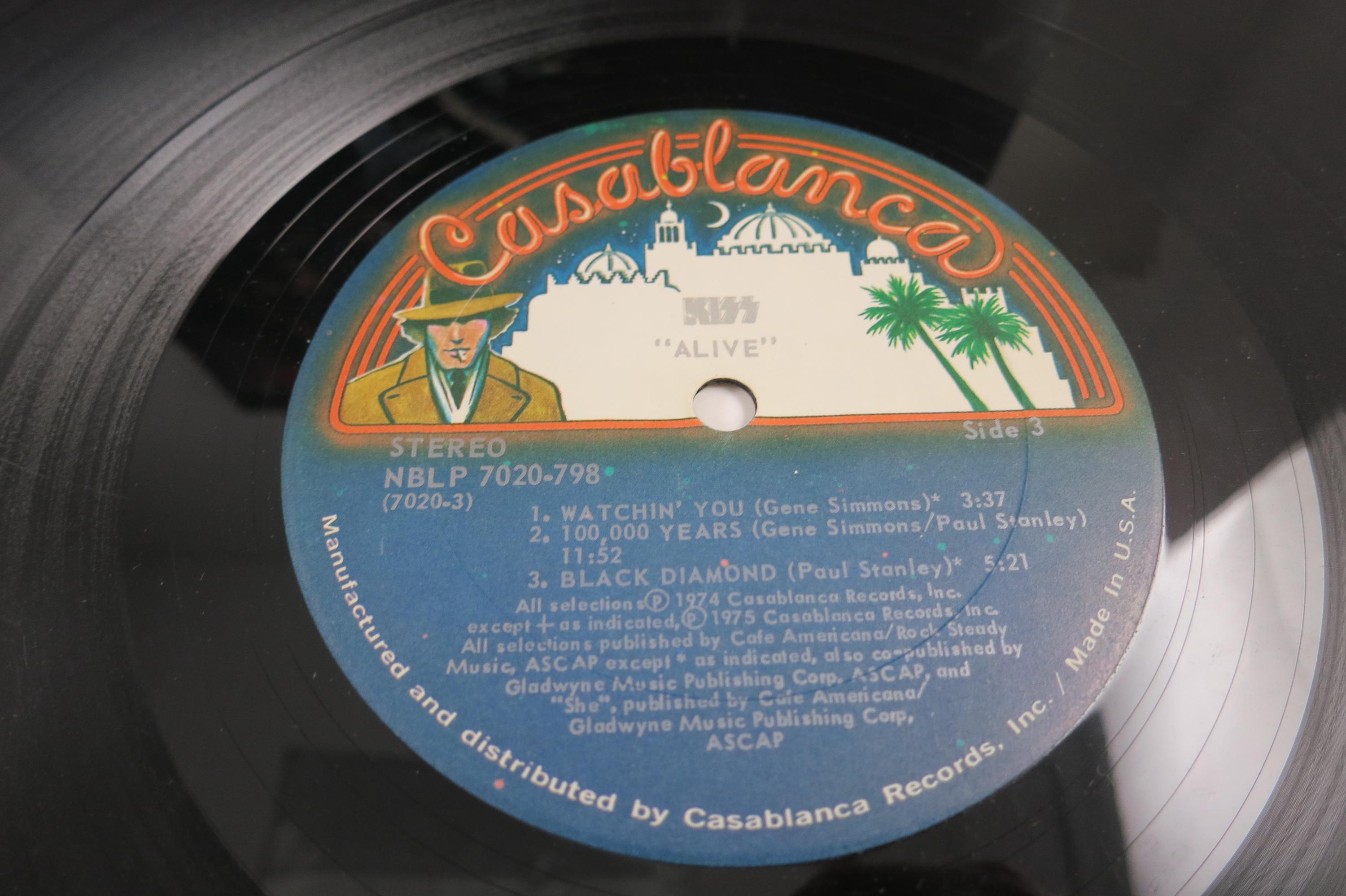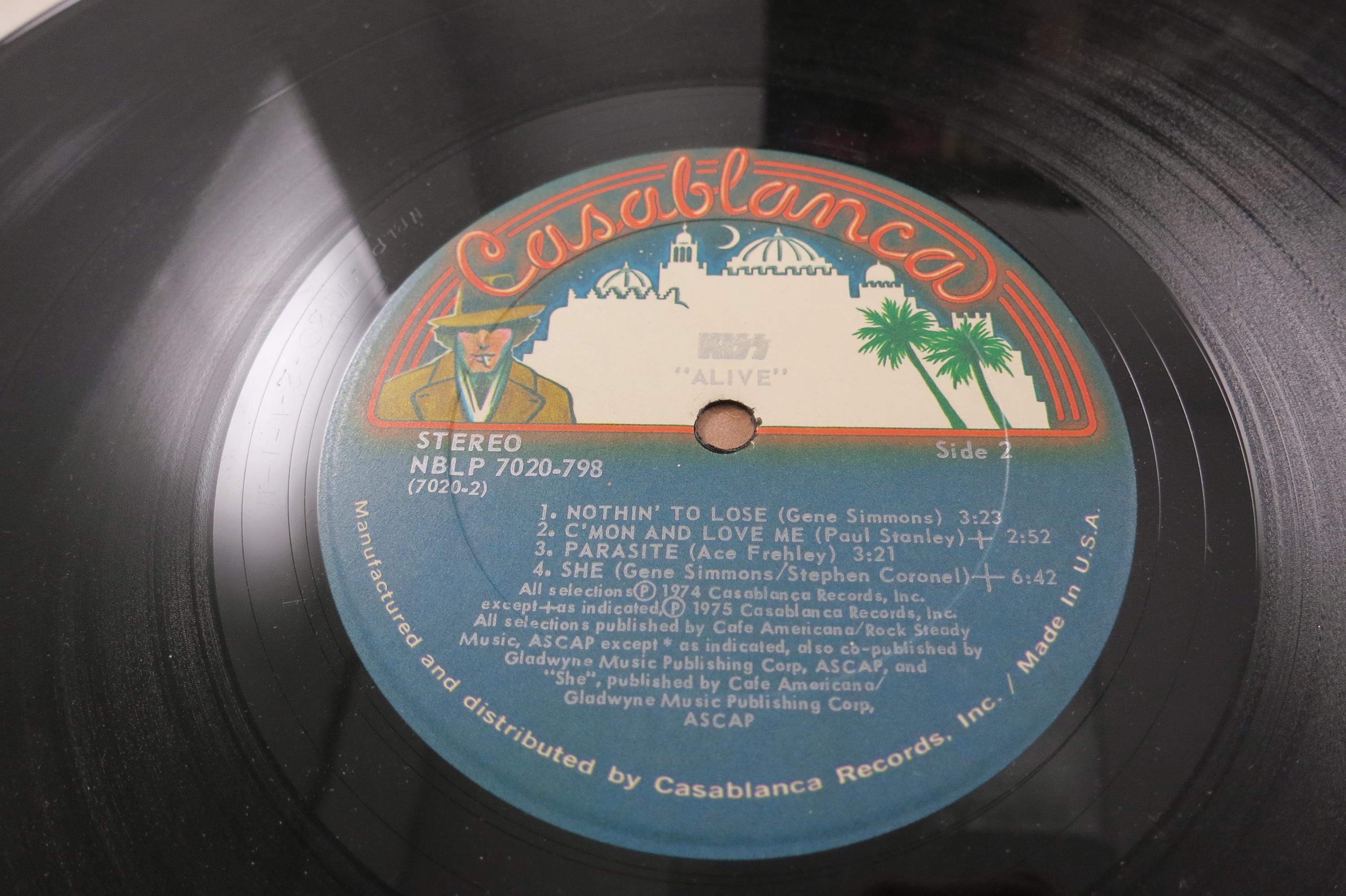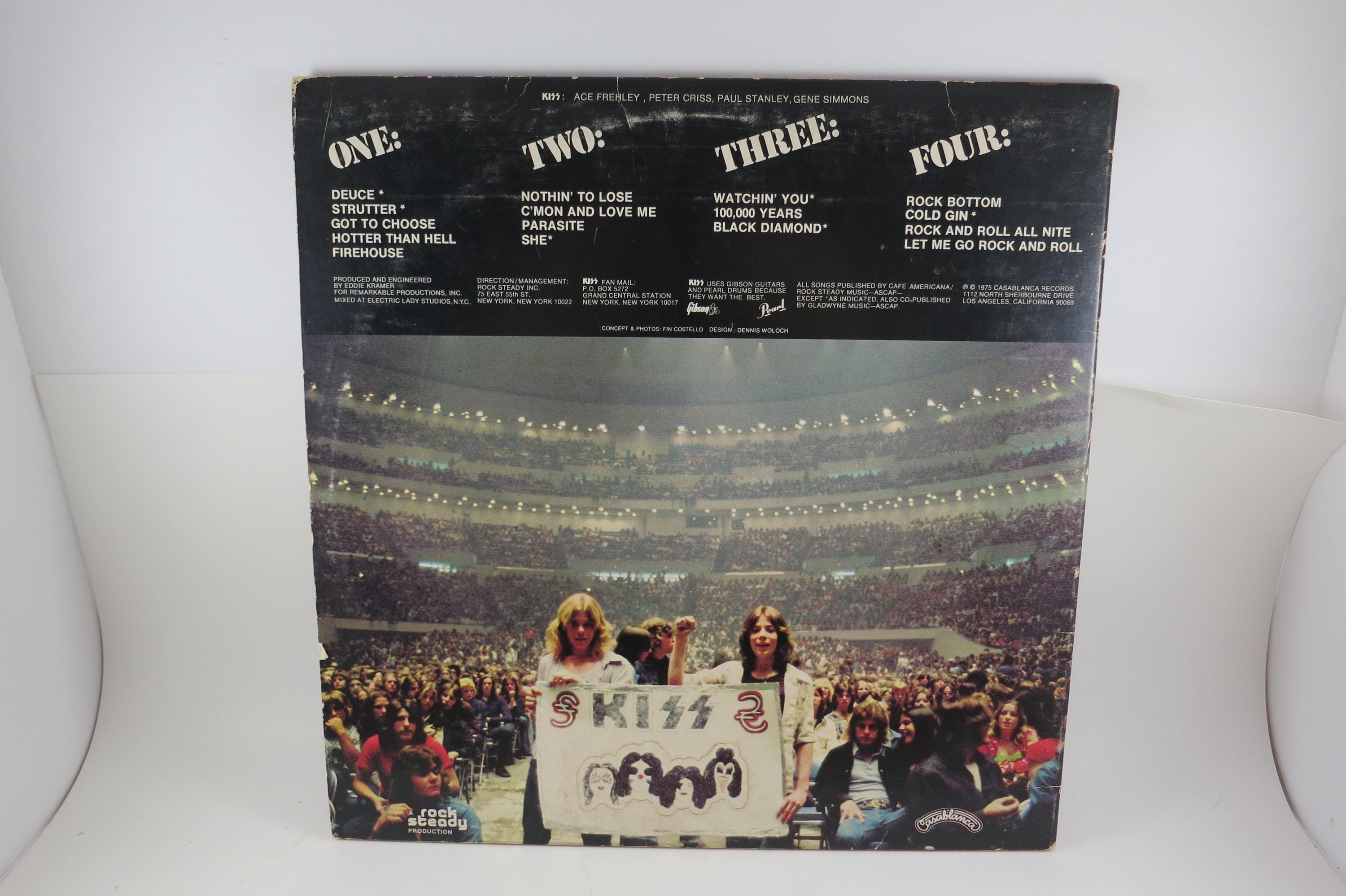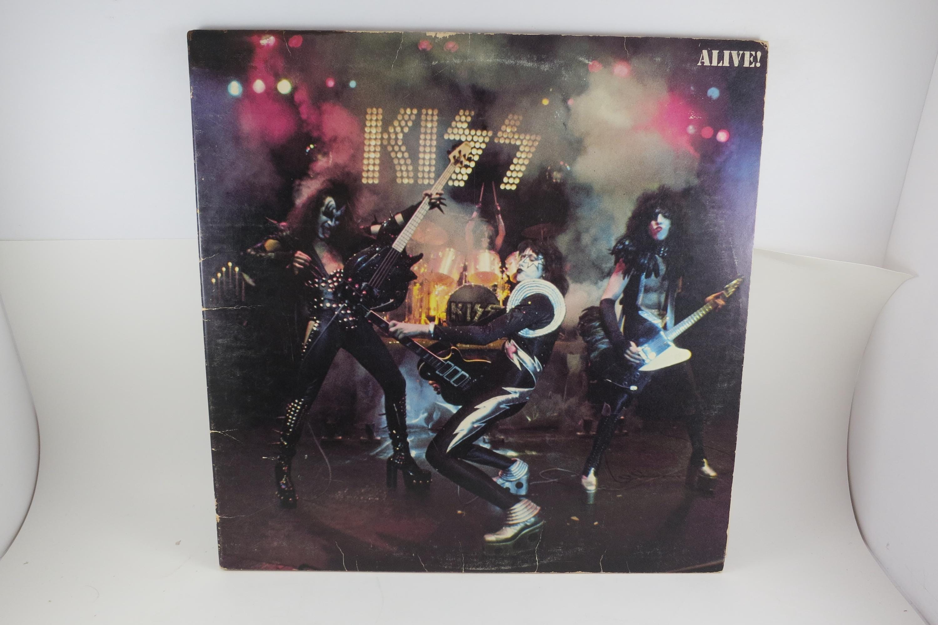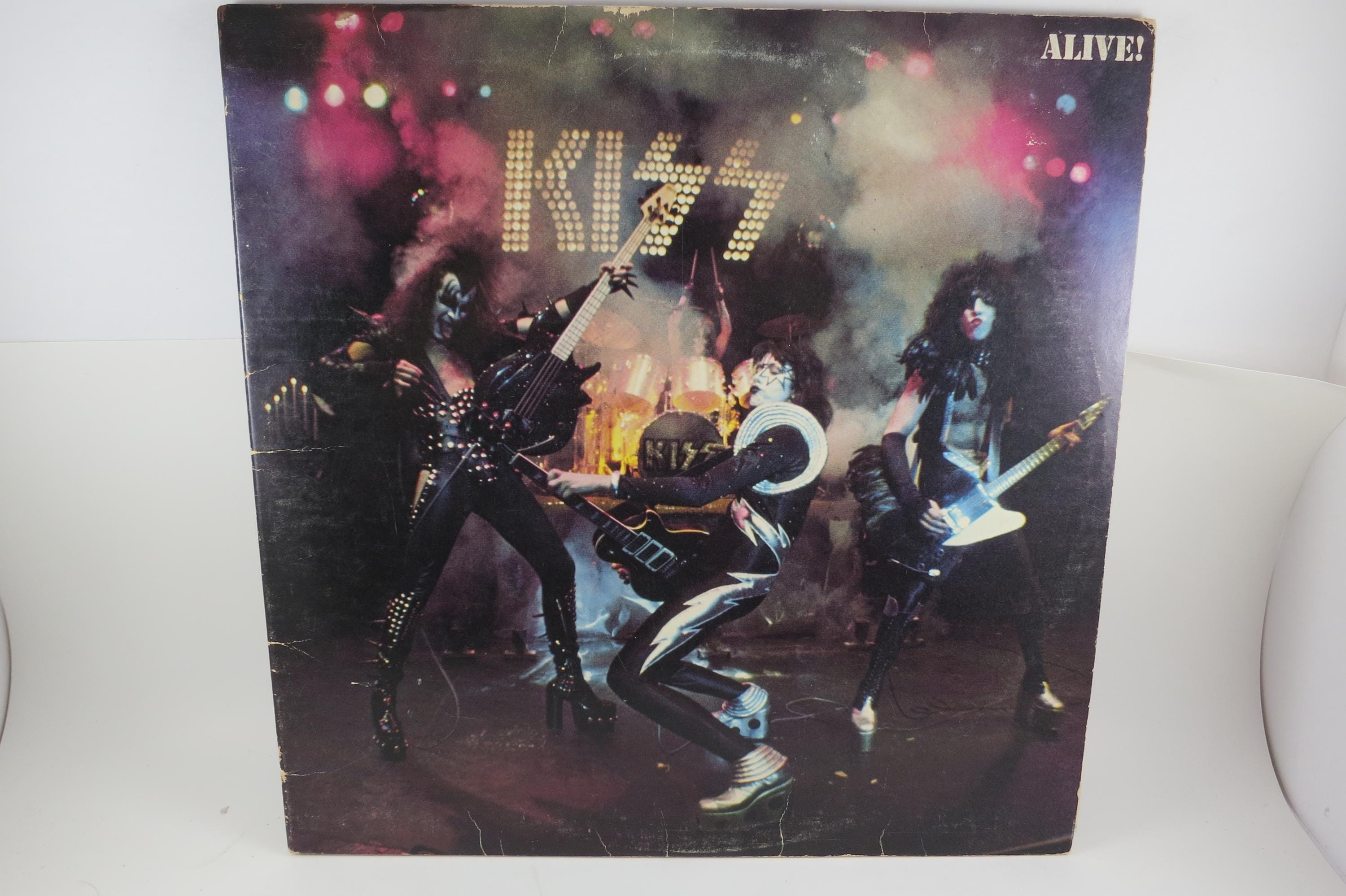 1975 Vinyl LP Record KISS Alive Two Record Set Very Good Condition First Pressing. Two record set. Original gate fold cover is in very good condition and includes both inner paper sleeves. Records both are very good with light marks, and both play well. Tracks are as follows