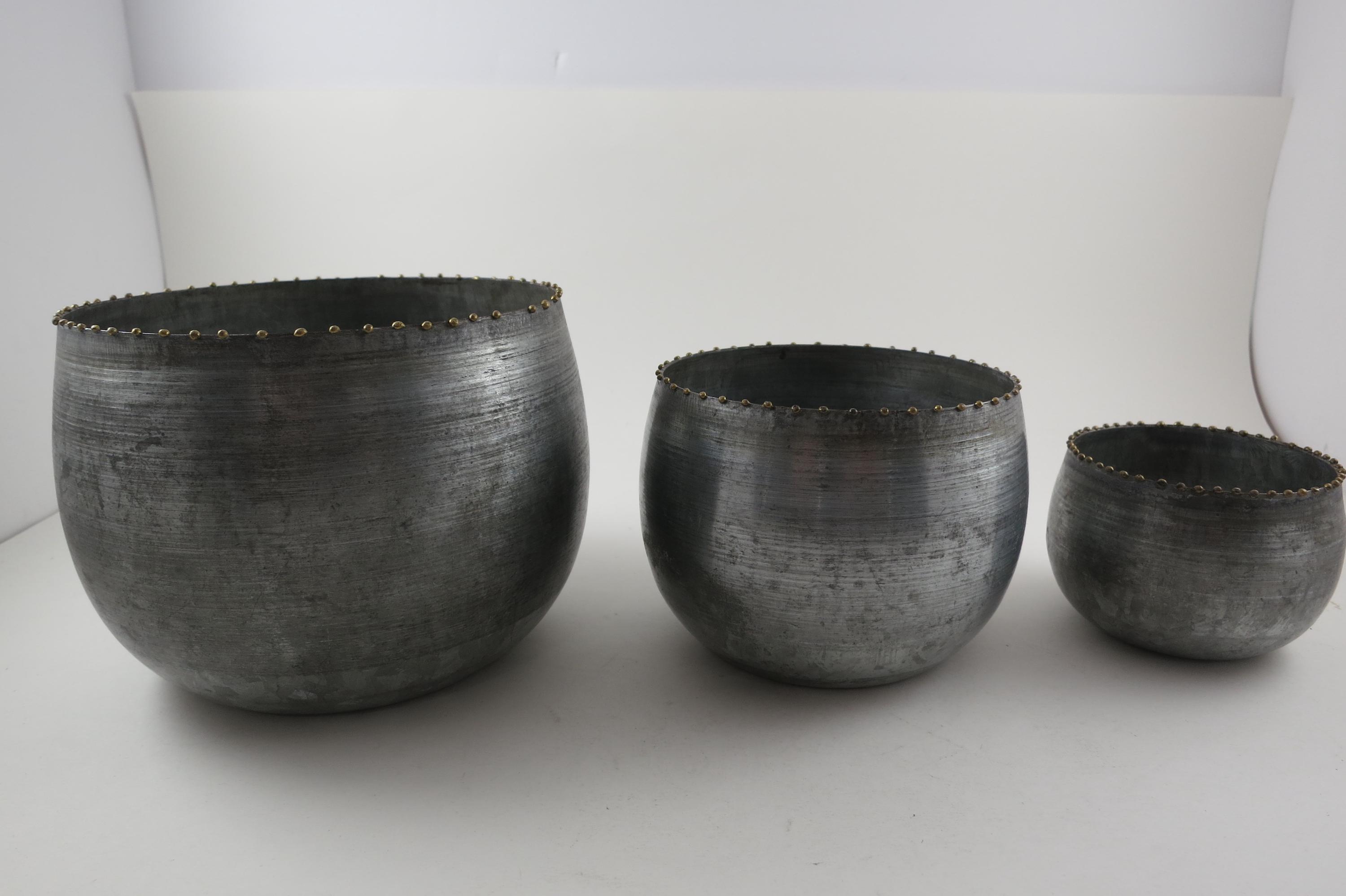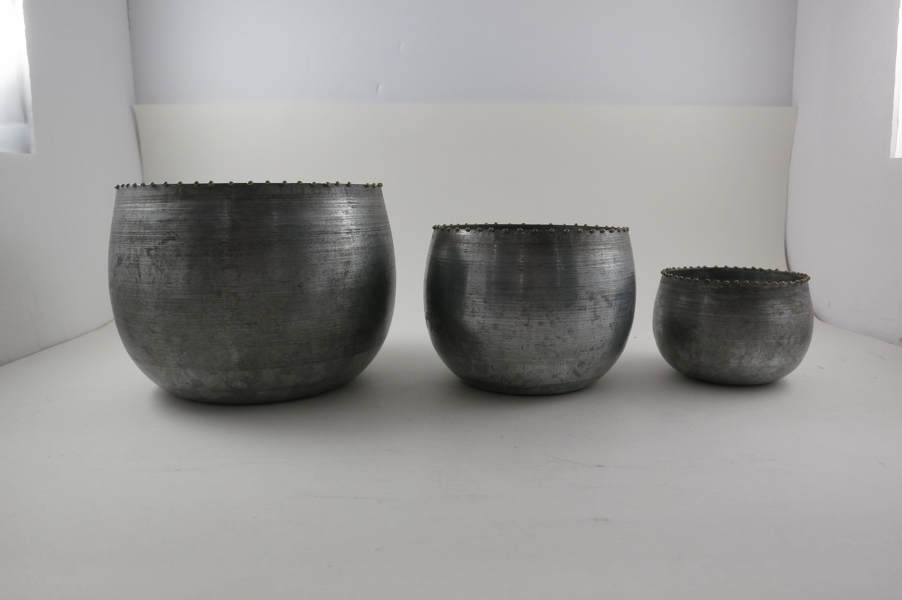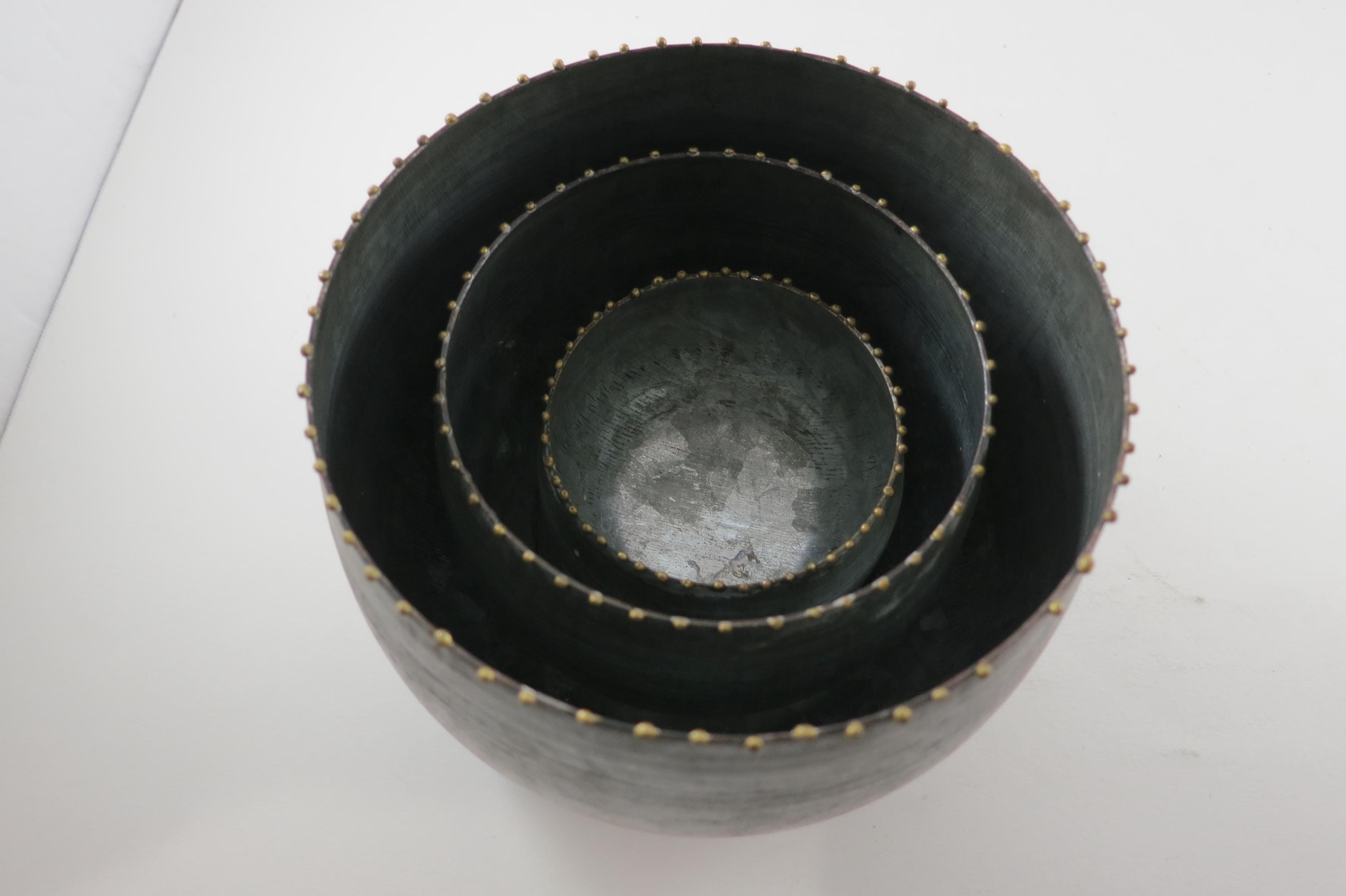 Three Vintage Galvanized Metal Nesting Bowls Beaded Edges Retro Style
