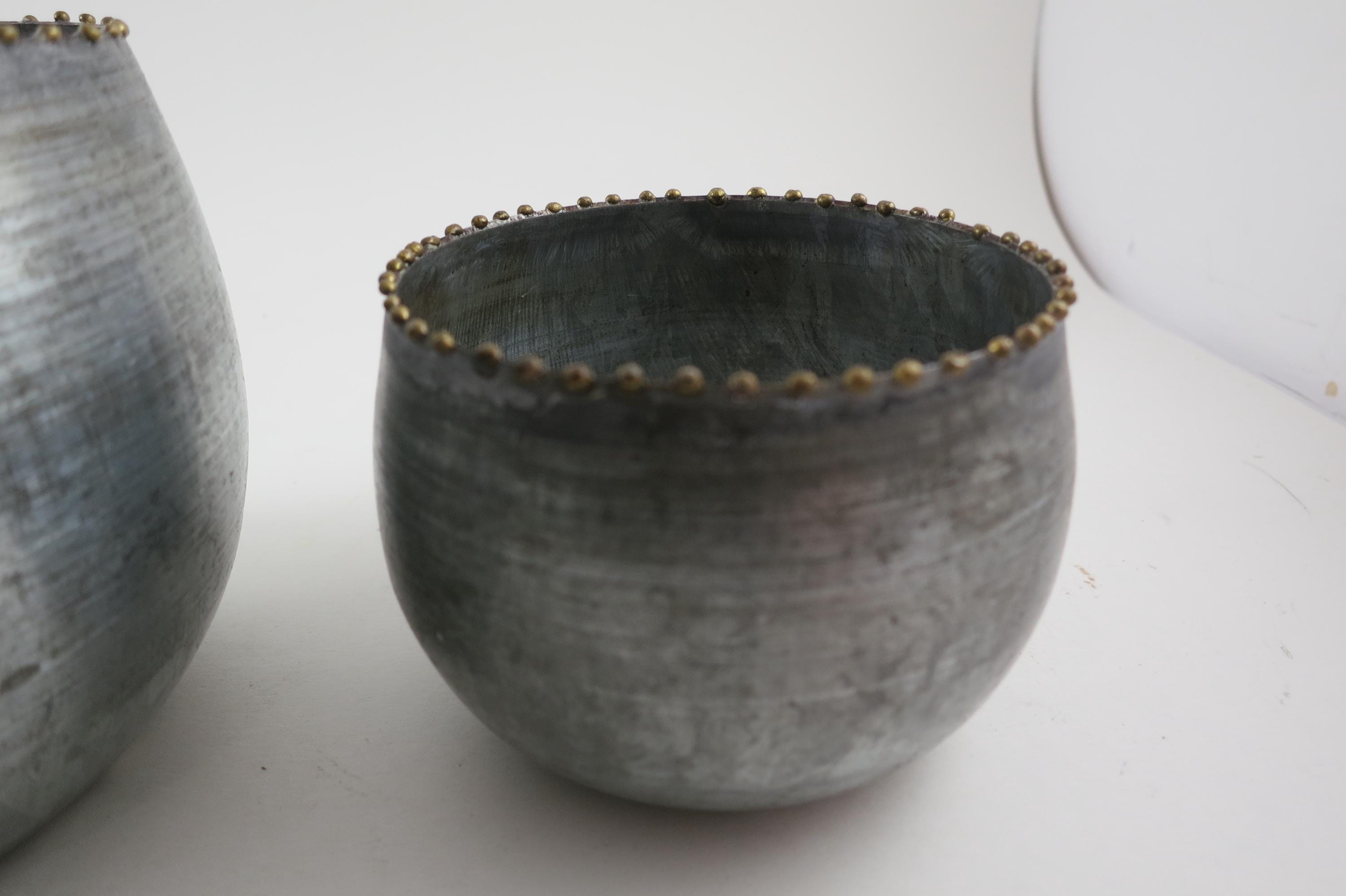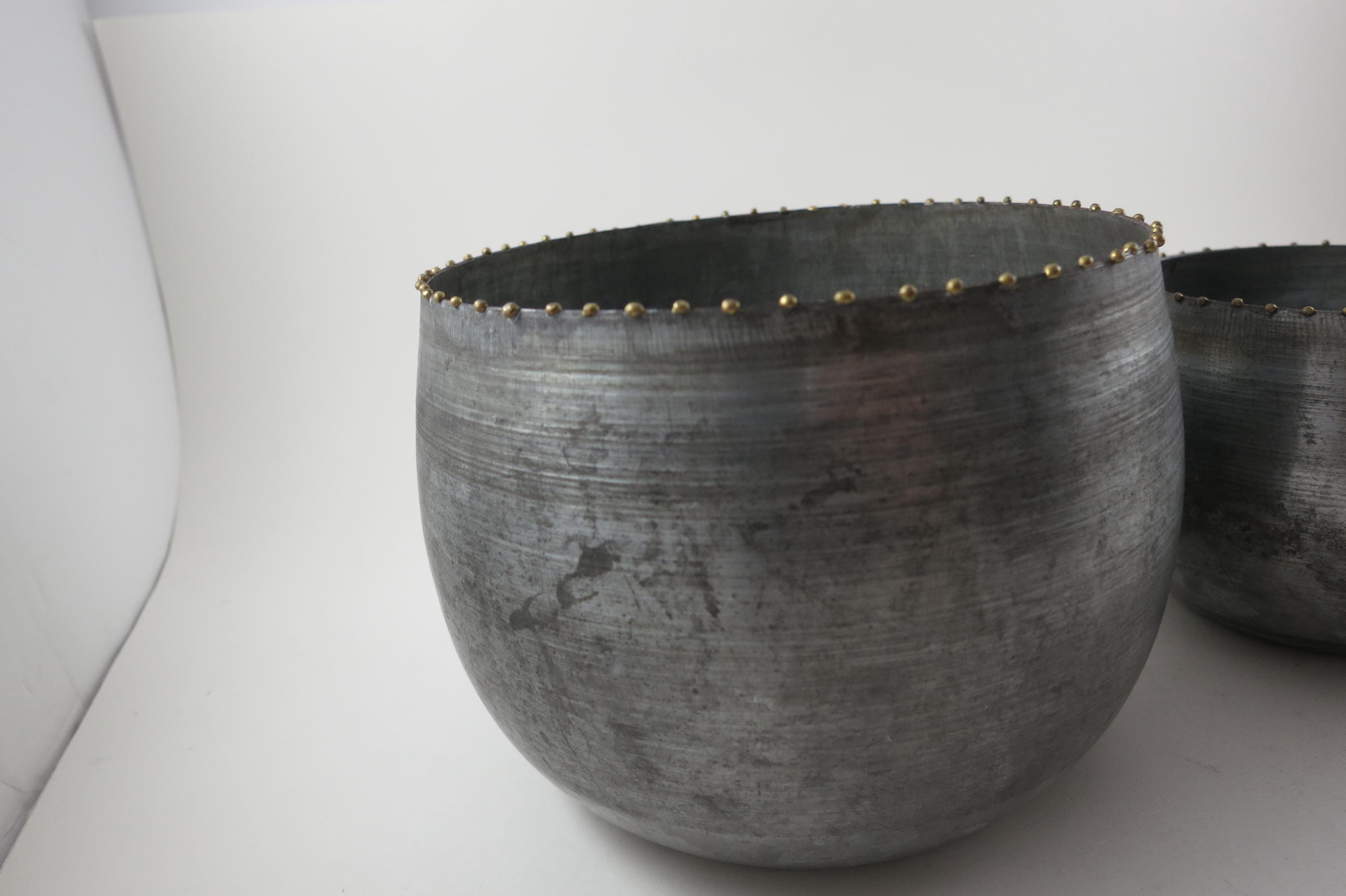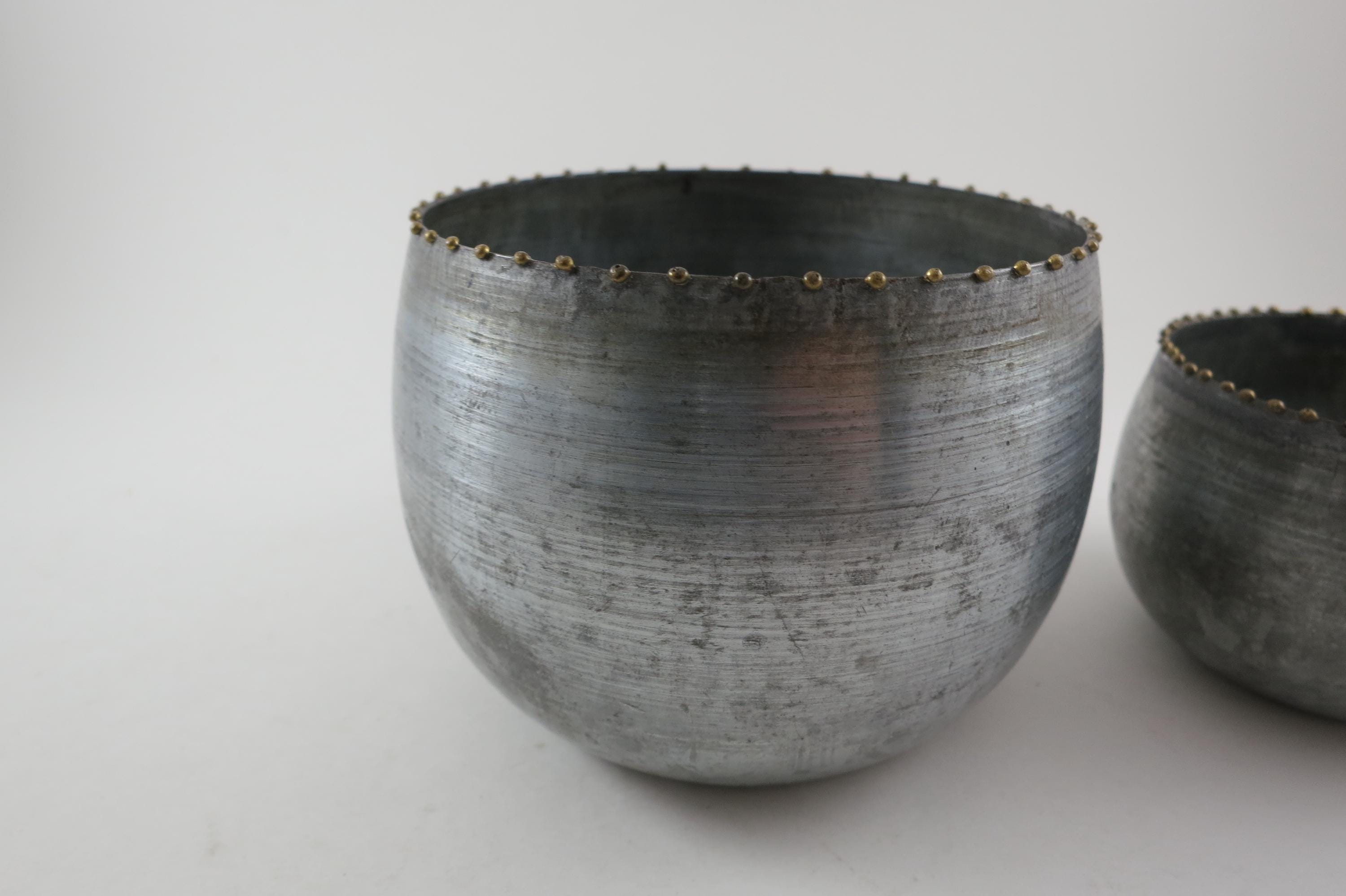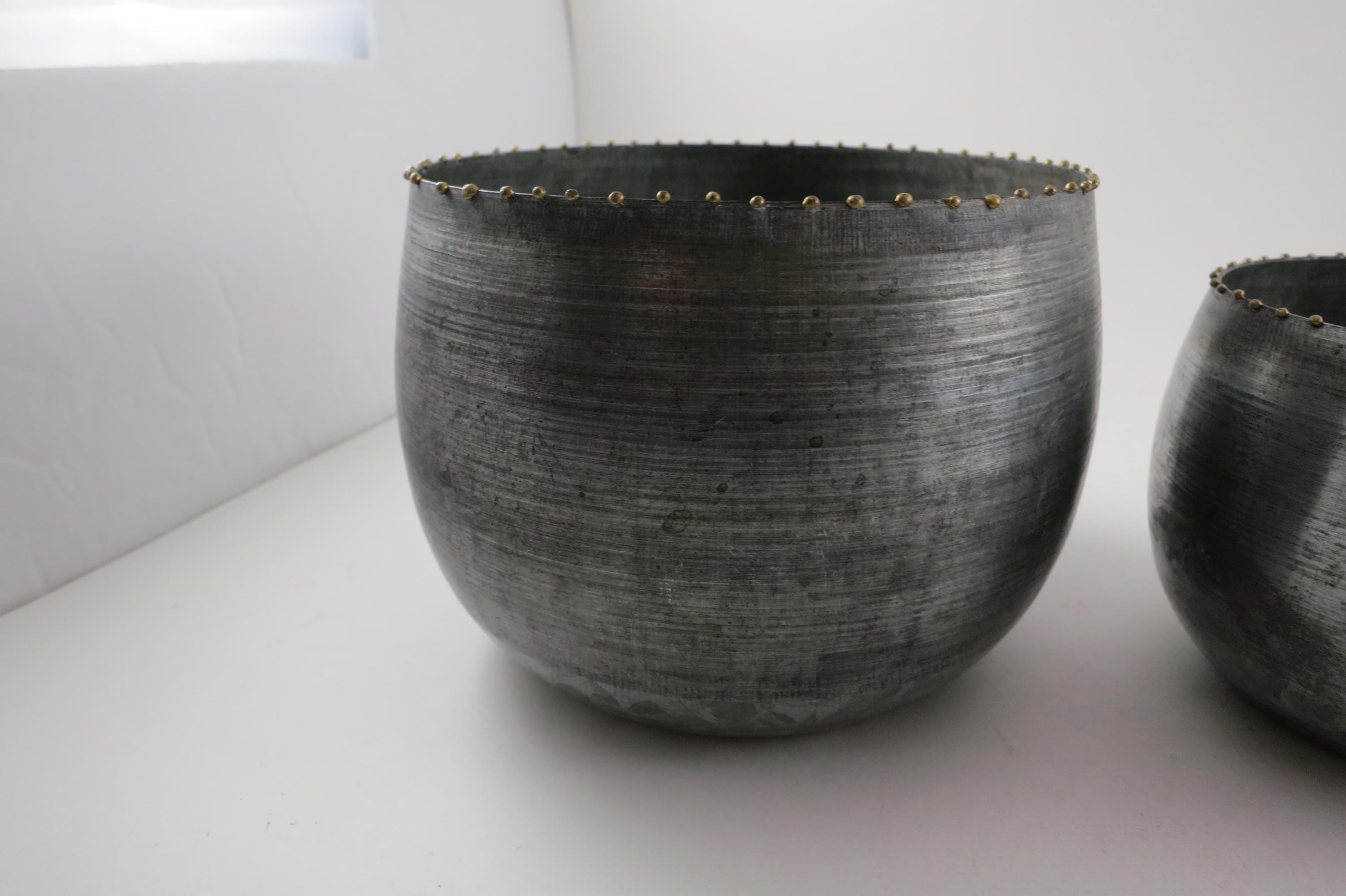 Three Vintage Galvanized Metal Nesting Bowls Beaded Edges Retro Style