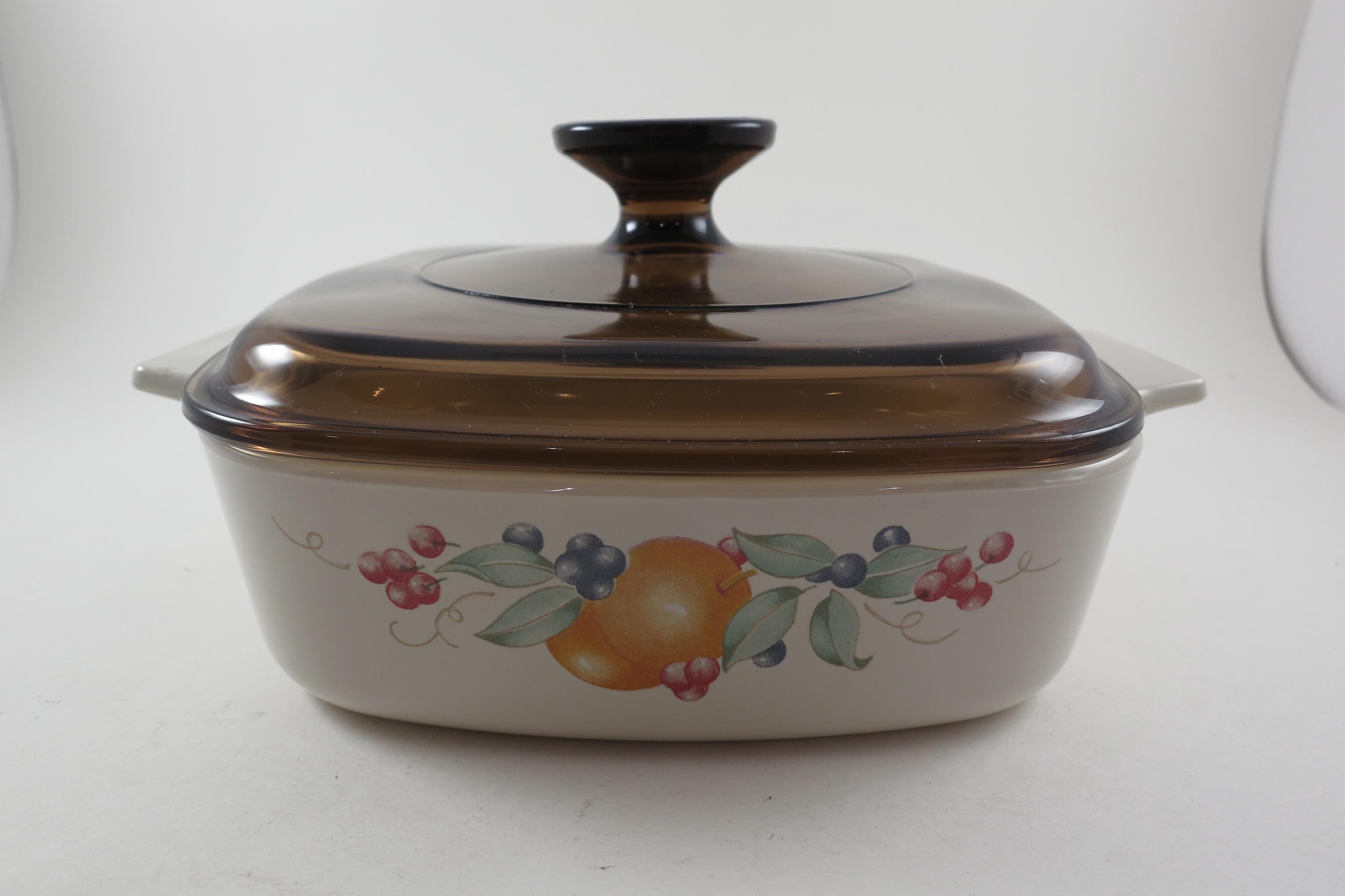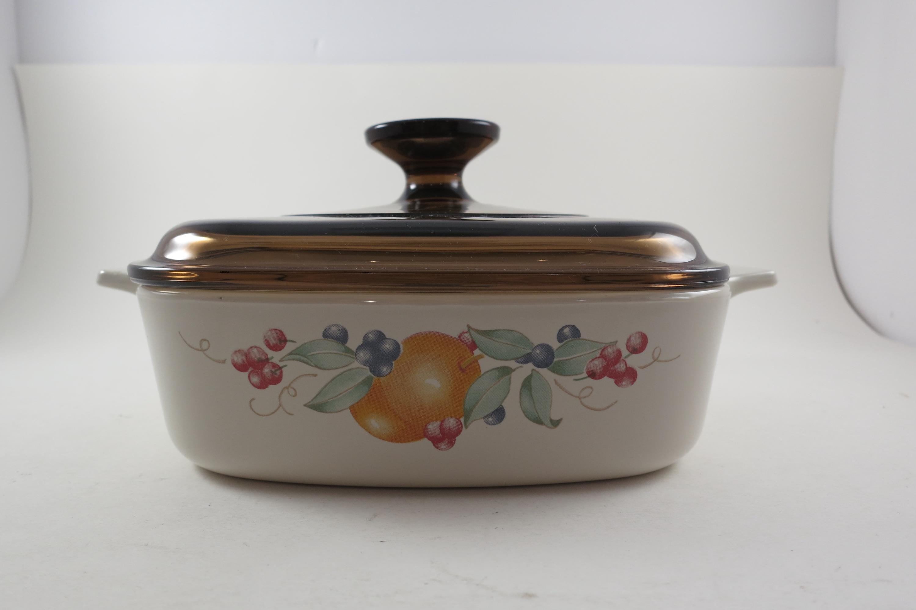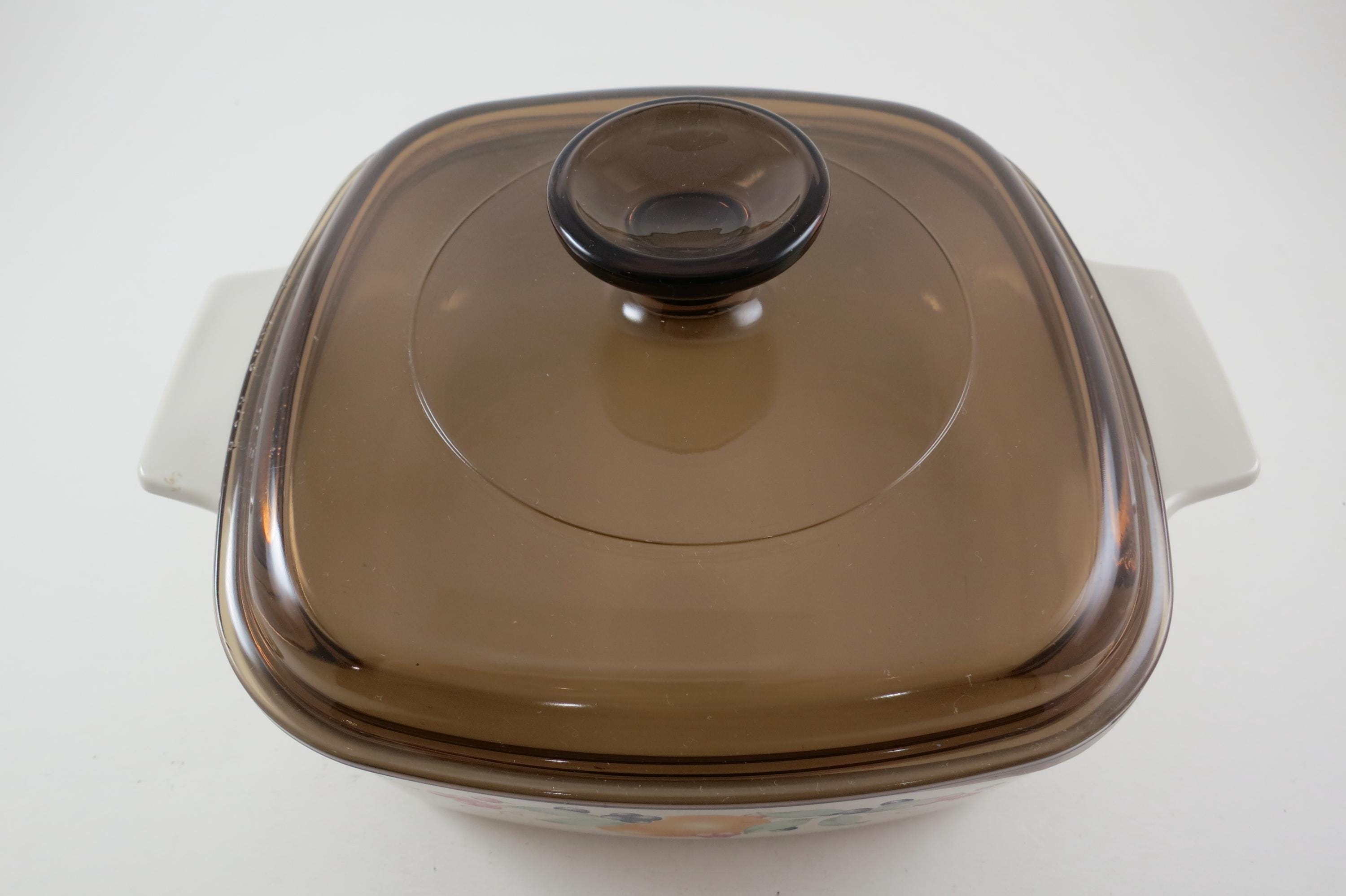 Vintage Corning Ware Abundance Pattern 1 Liter Saucepan A-1-B with Brown Fireside Glass Lid Excellent Condition. Very nice example ready to use or display.