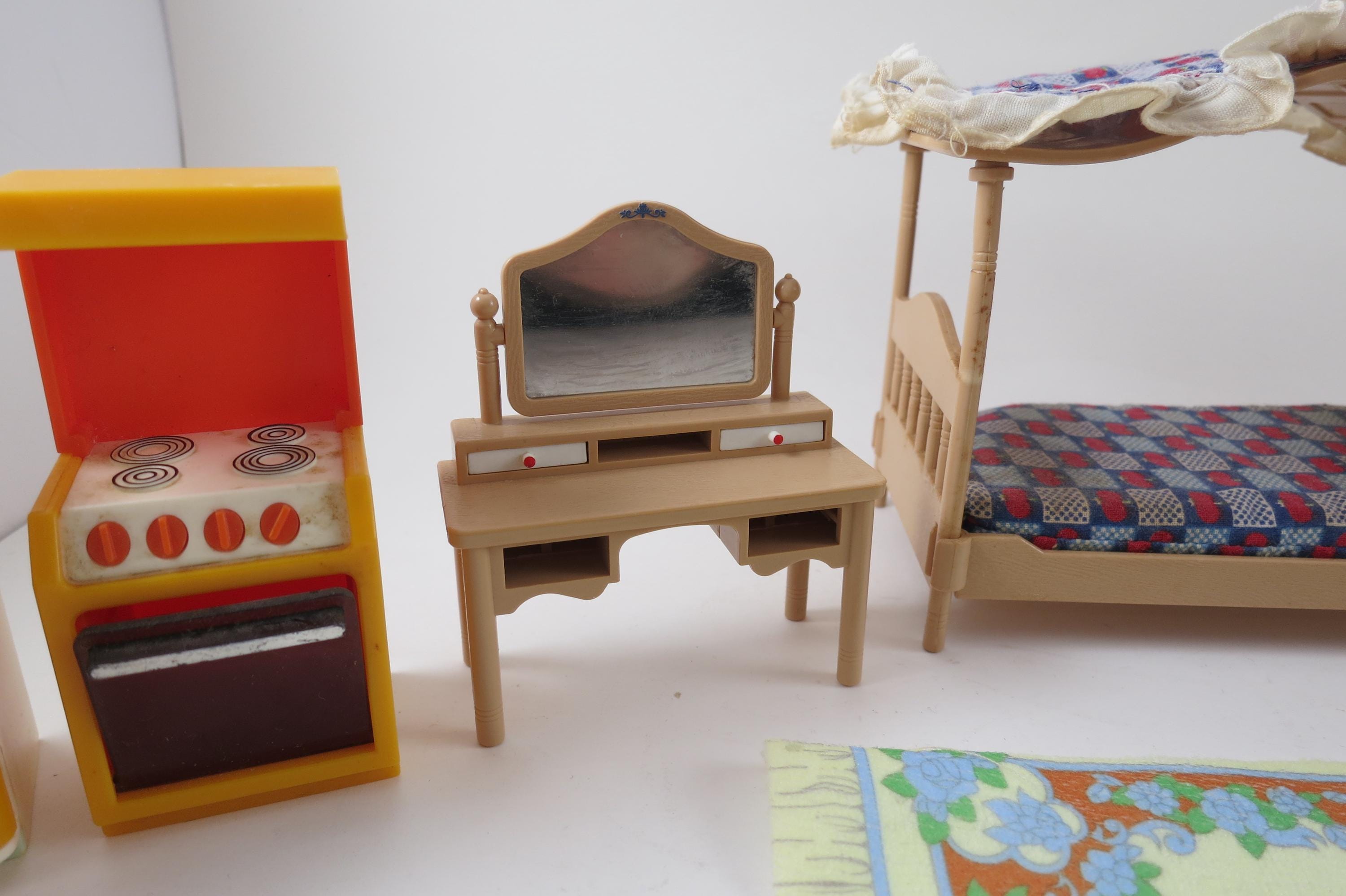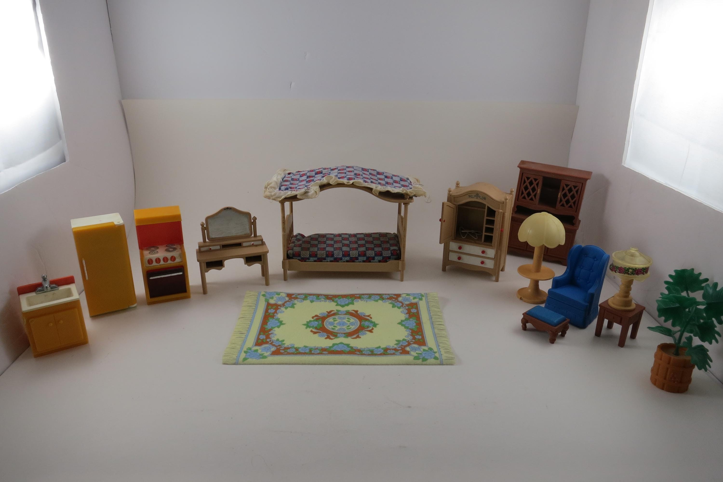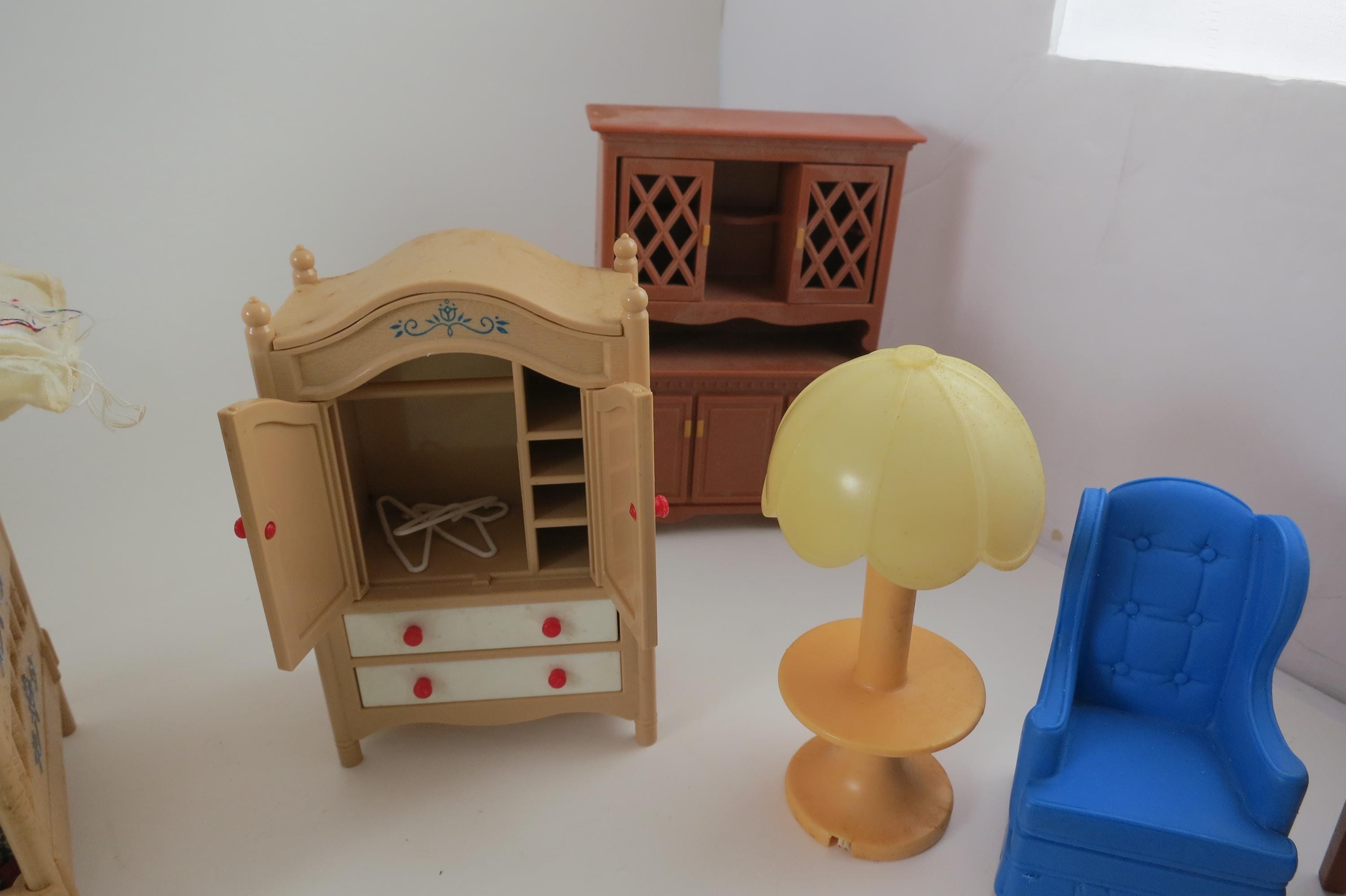 Vintage 80's Doll House Furniture Lot of 13 Pieces Fisher Price and Tomy Plastic