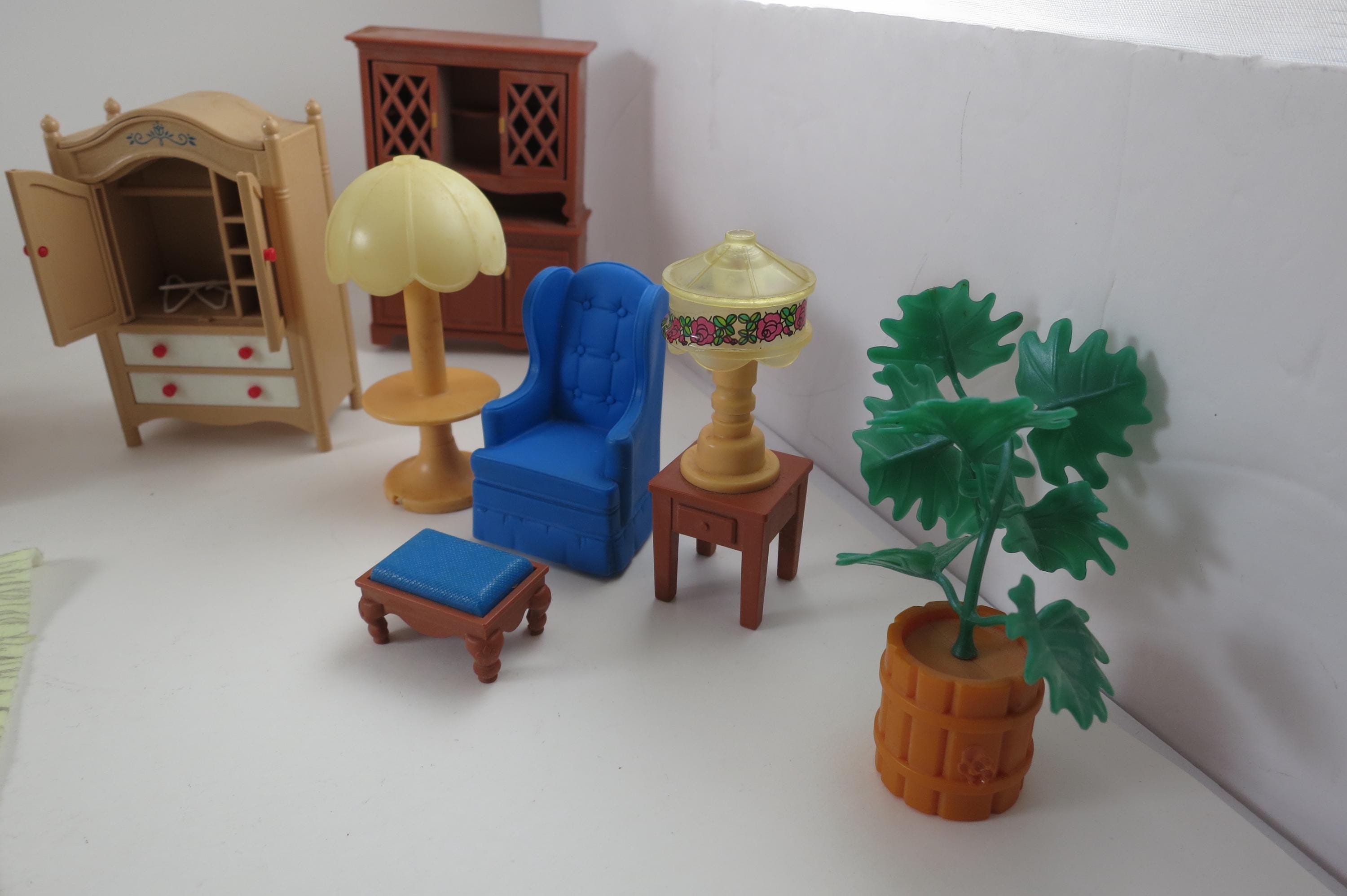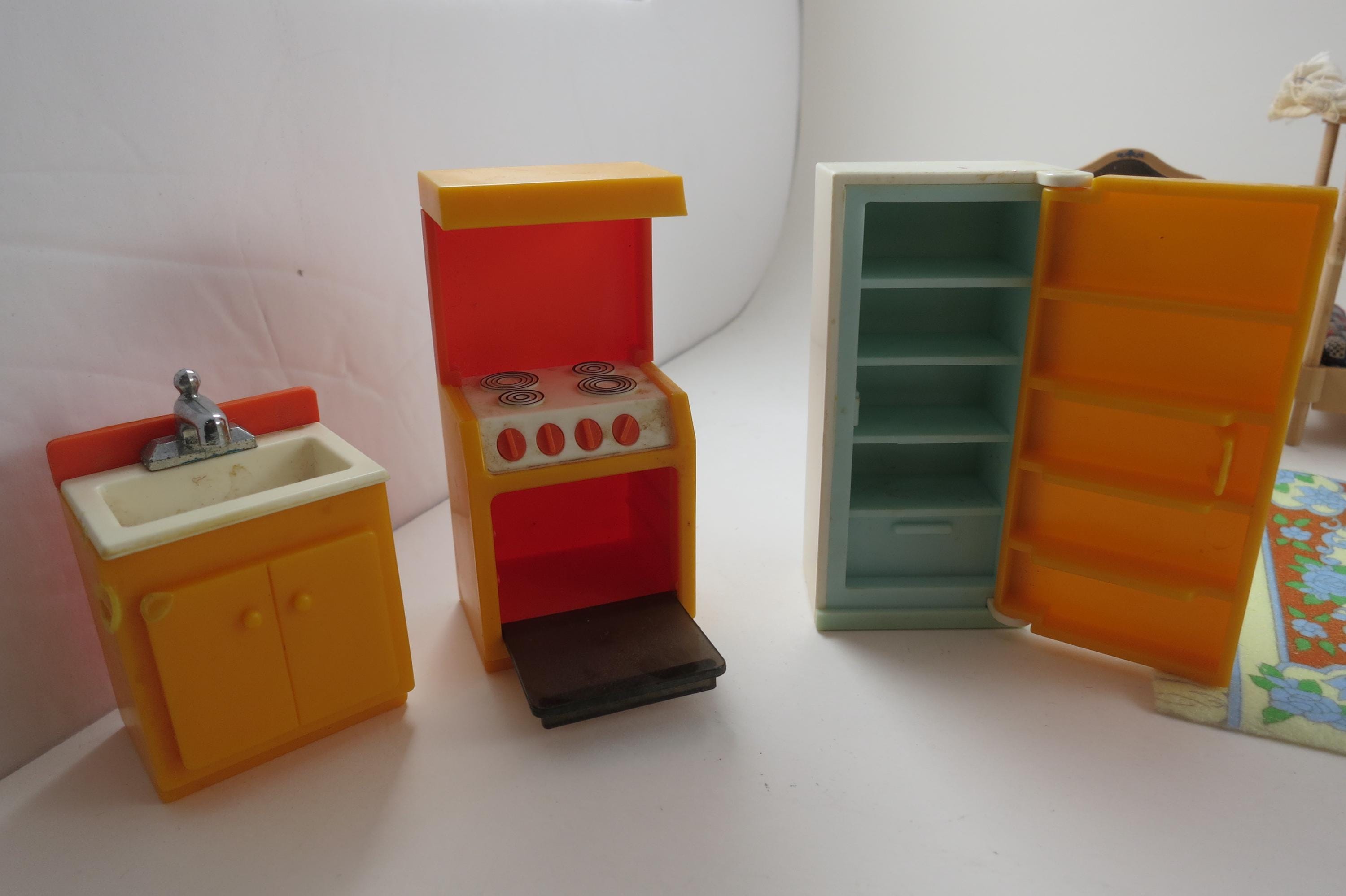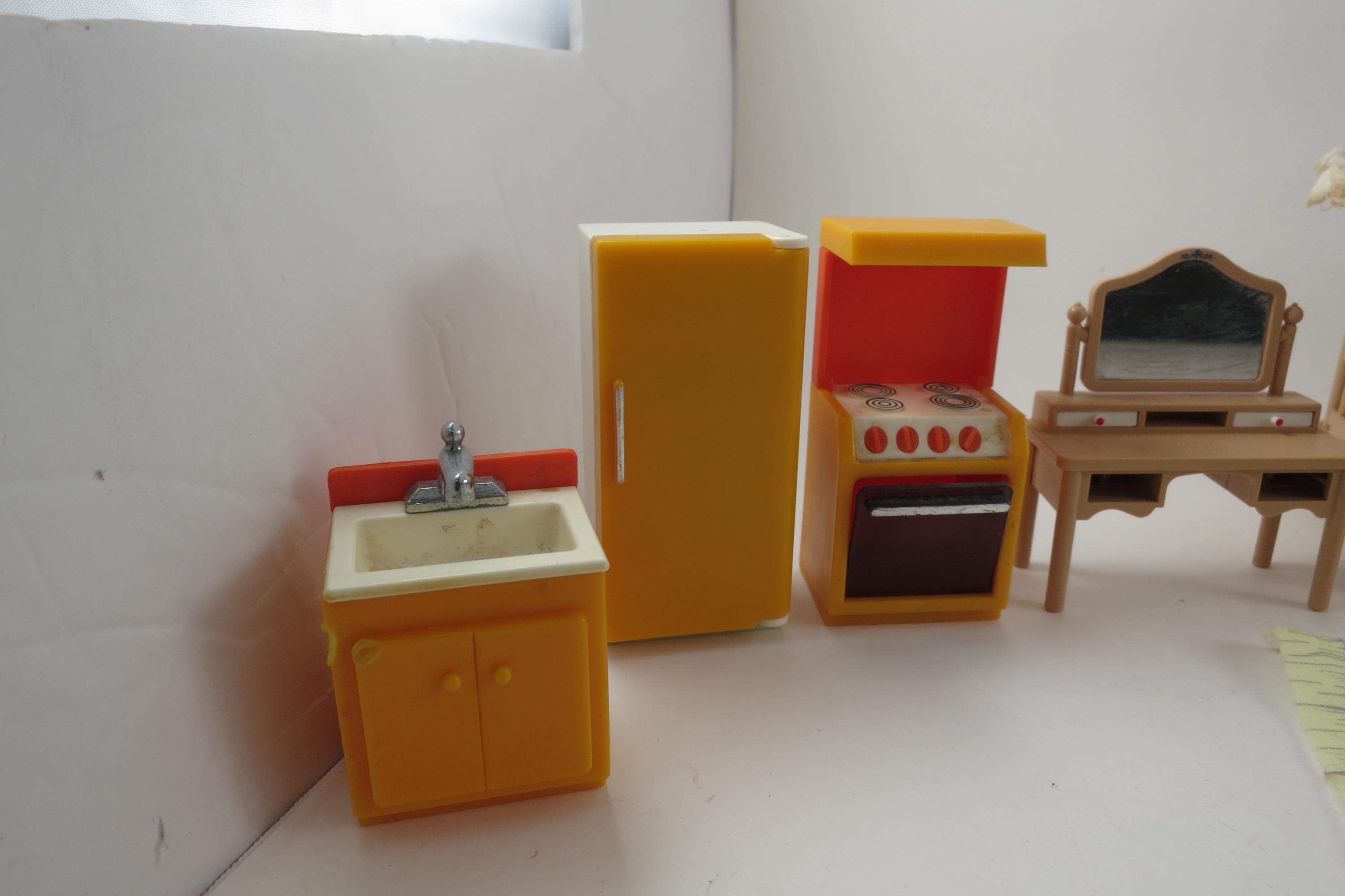 Vintage 80's Doll House Furniture Lot of 13 Pieces Fisher Price and Tomy Plastic. Includes the following