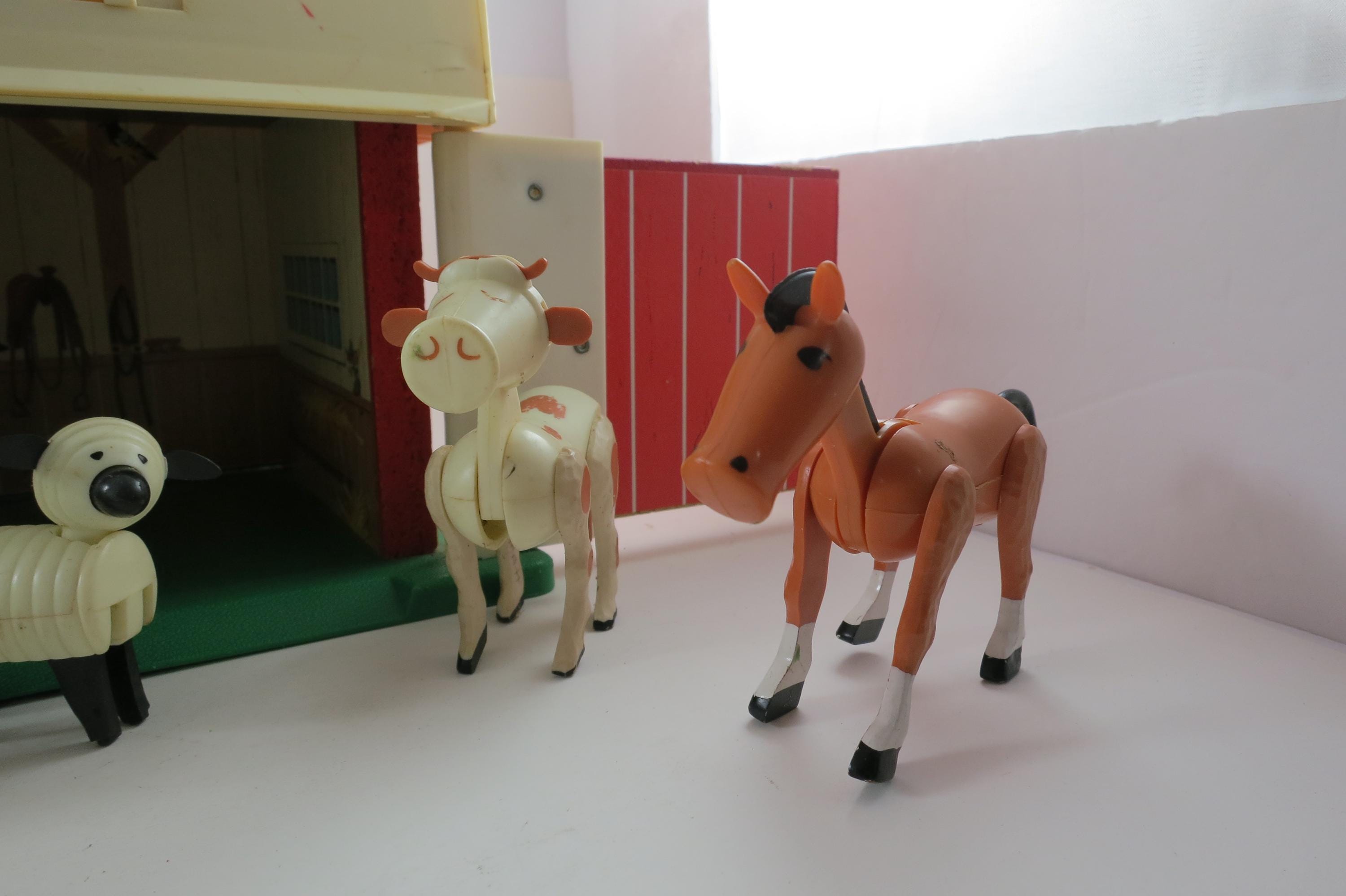 Vintage Fisher Price Toy No 915 Play Family Farm 12 Piece Set with People Animals Tractor and More