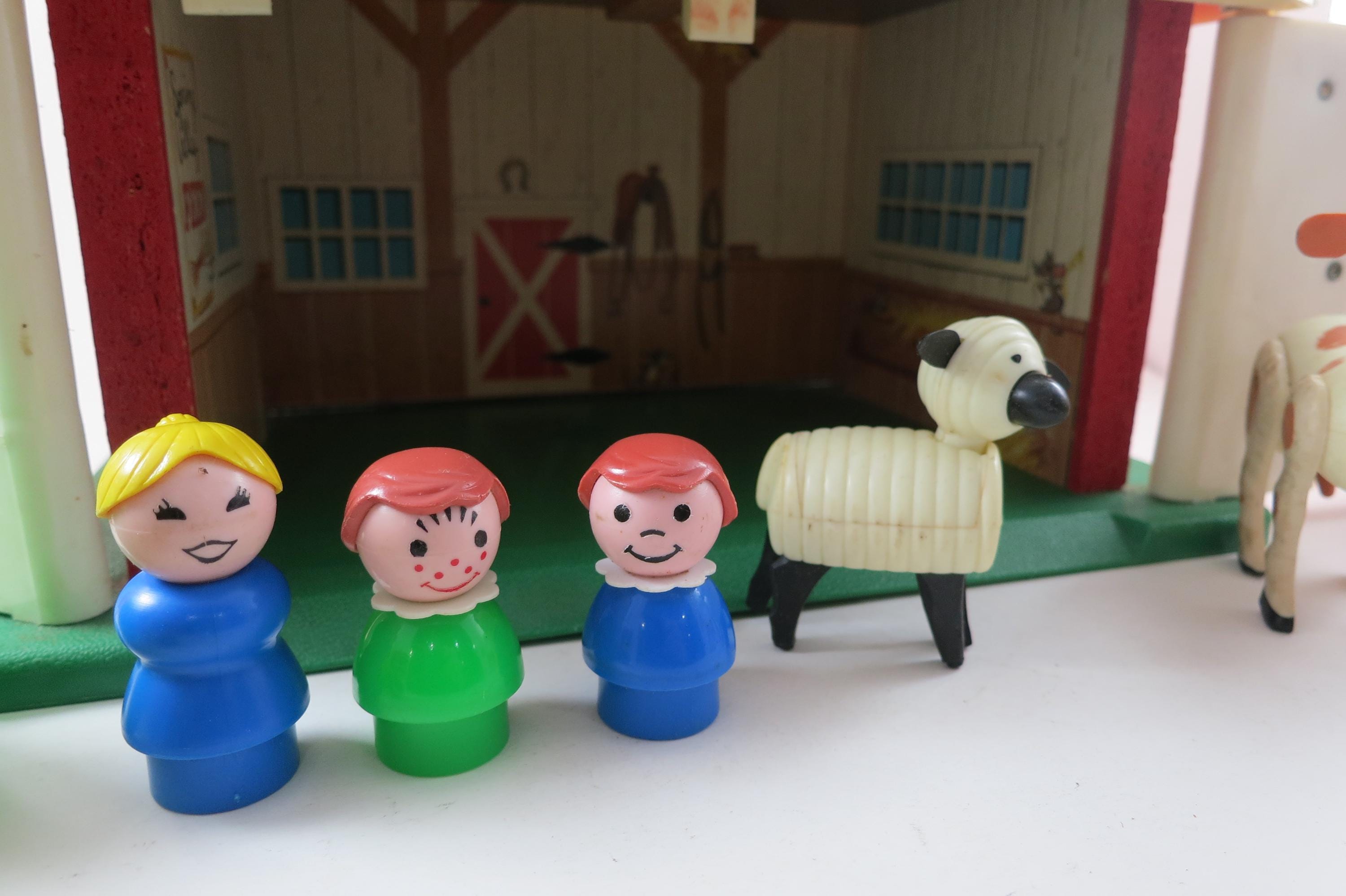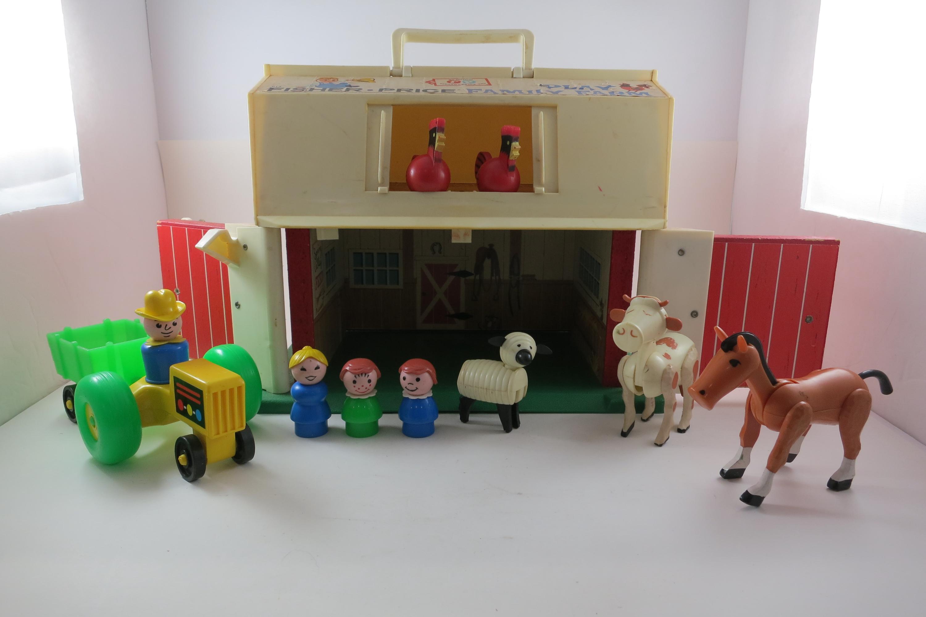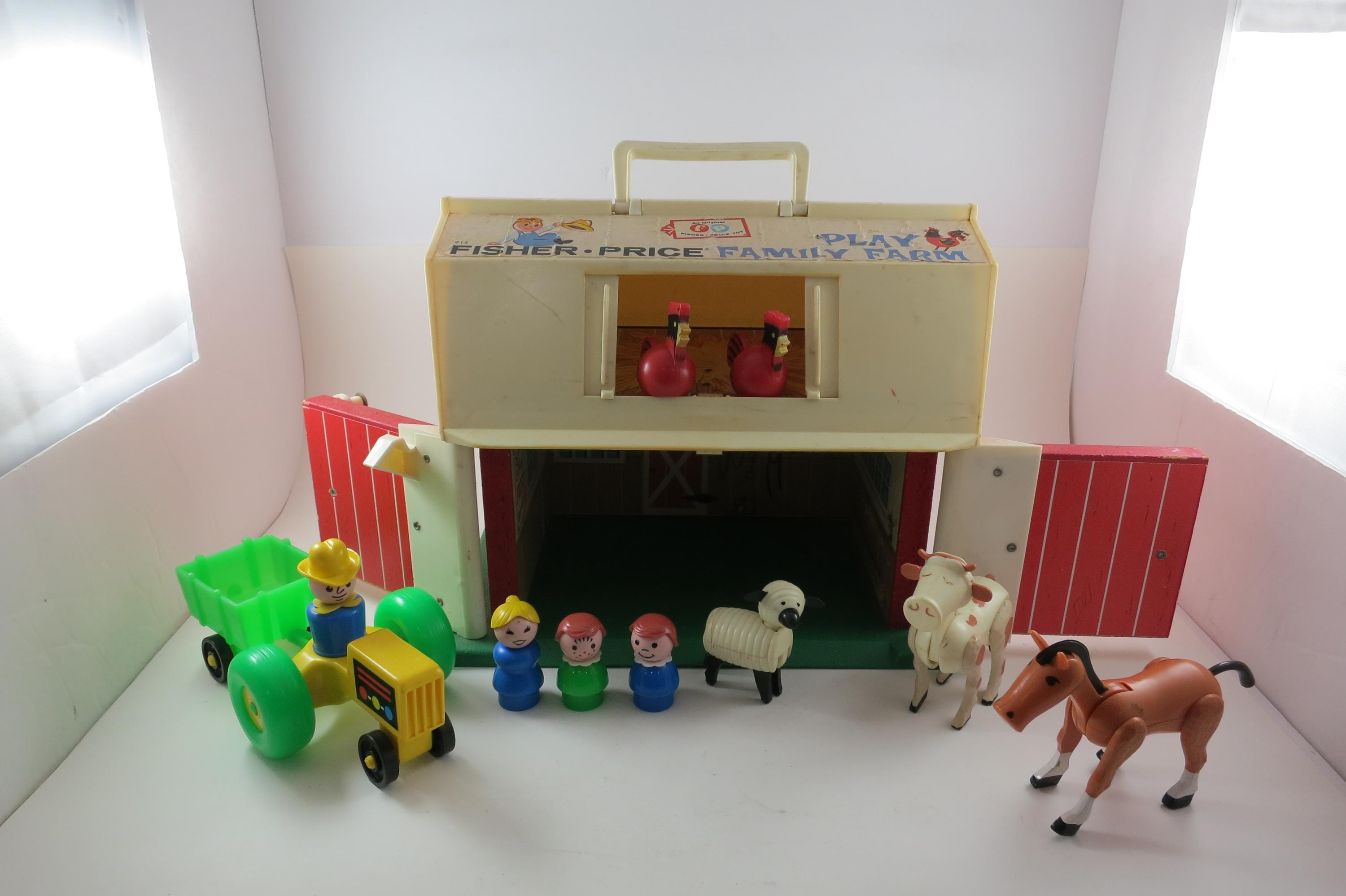 Vintage Fisher Price Toy No 915 Play Family Farm 12 Piece Set with People Animals Tractor and More. Set is in excellent condition and