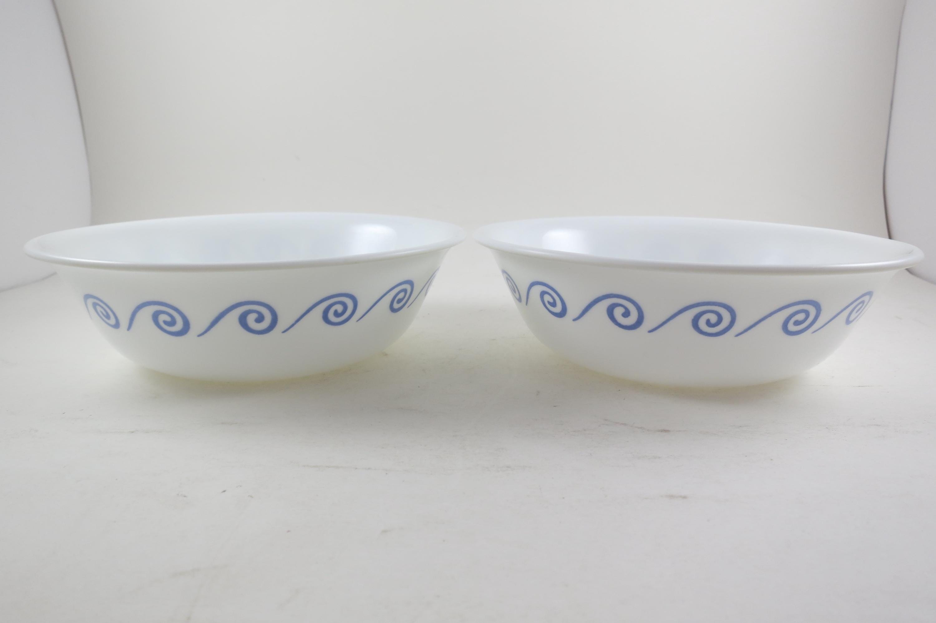 Vintage Corelle Ocean View 6 1/4 Inch Fruit Bowls - Set of 2. No chips, cracks or damages. Listing is for two 6 1/8 inch fruit/salad bowls. Excellent Used Condition.