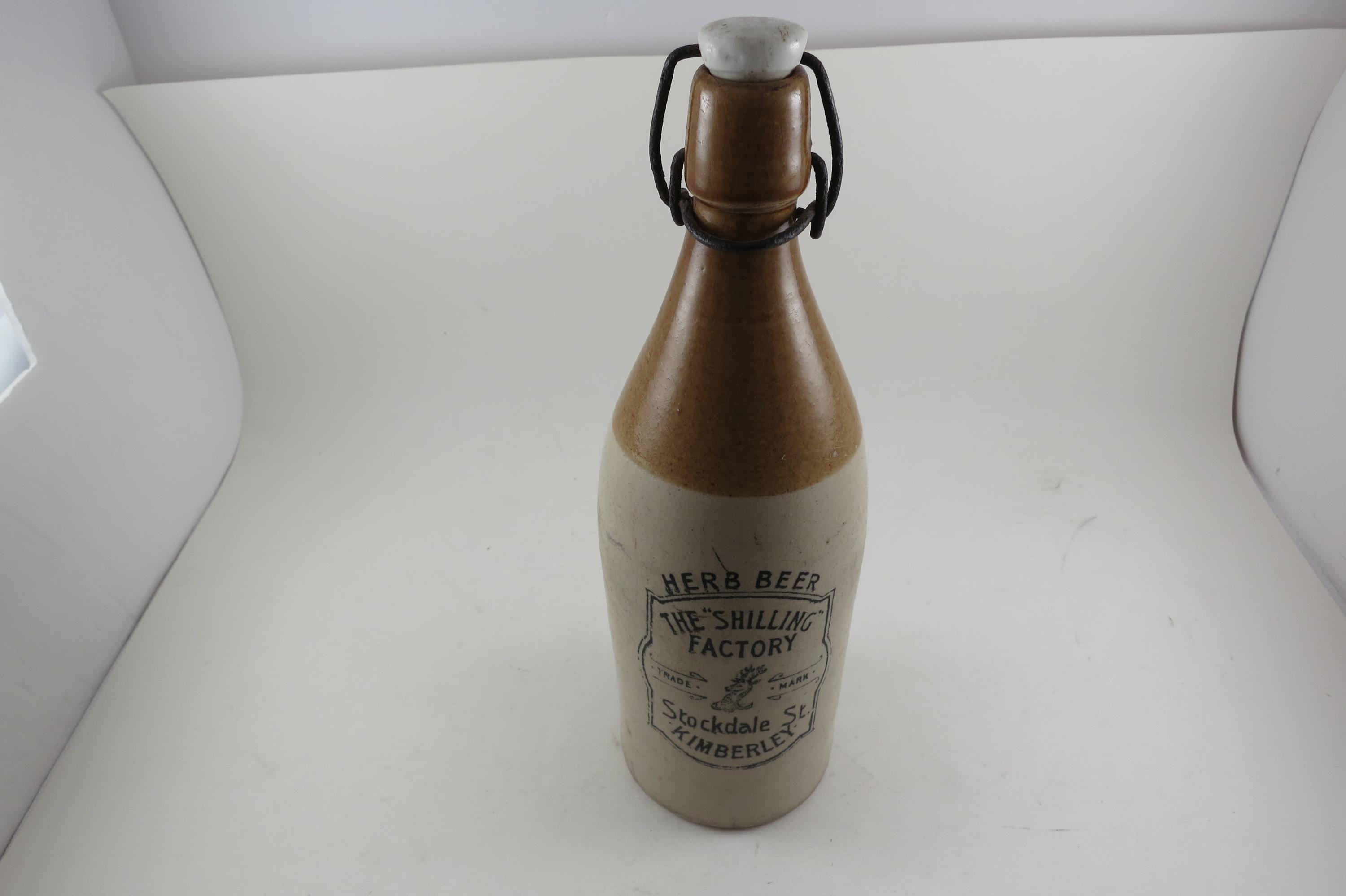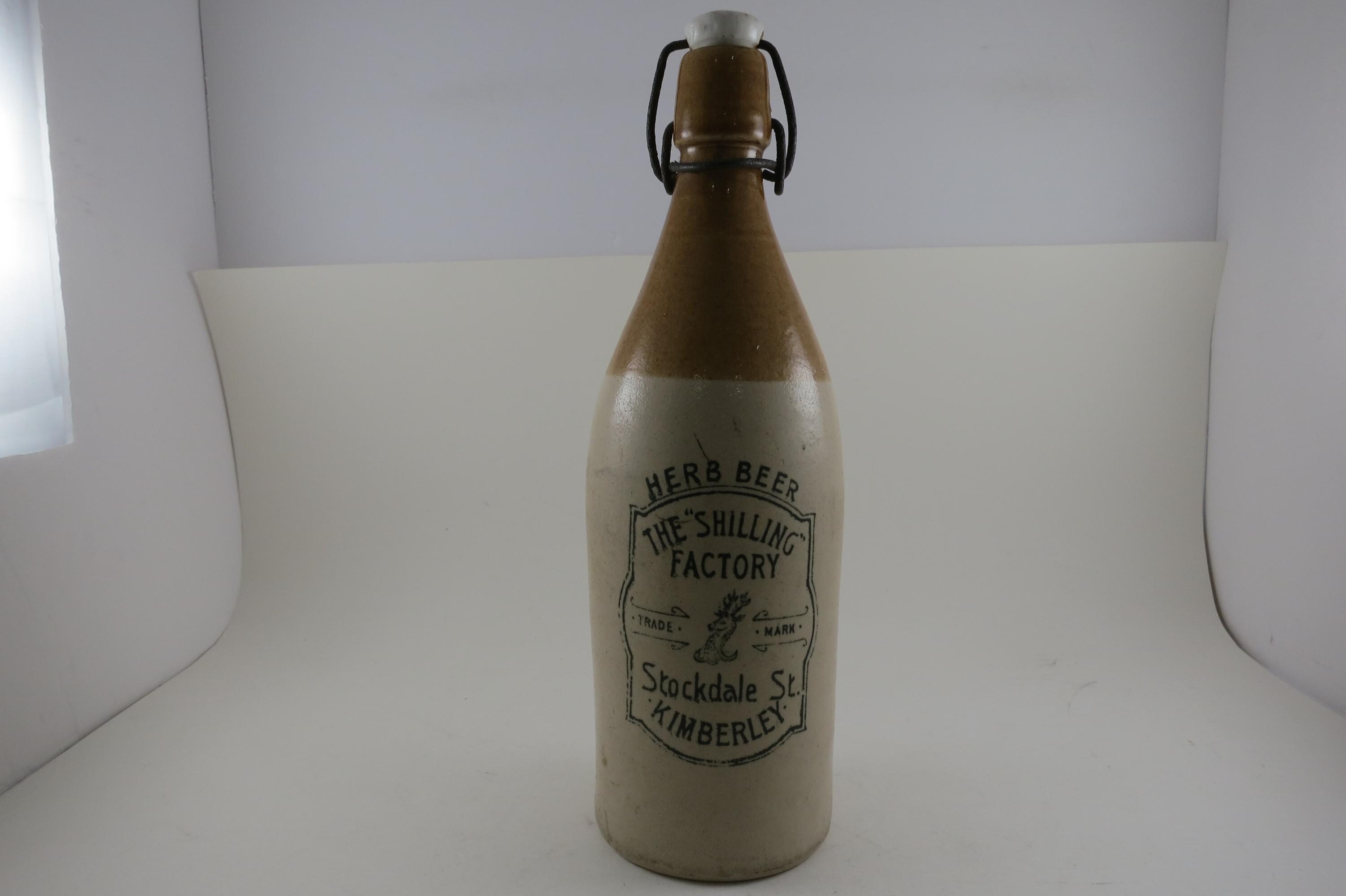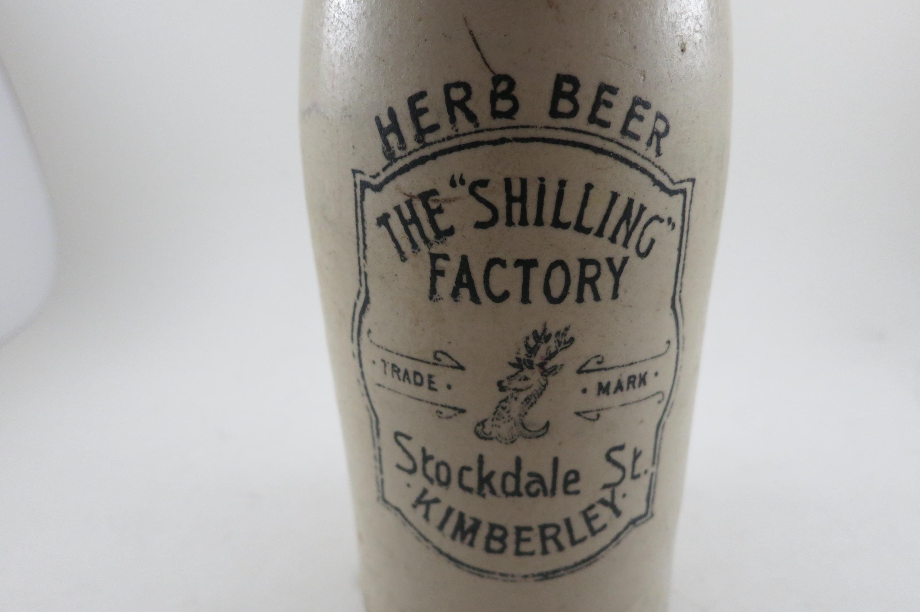 Vintage Schilling Factory Herb Beer Stoneware Bottle Stockdale St Kimberley 11 Inches Tall Old and Rare
