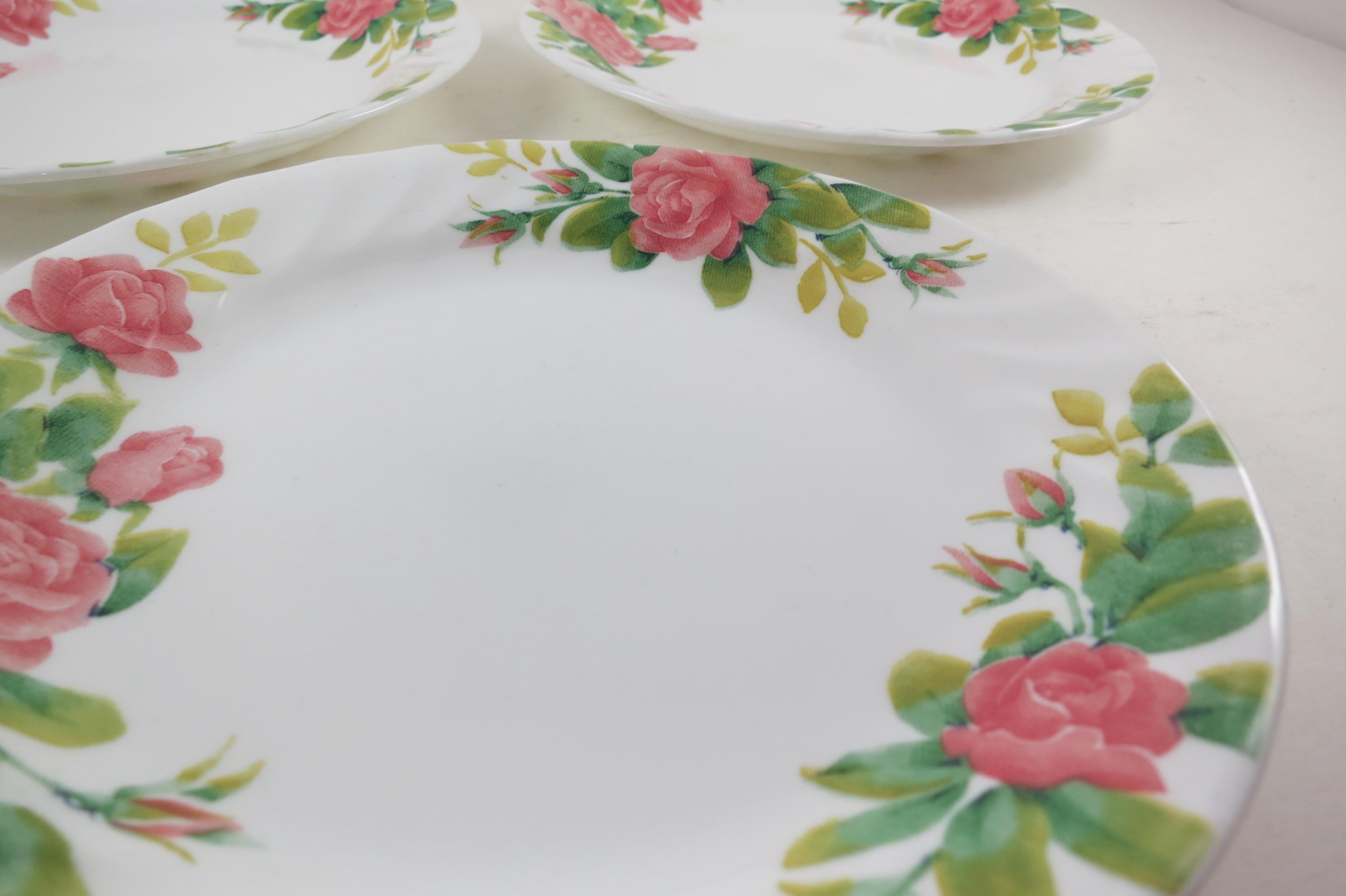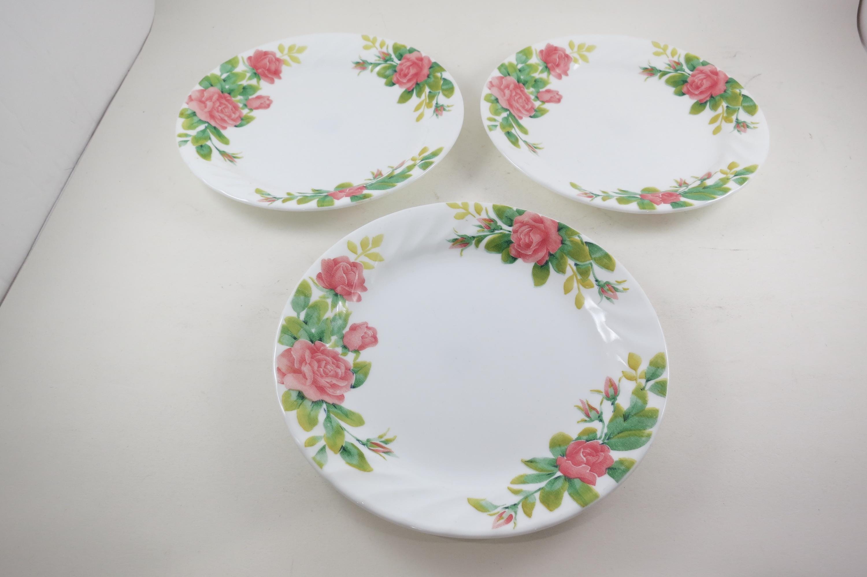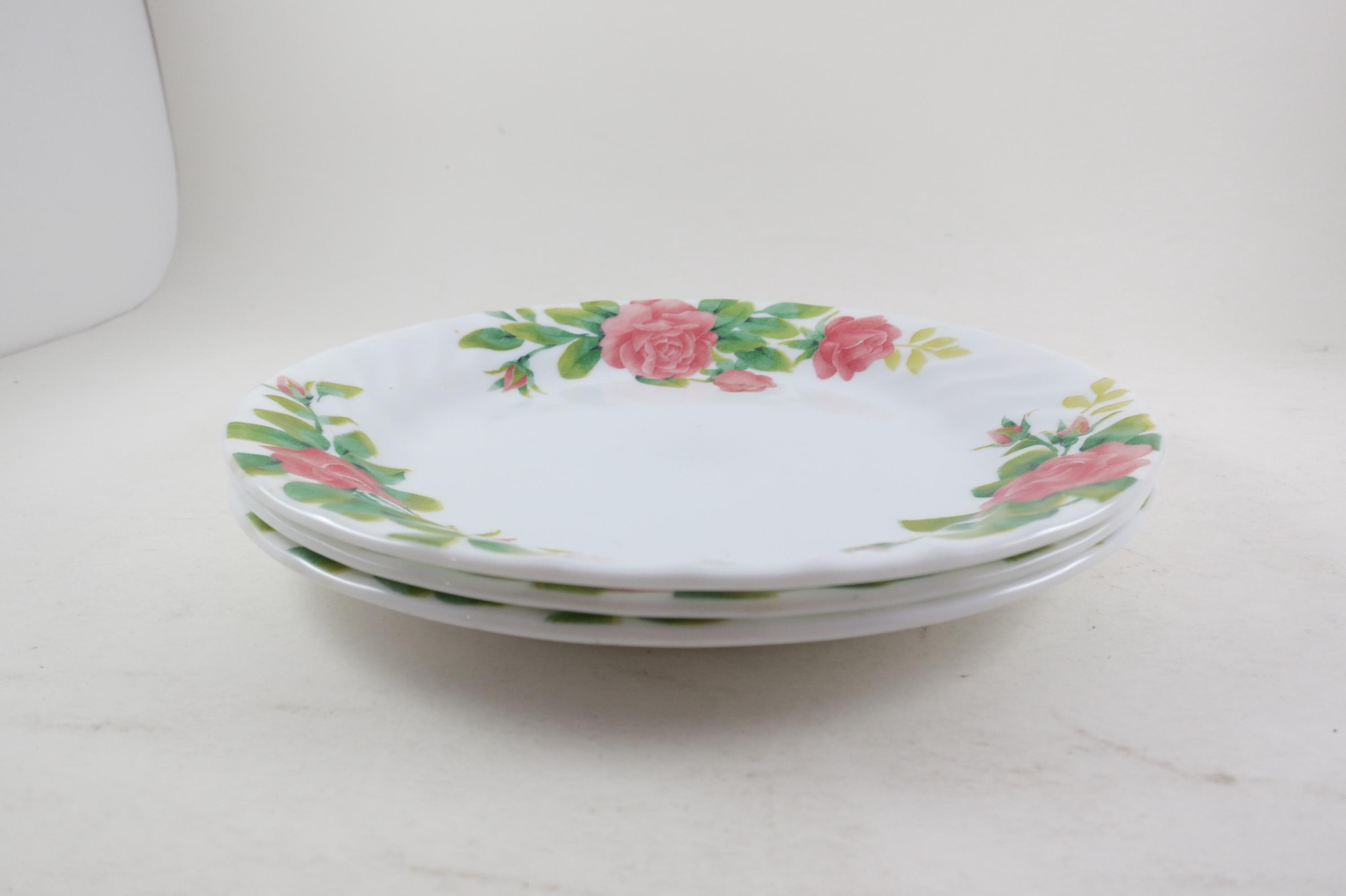 Vintage Corelle Salad Plates: Elegant Rose Pattern, Set of 3. Excellent Condition. No chips, cracks or damages. Listing is for a set of three 7 1/2 inch plates.