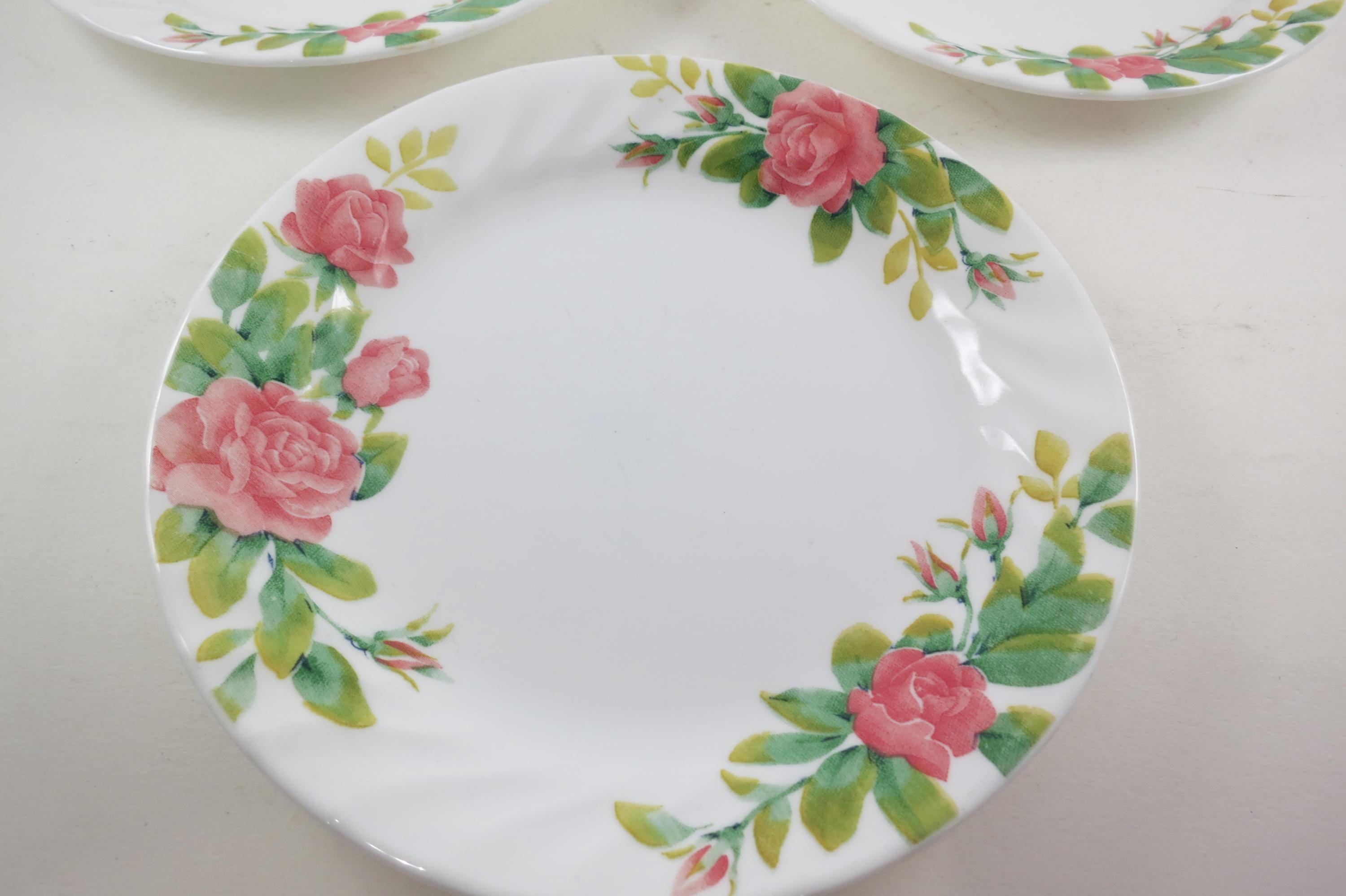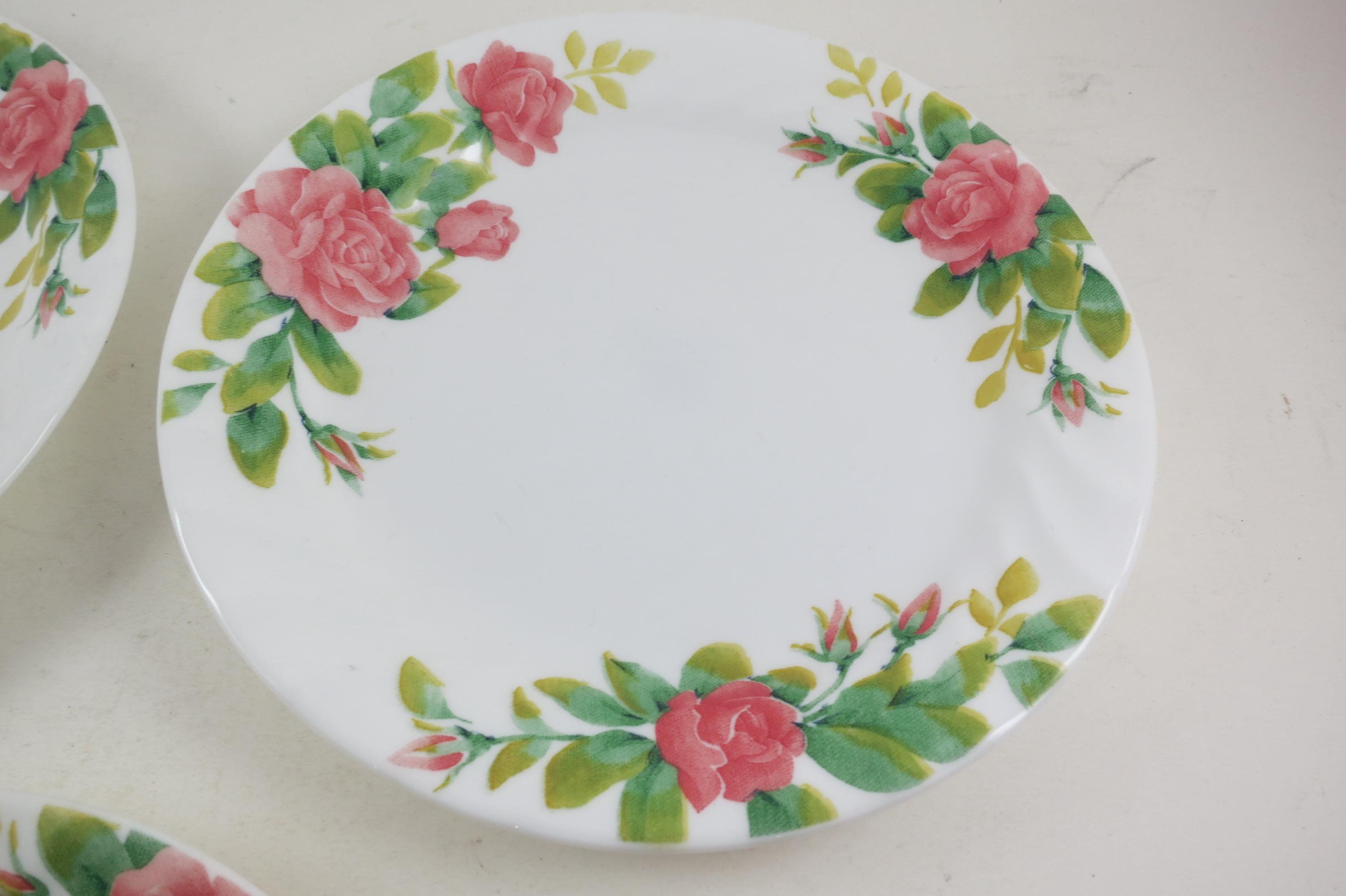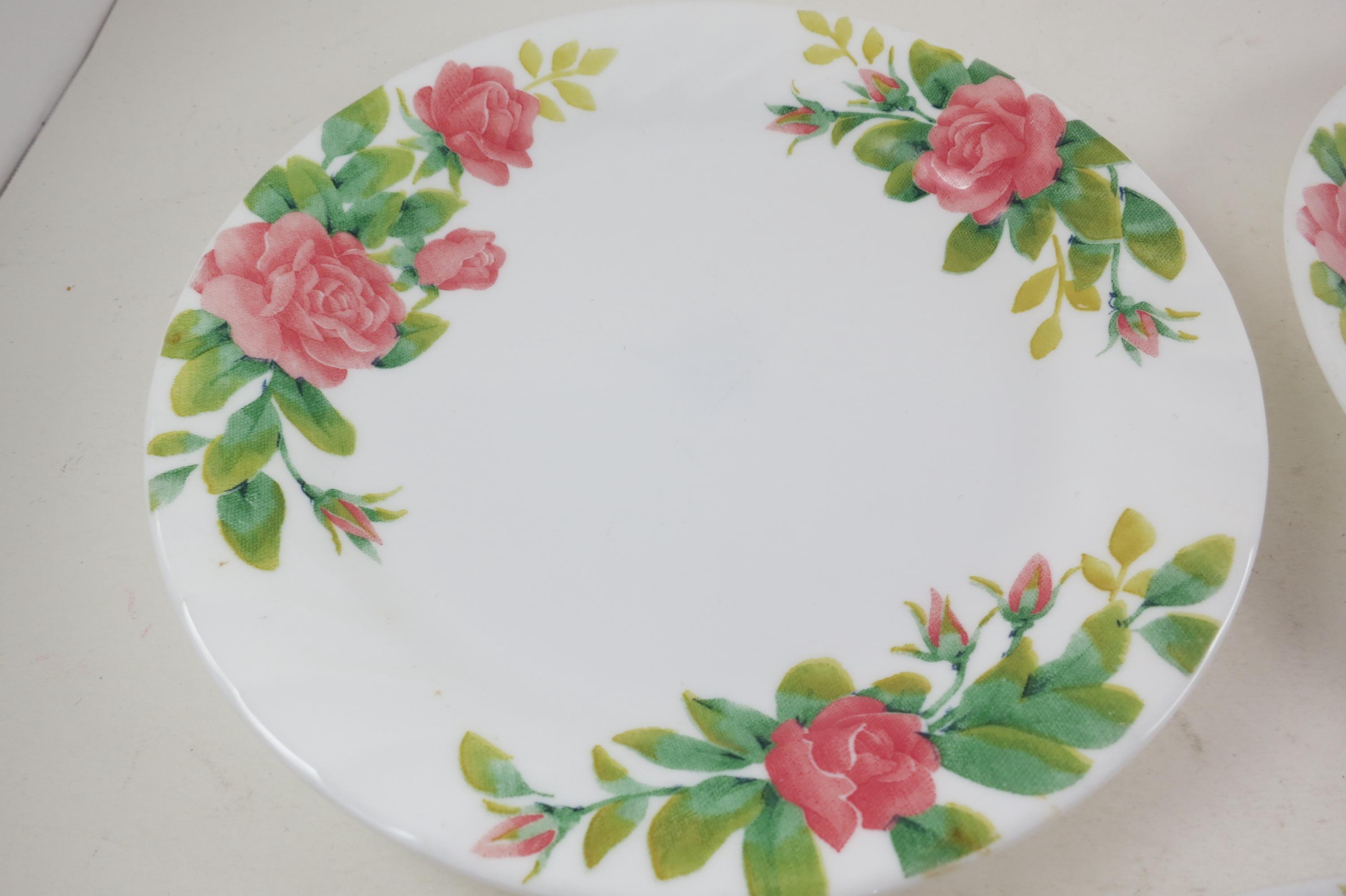Vintage Corelle Salad Plates: Elegant Rose Pattern, Set of 3. Excellent Condition. No chips, cracks or damages. Listing is for a set of three 7 1/2 inch plates.