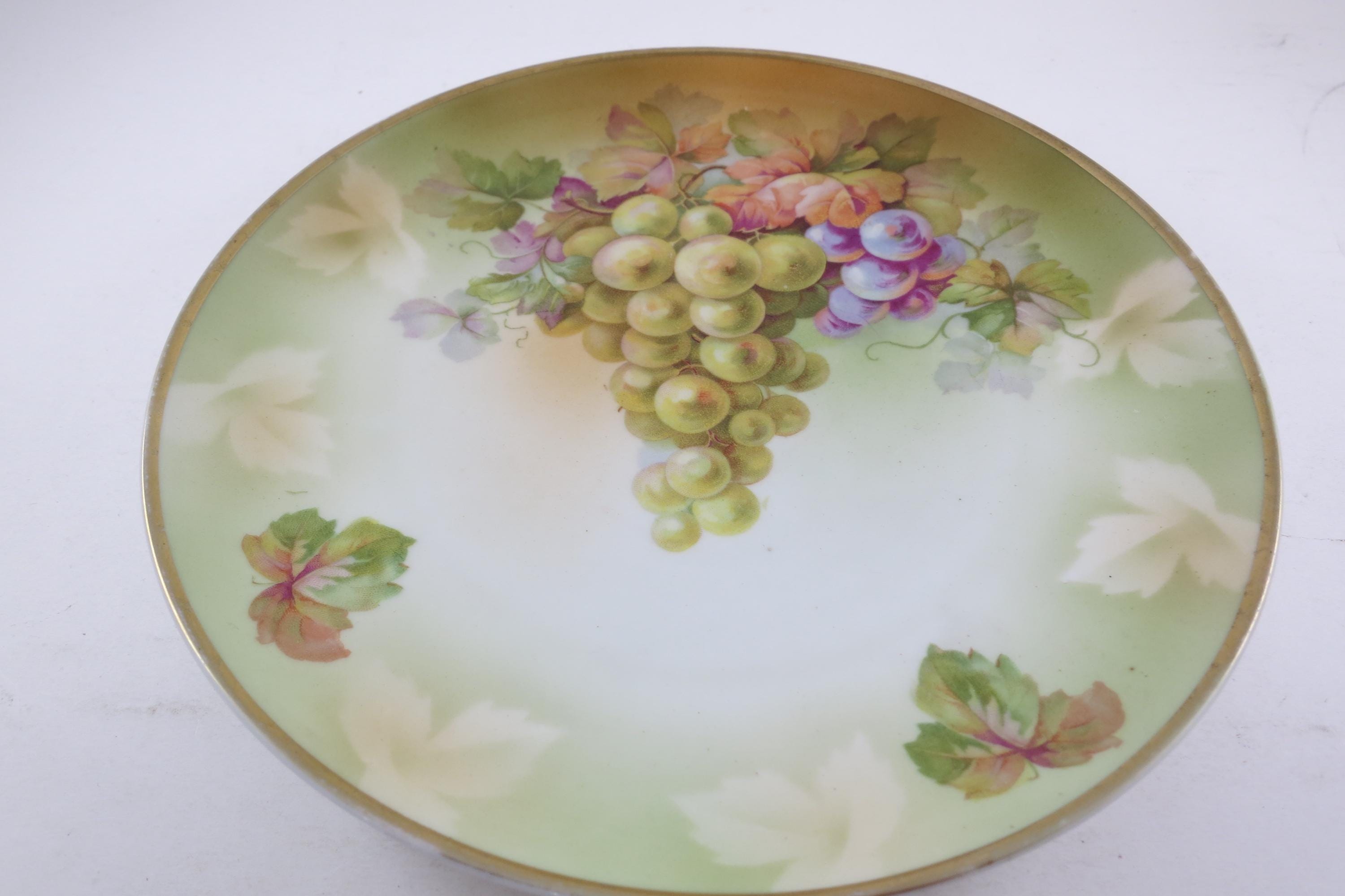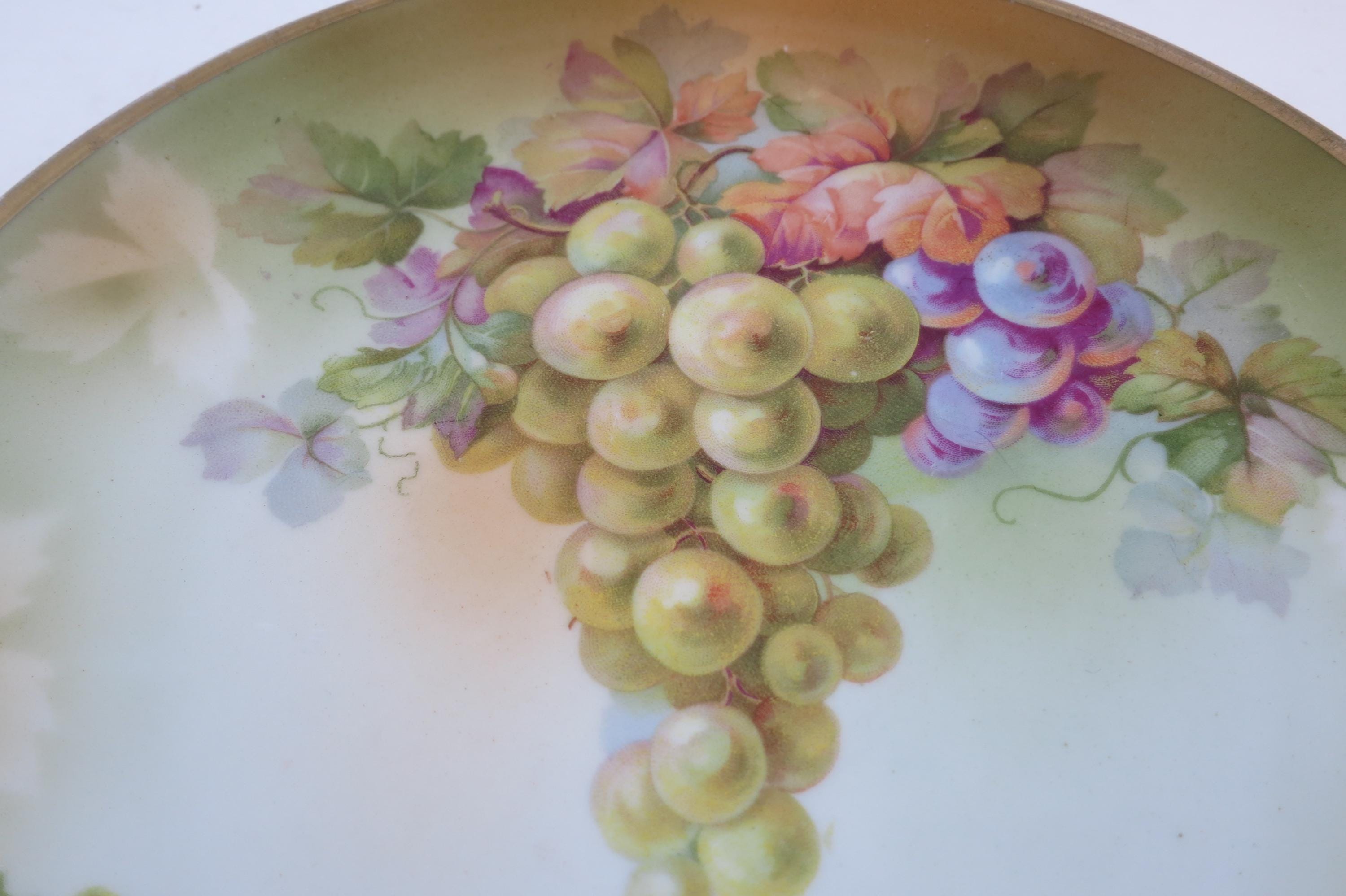 Hand Painted MZ Austria Serving Plate: Green & Purple Grapes 8 1/2 Inches