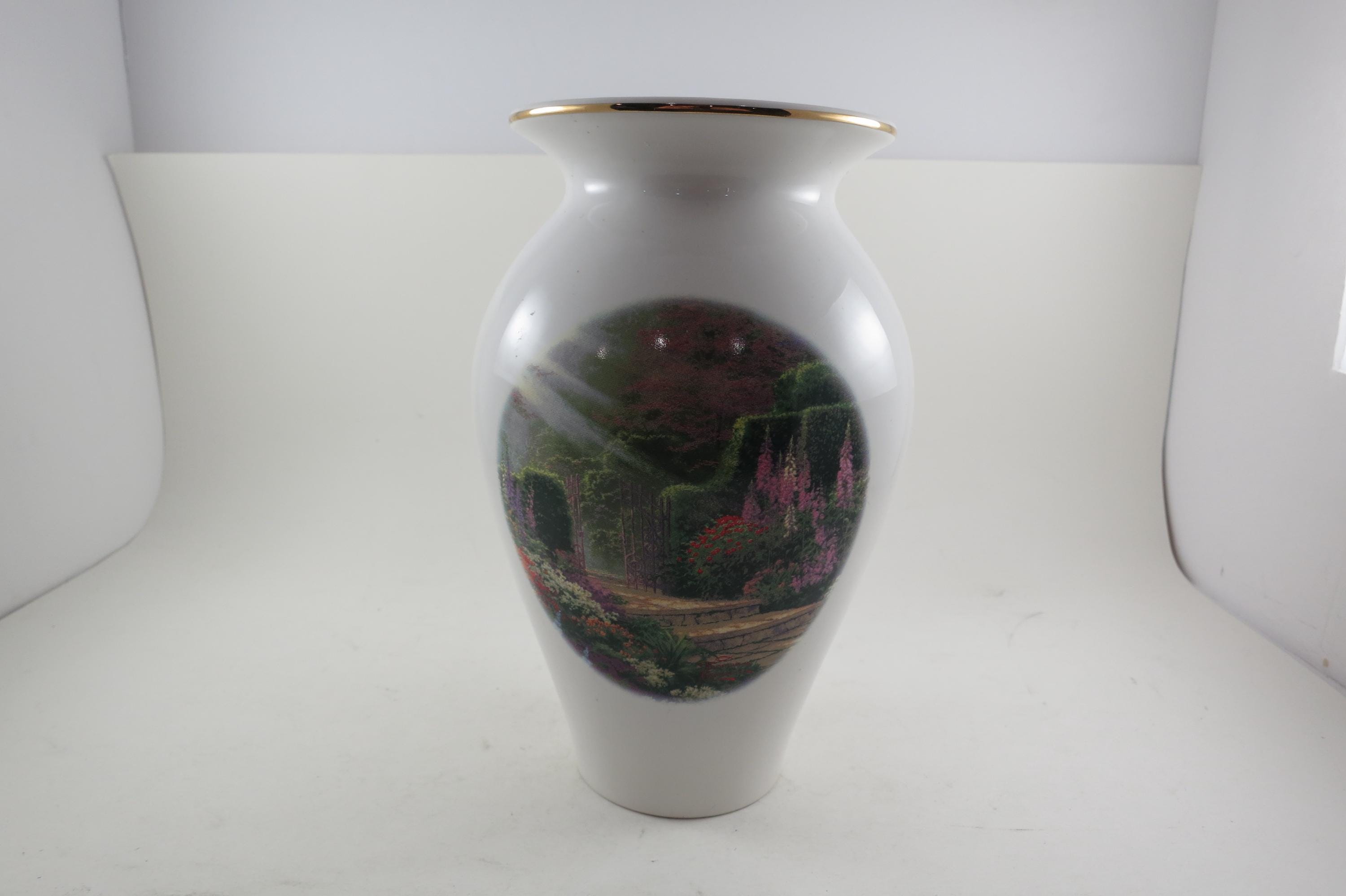 2004 Thomas Kincaid Garden of Grace Hand Painted Vase 8 1/4 Inches Tall Excellent Condition