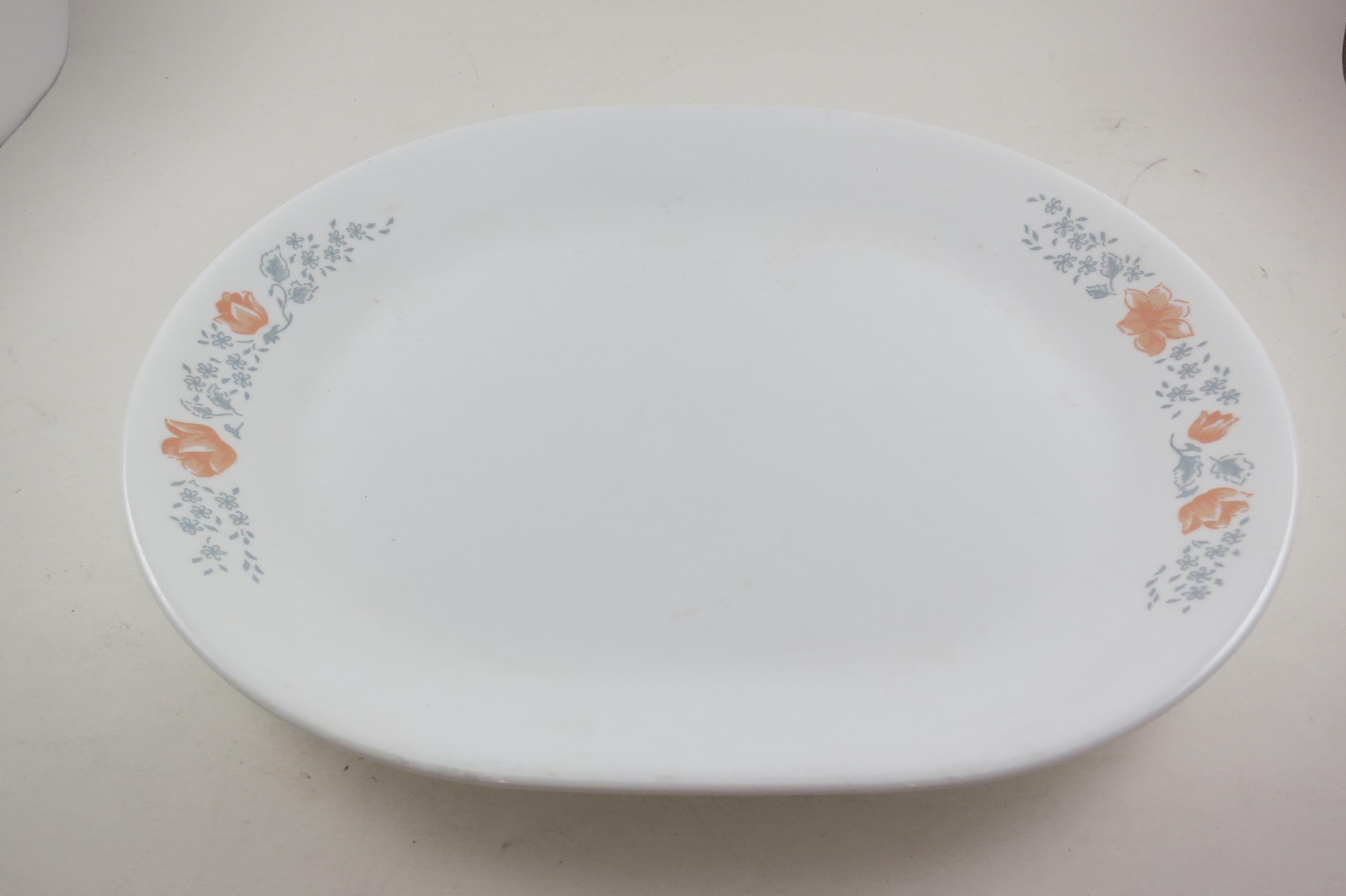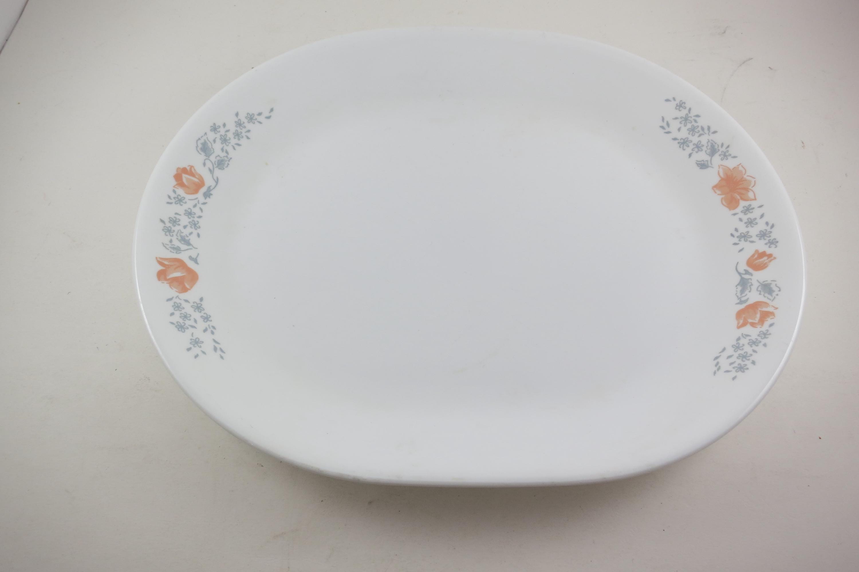 Corelle Apricot Grove Oval Serving Platter - 10x12 Inch Excellent Condition. Width is 10 inches. Excellent Used Condition and ready to keep using!
