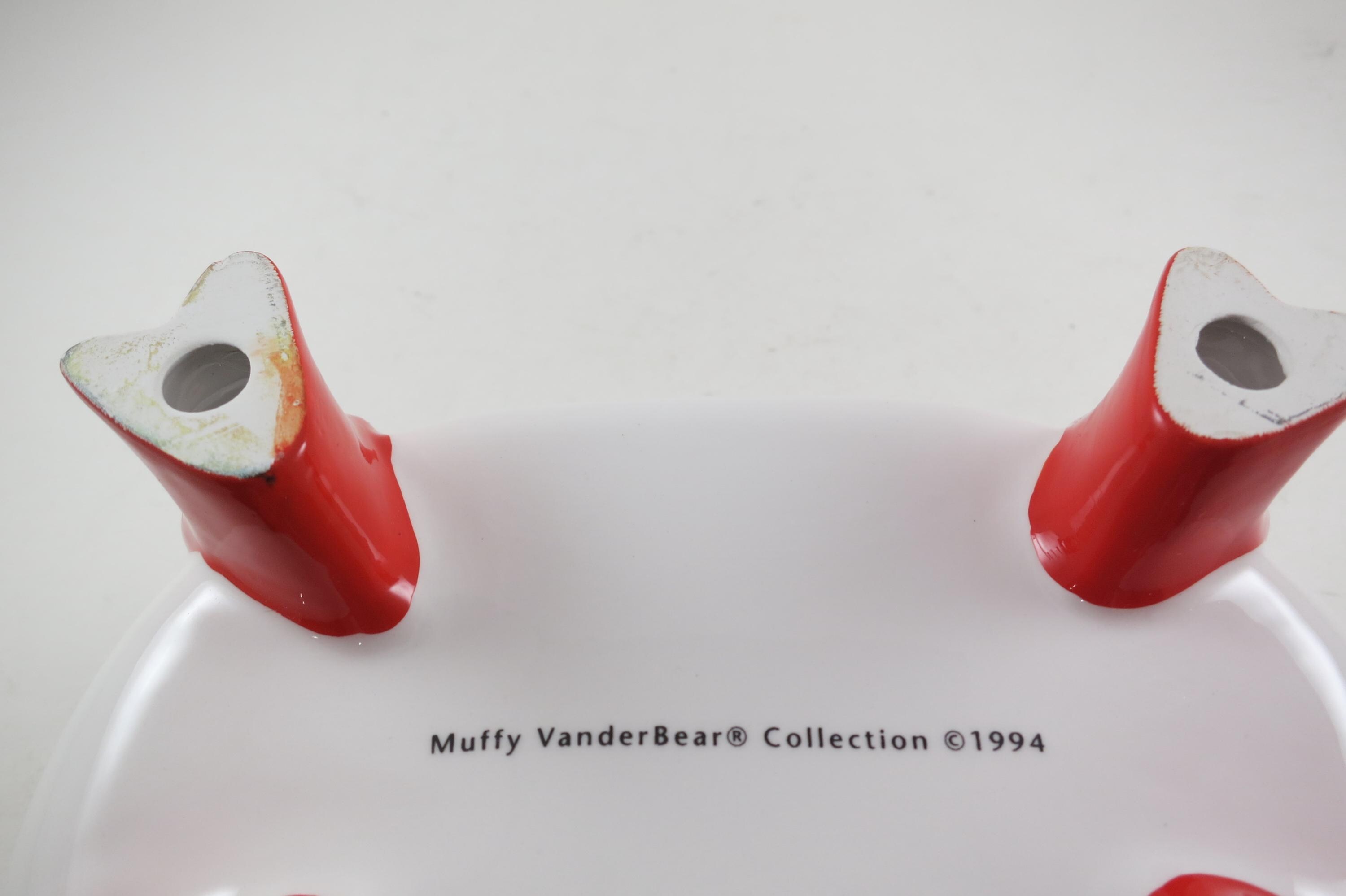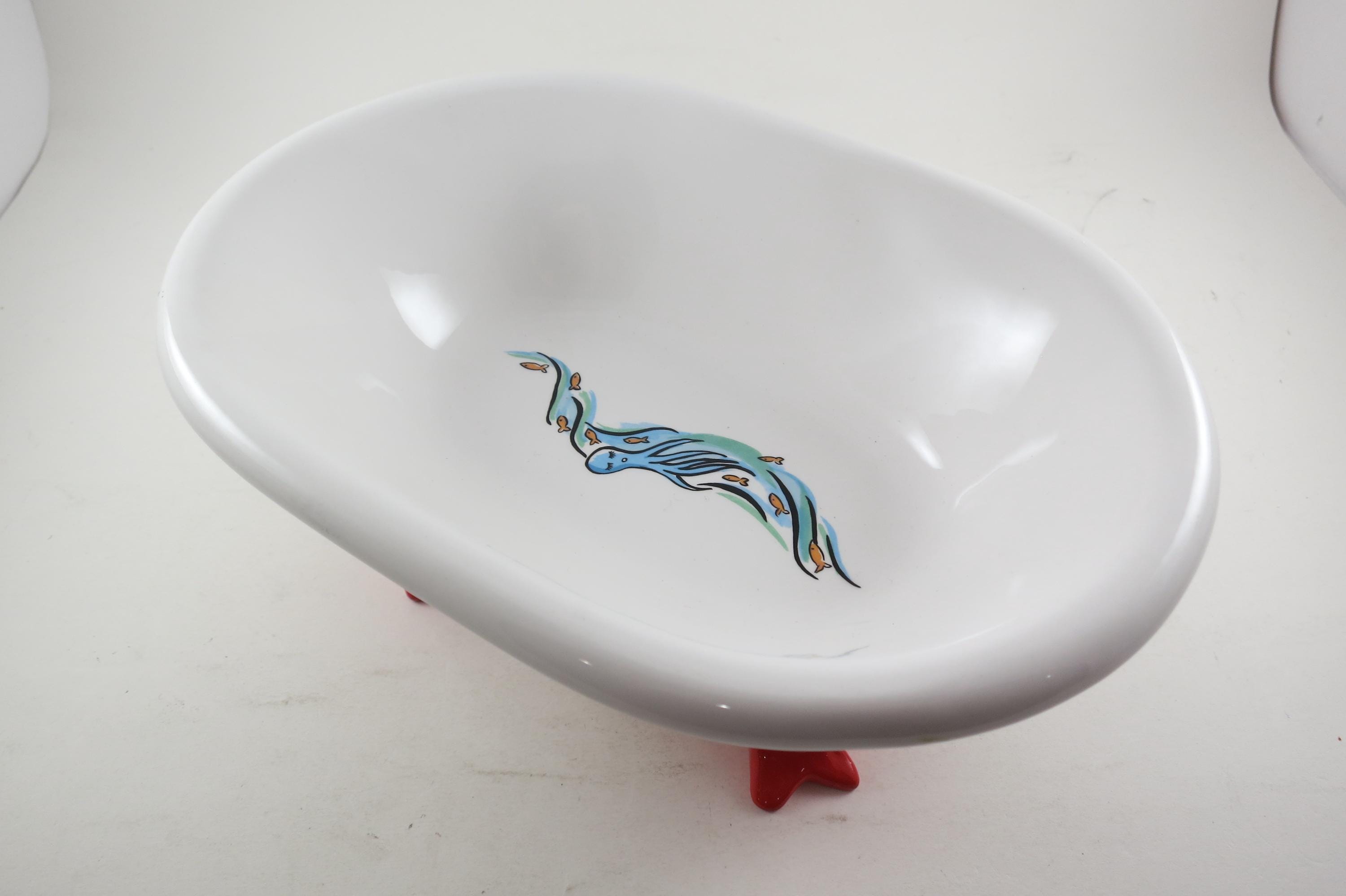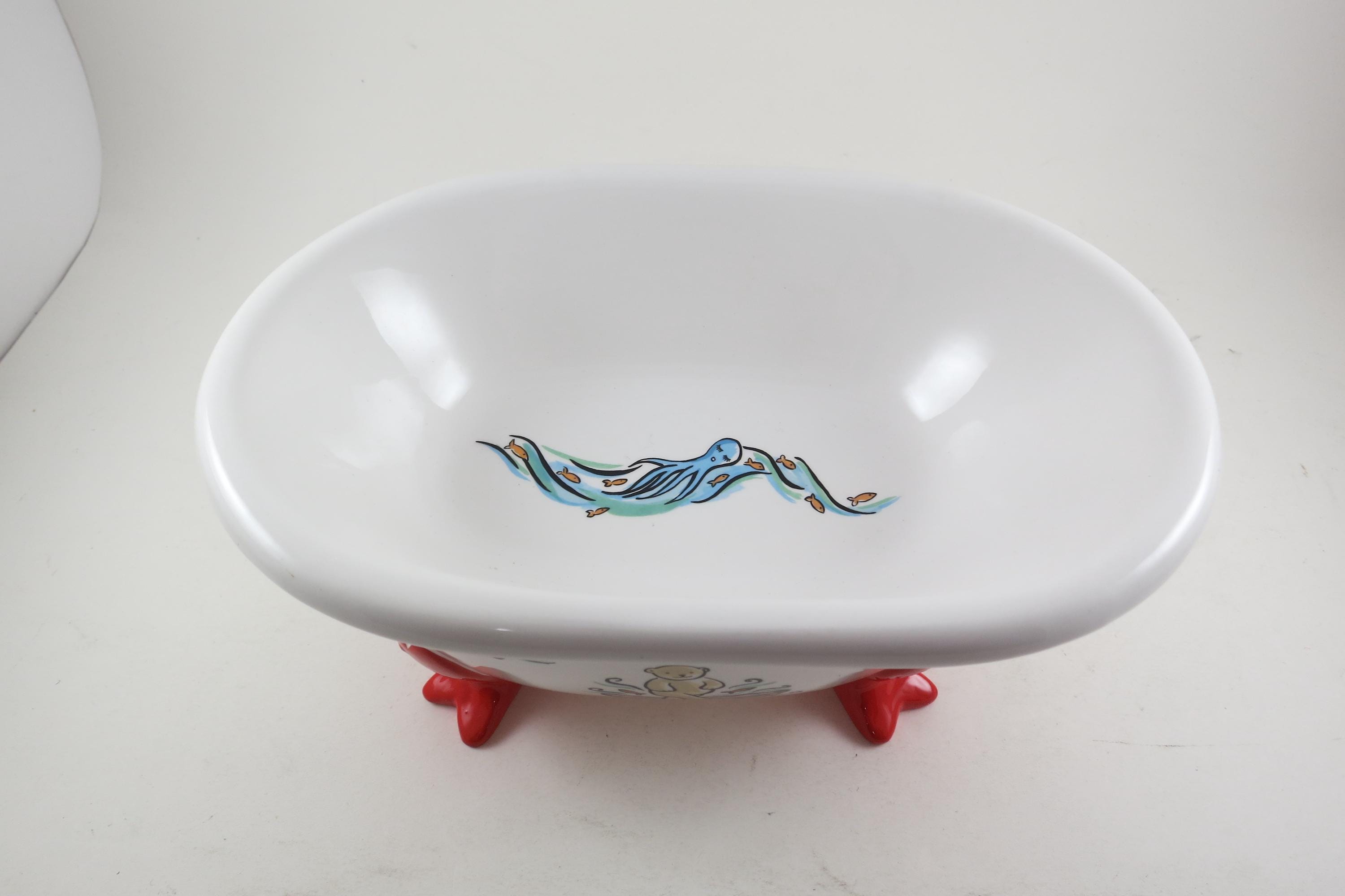 Vintage 1994 Muffy VanderBear Collection Ceramic Dish Bear Bathing Fish Feet Excellent Condition. Measures 9 1/4 inches long, 6 1/2 inches wide and 4 inches tall.