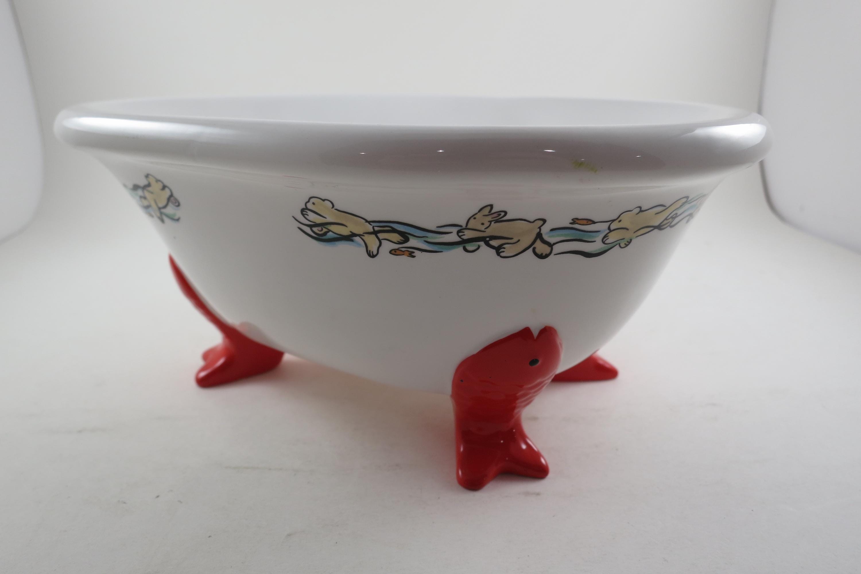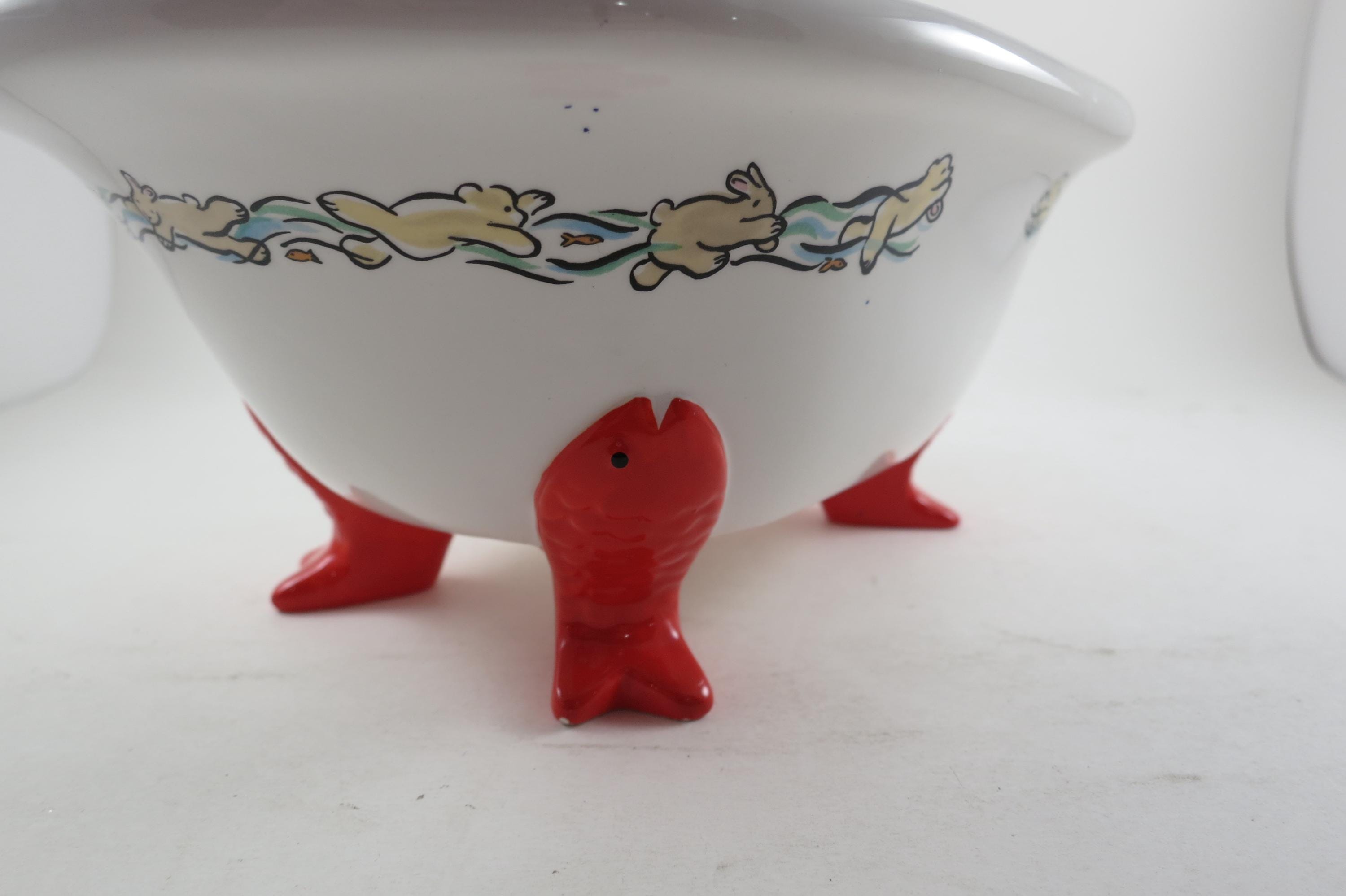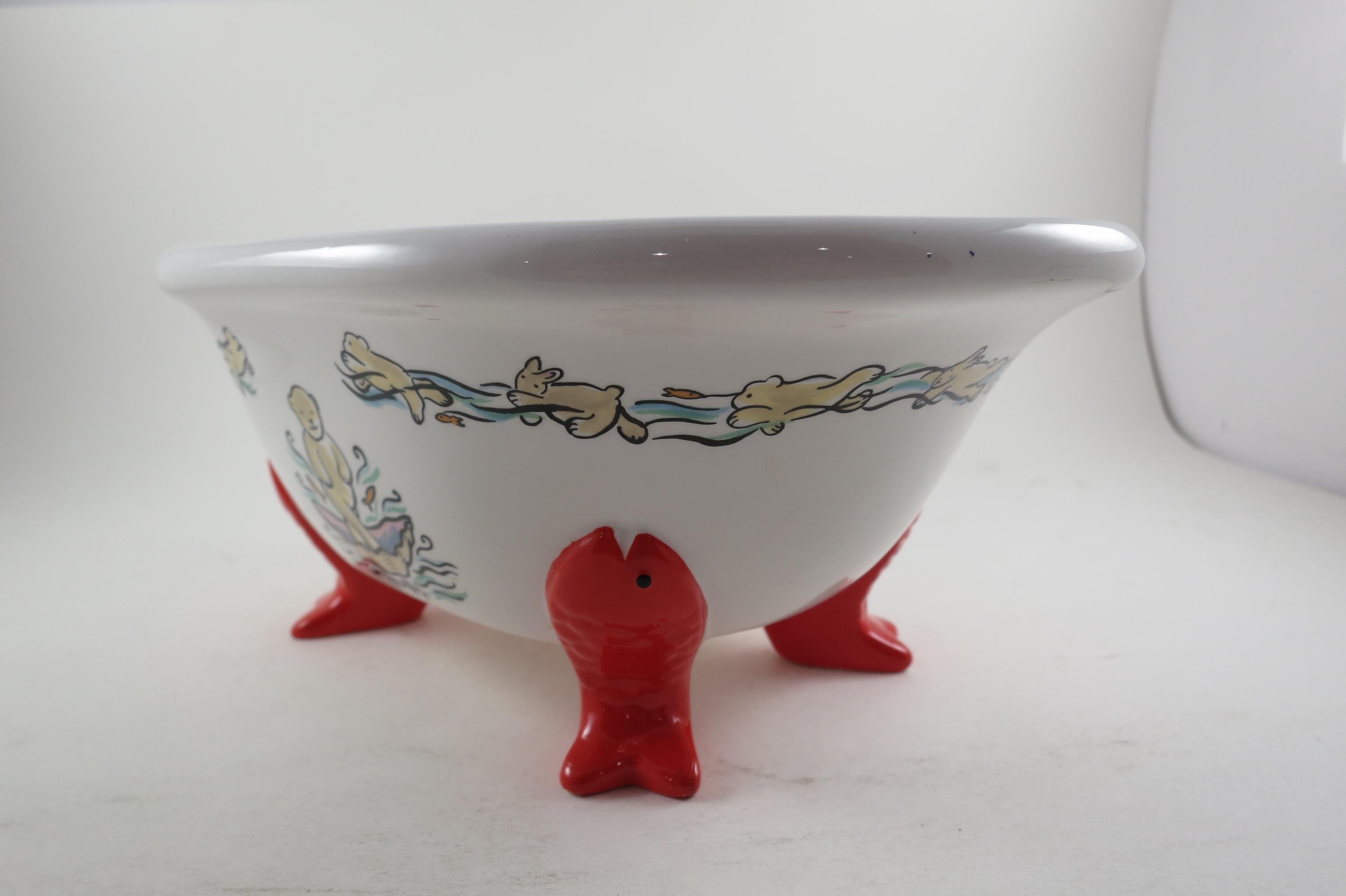 Vintage 1994 Muffy VanderBear Collection Ceramic Dish Bear Bathing Fish Feet Excellent Condition