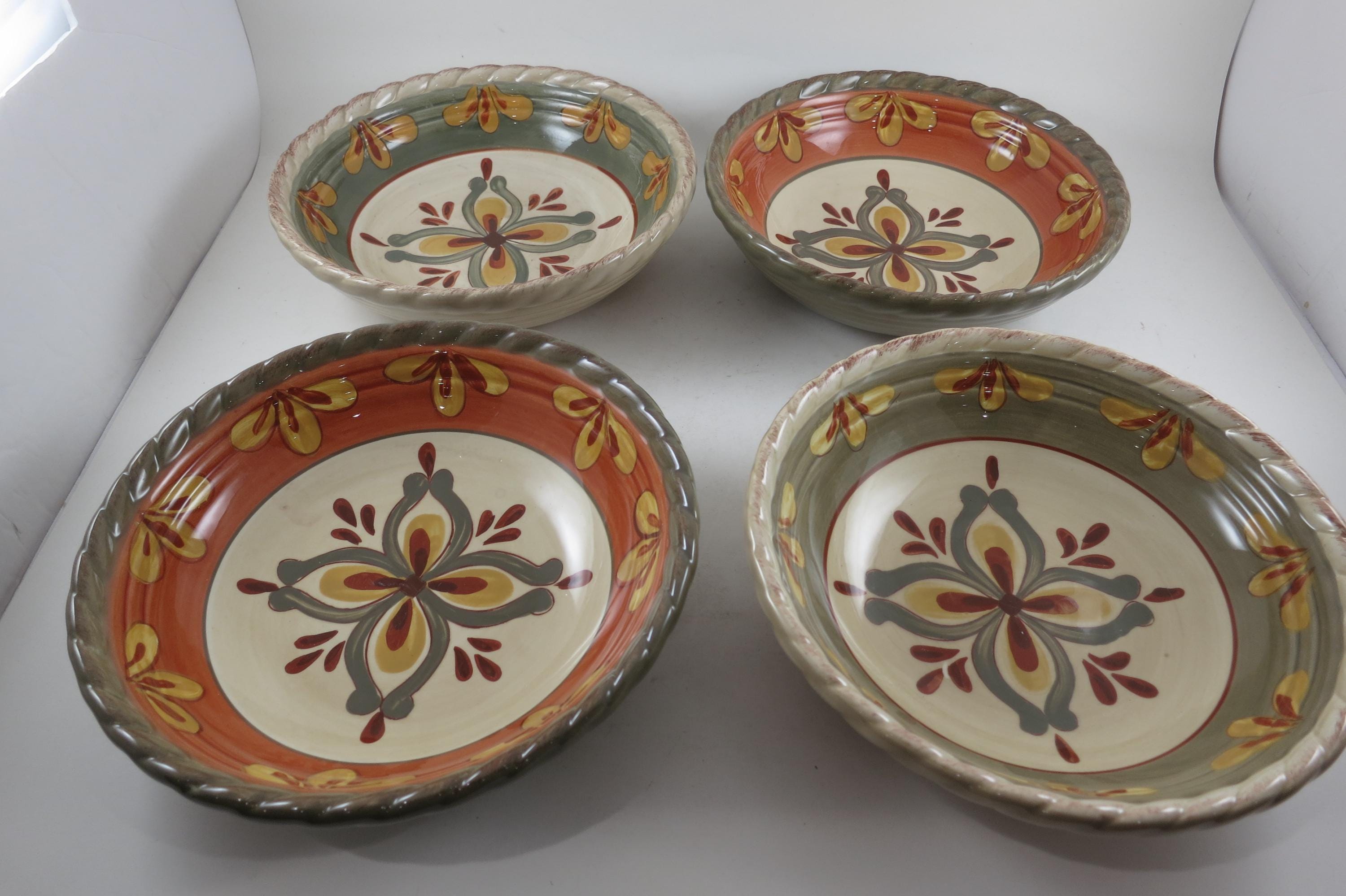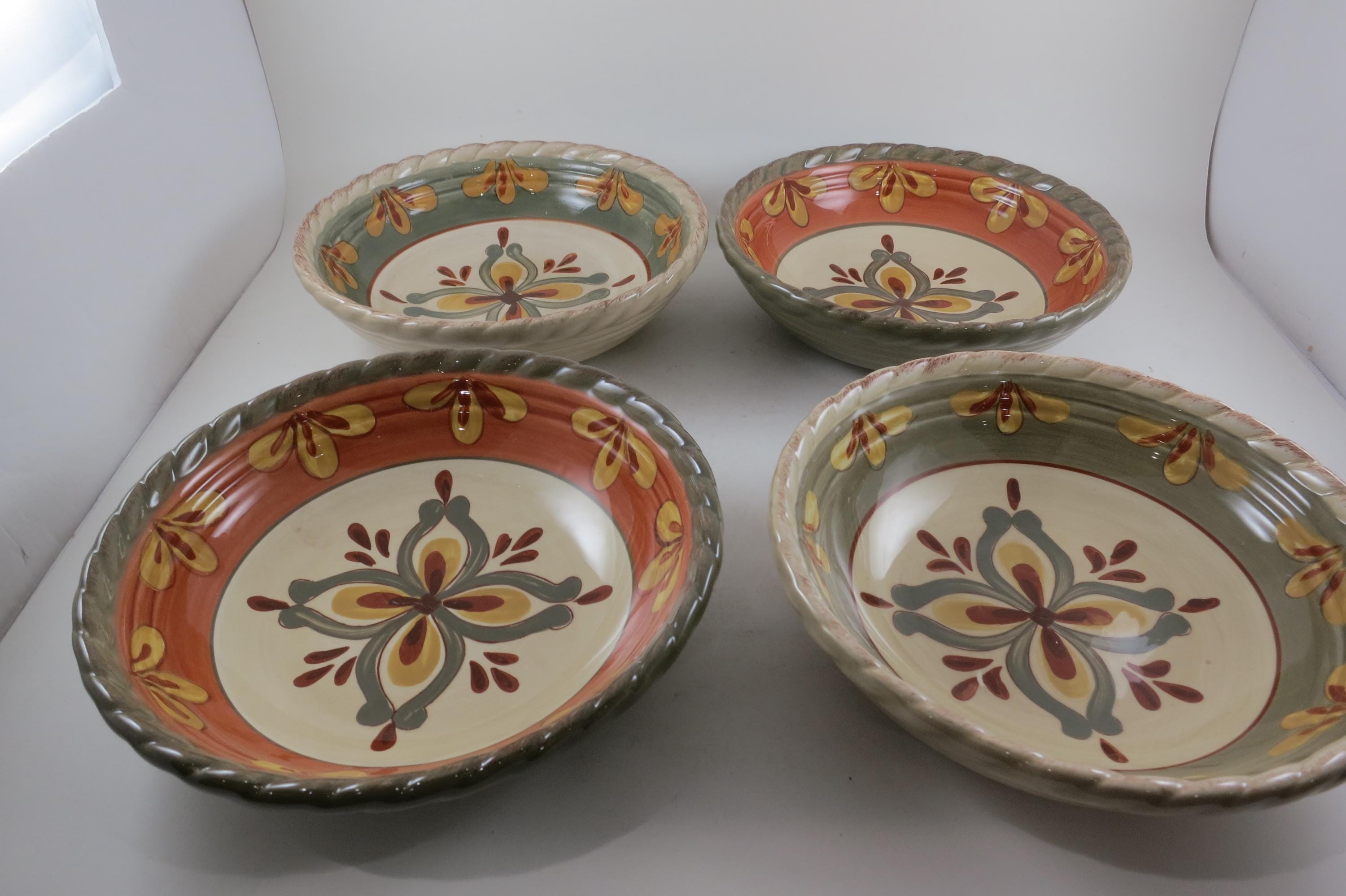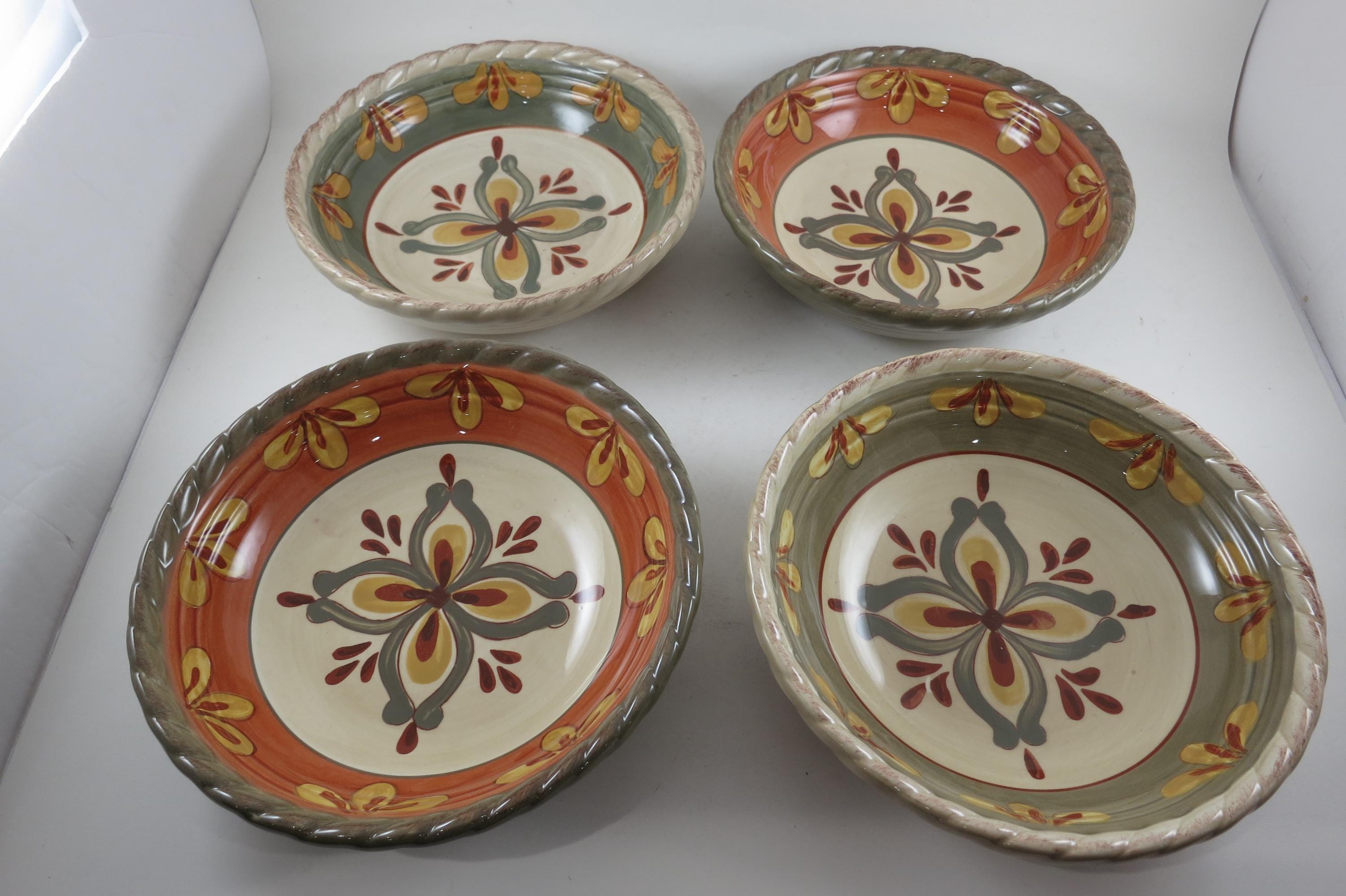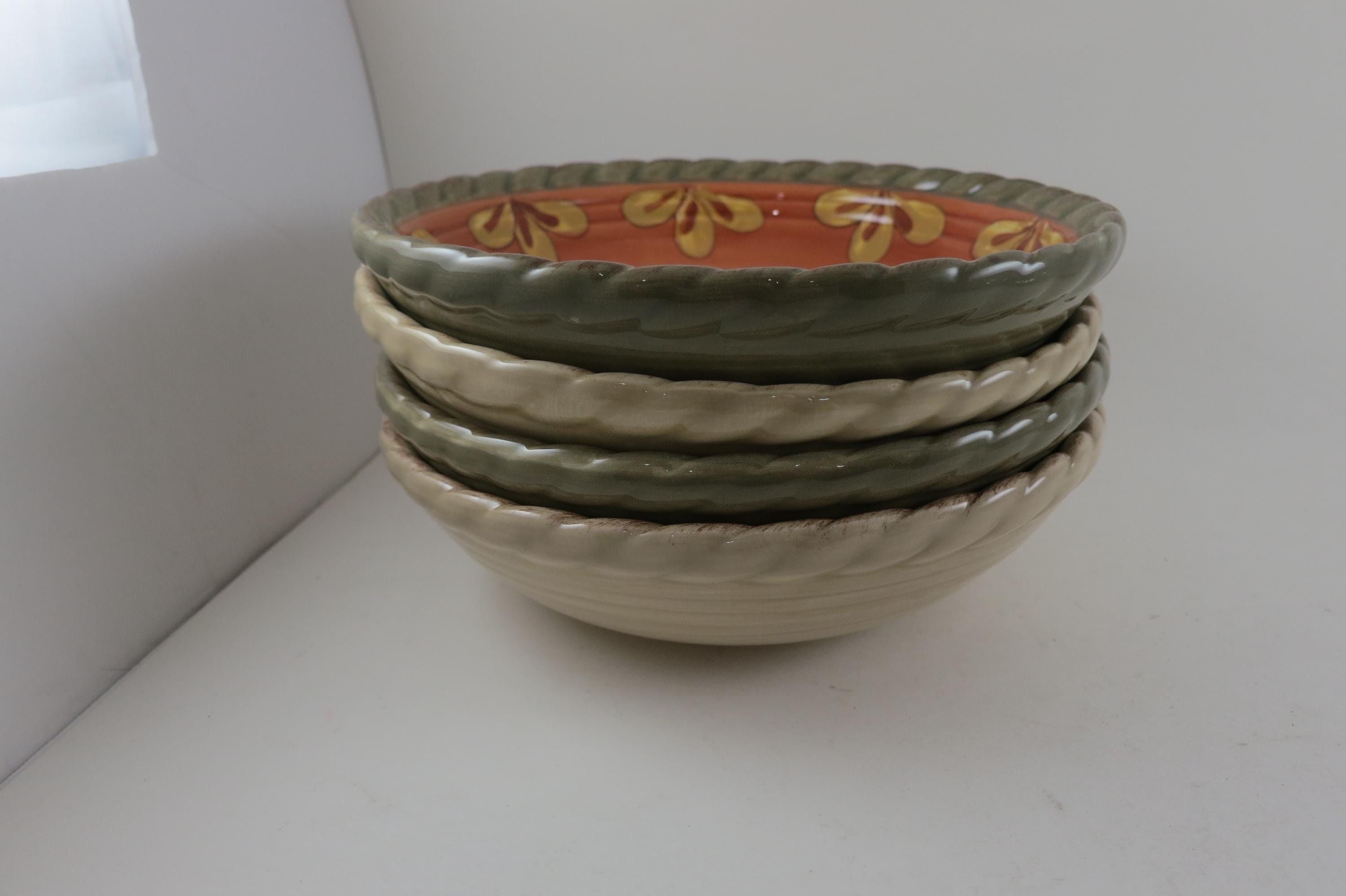 Set of Four Artimino Tuscan Countryside Sienna Sage Earthenware 8 1/4 Inch Soup Bowls Excellent Condition