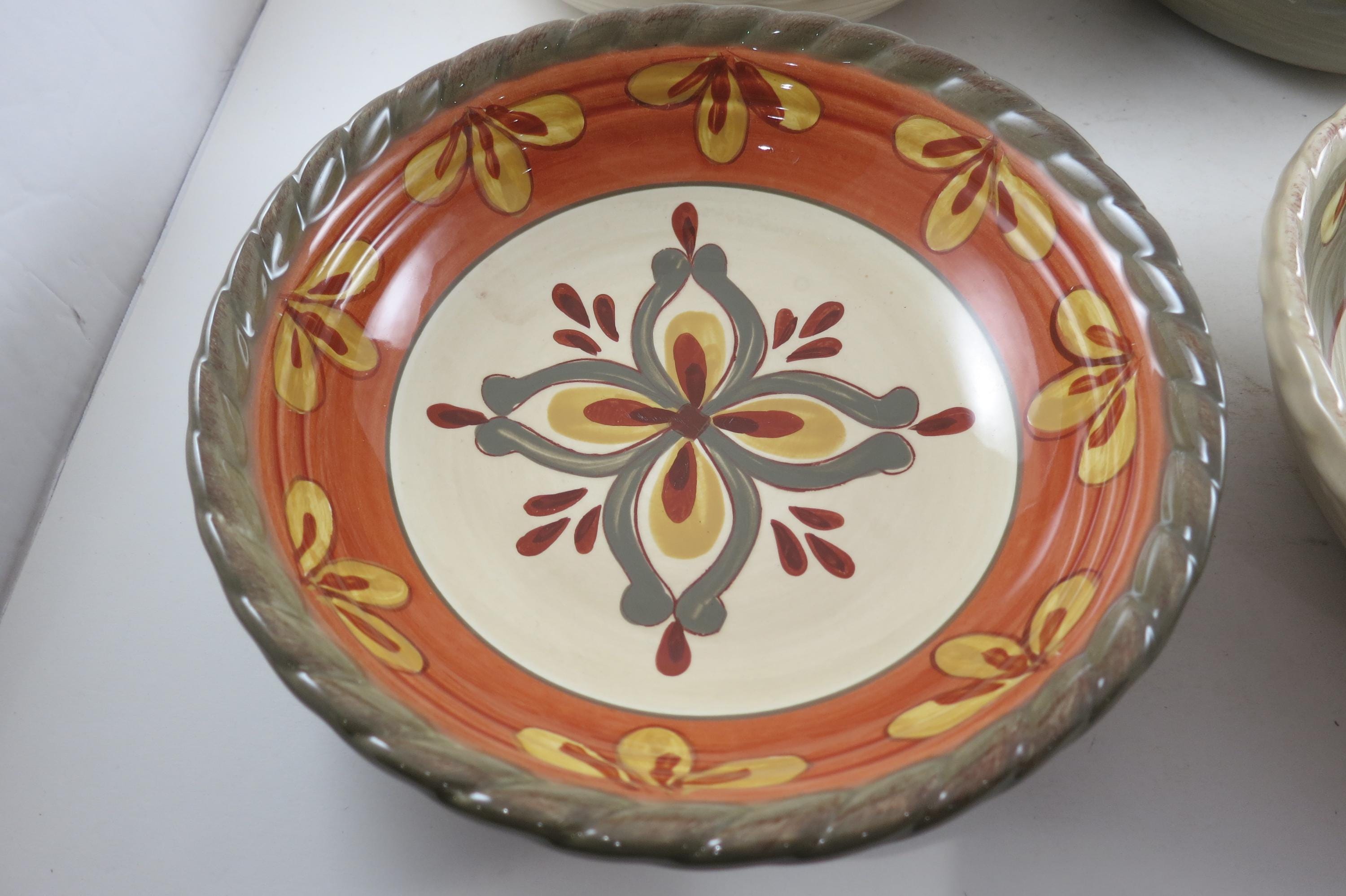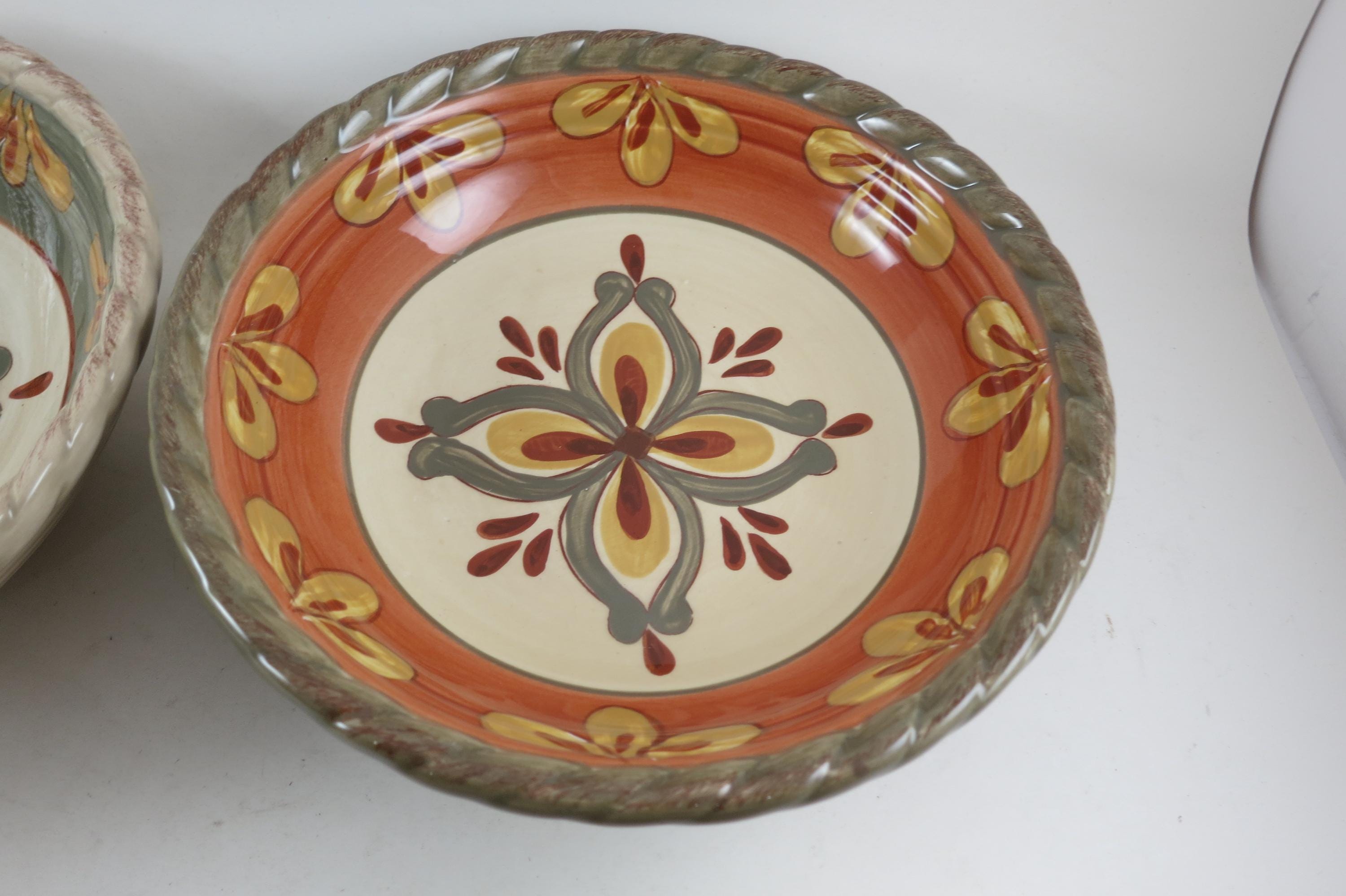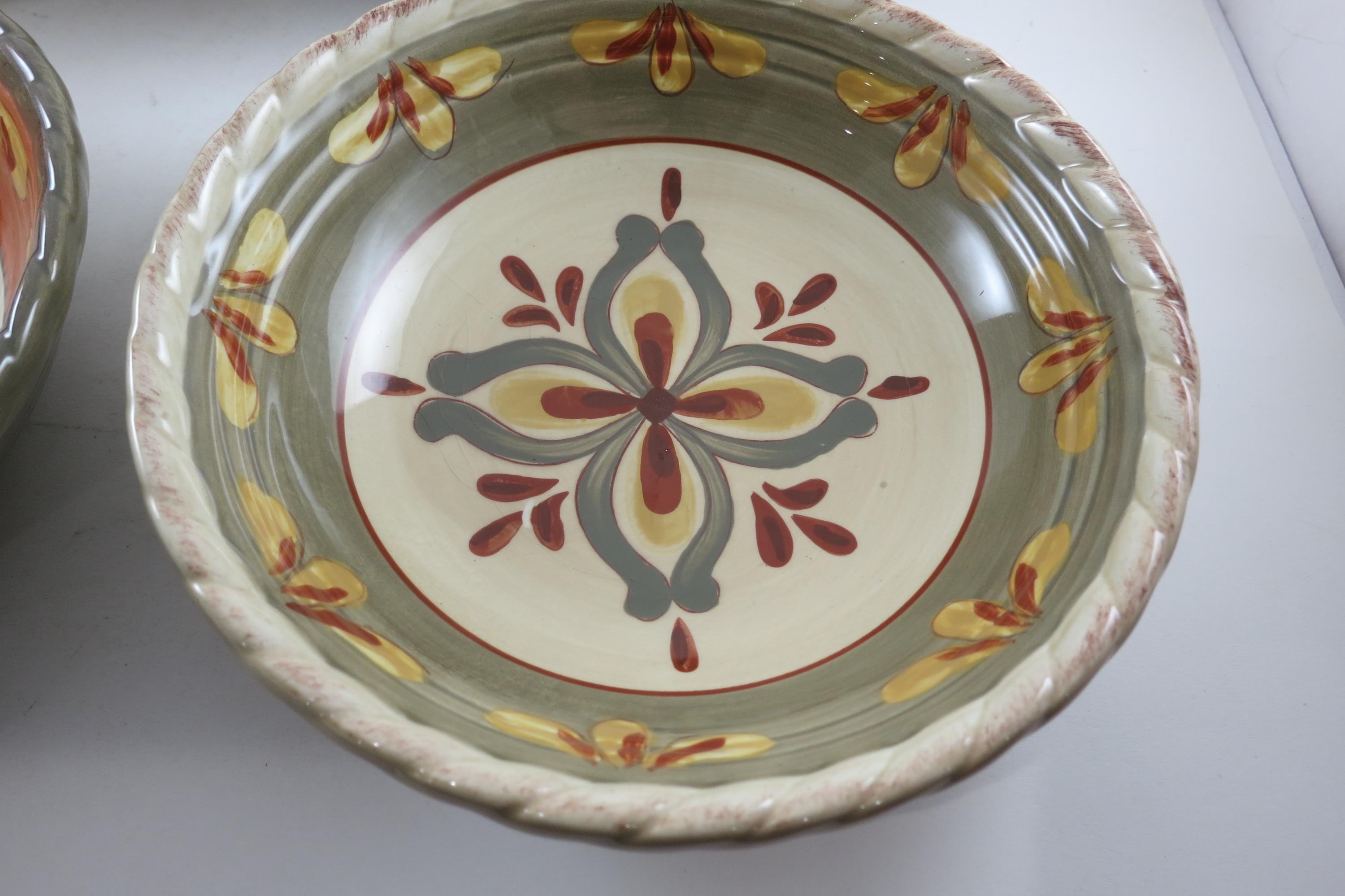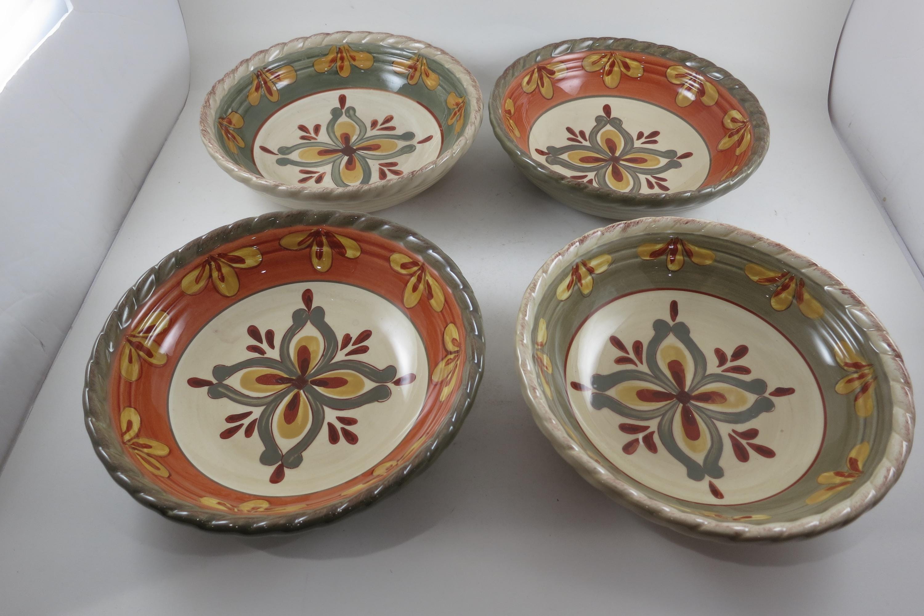 Set of Four Artimino Tuscan Countryside Sienna Sage Earthenware 8 1/4 Inch Soup Bowls Excellent Condition