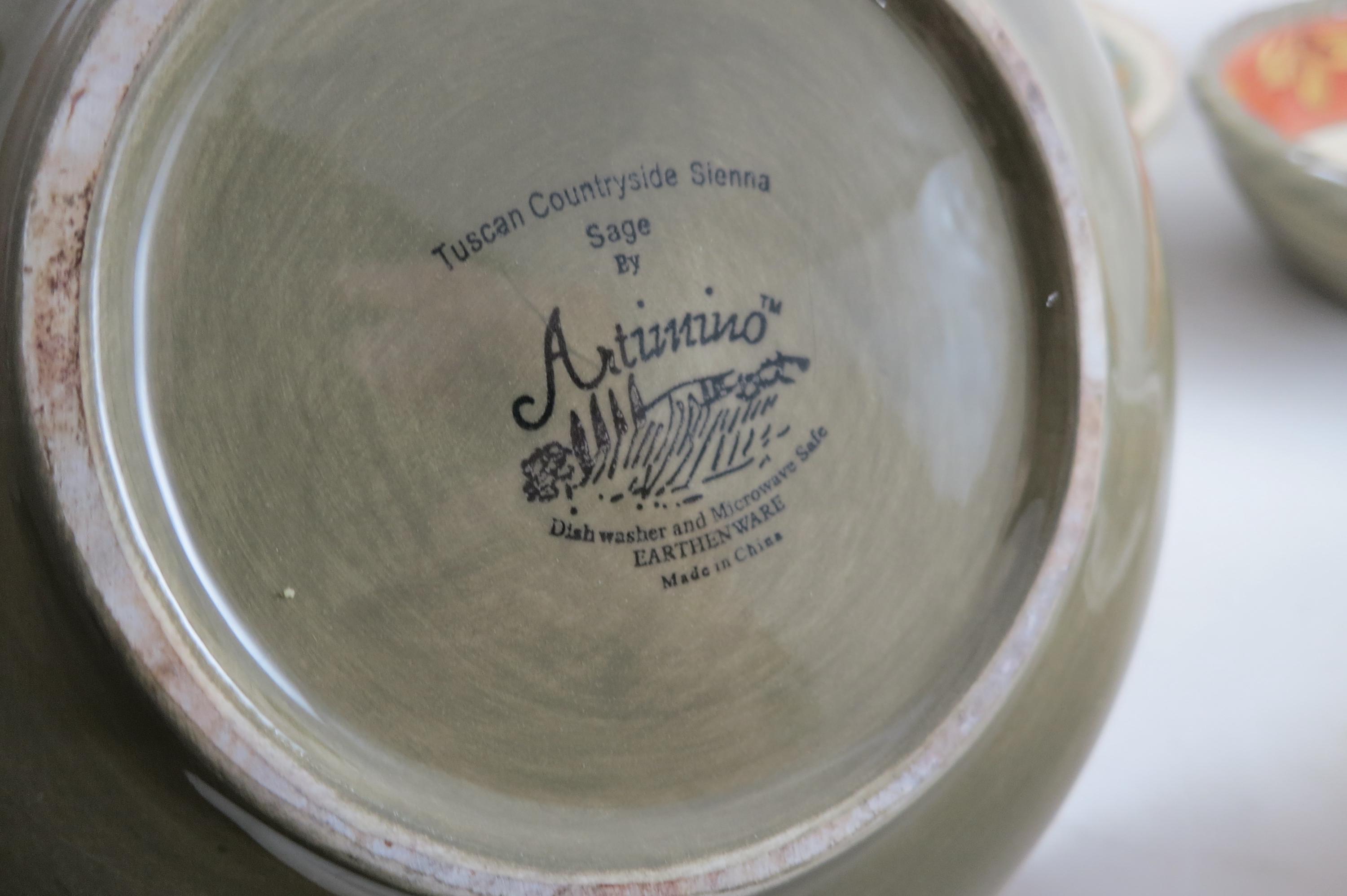 Set of Four Artimino Tuscan Countryside Sienna Sage Earthenware 8 1/4 Inch Soup Bowls Excellent Condition. No chips, cracks or damages. Listing is for a set of four 8 1/4 inch soup bowls in excellent used condition.