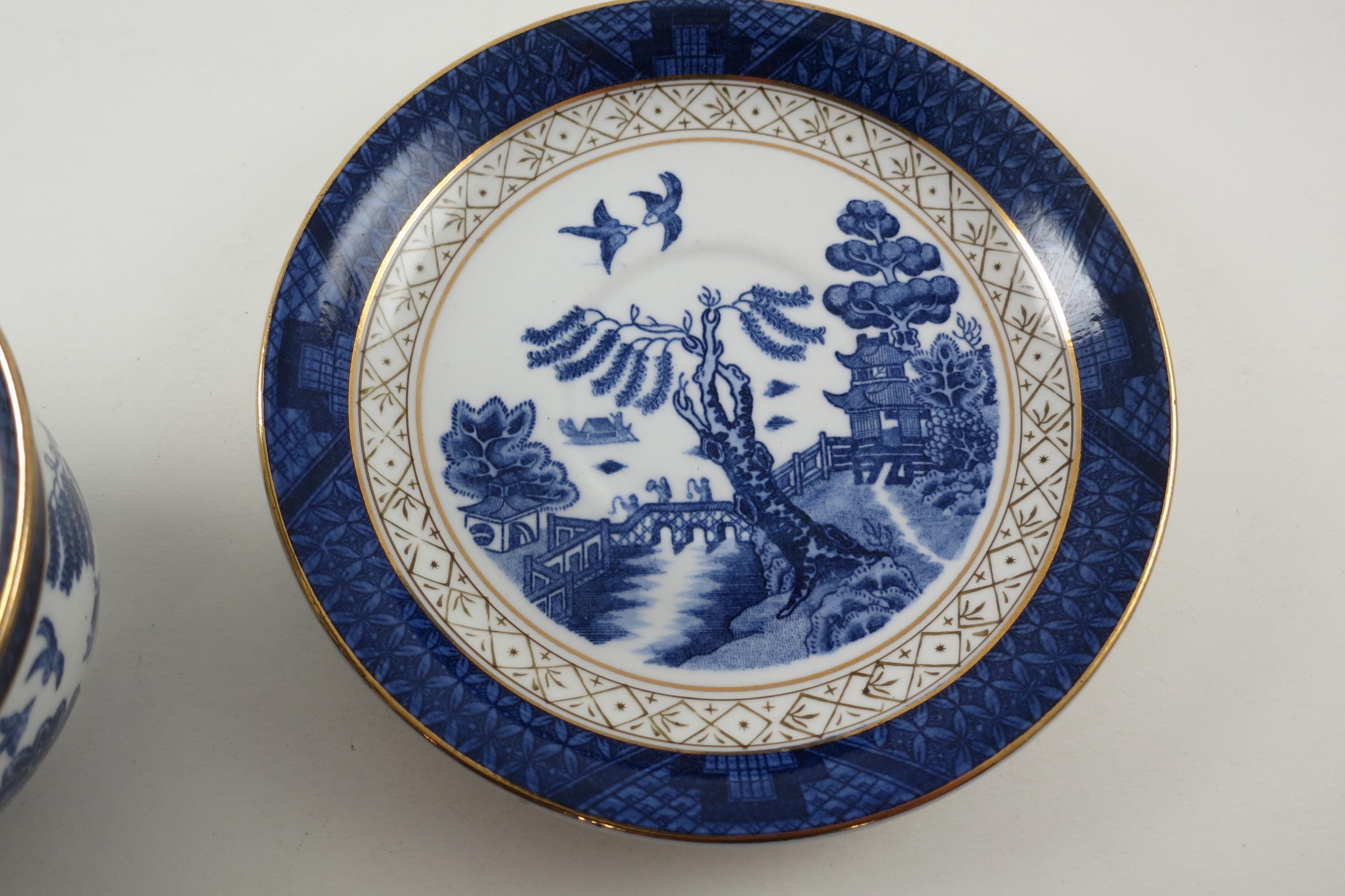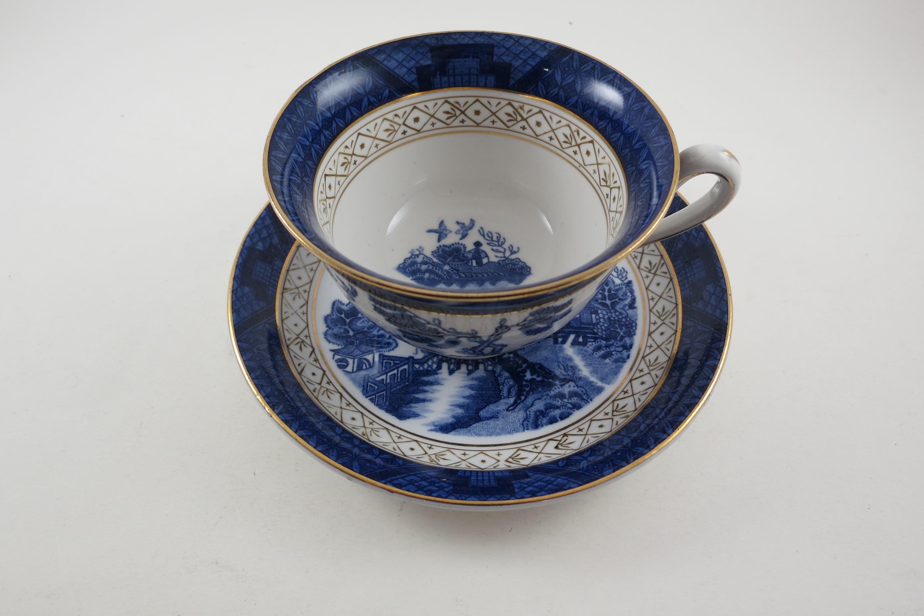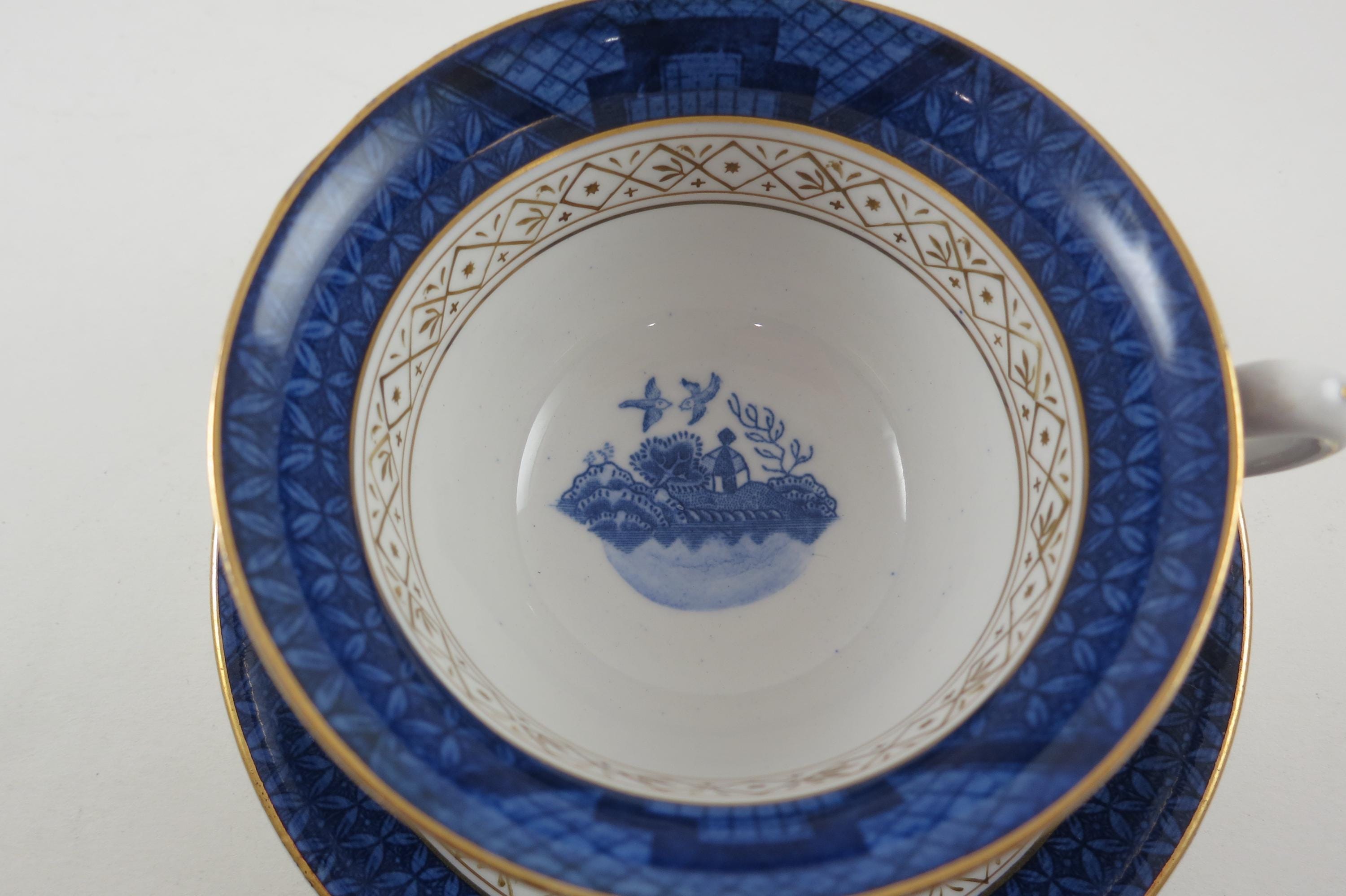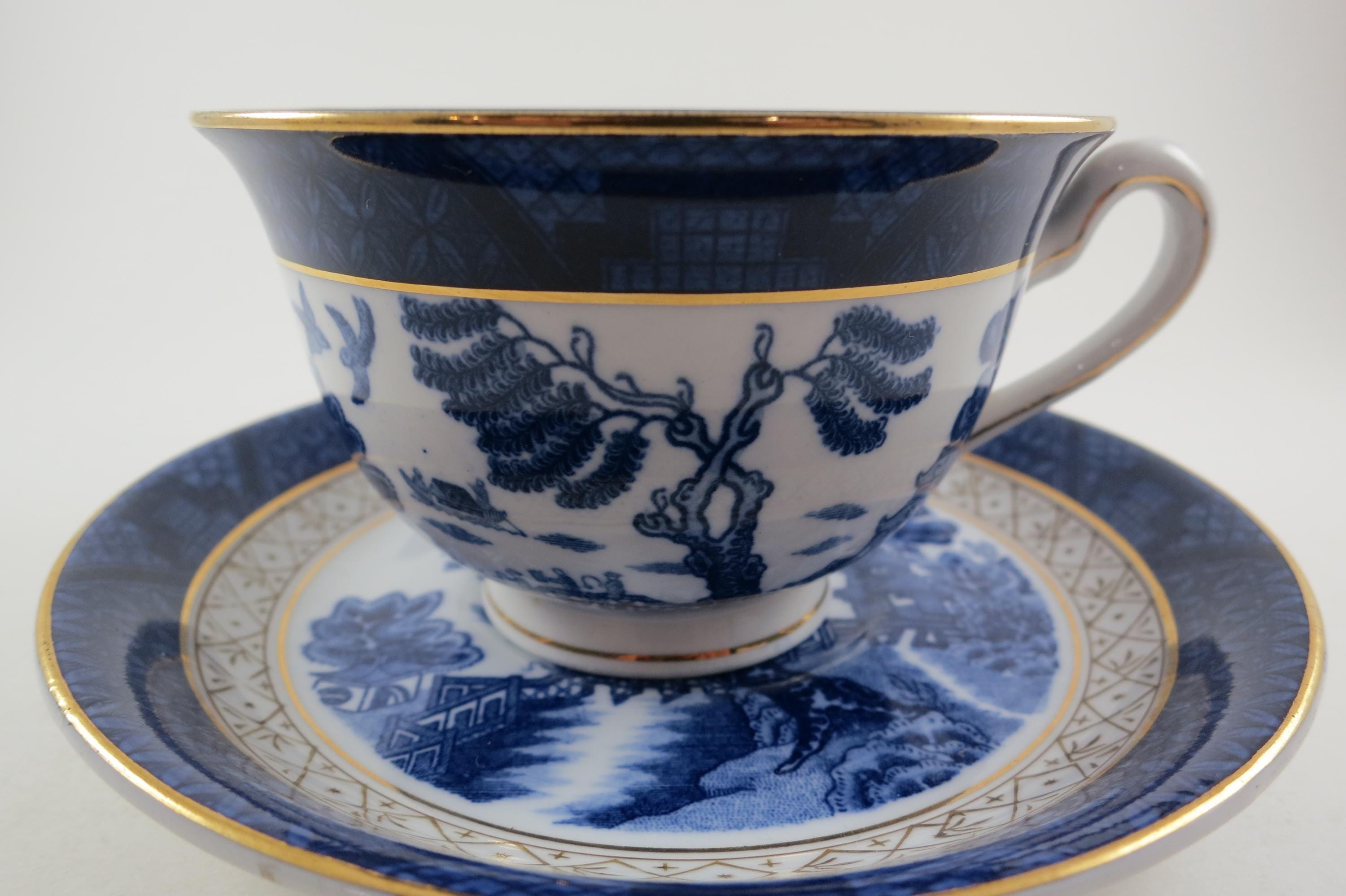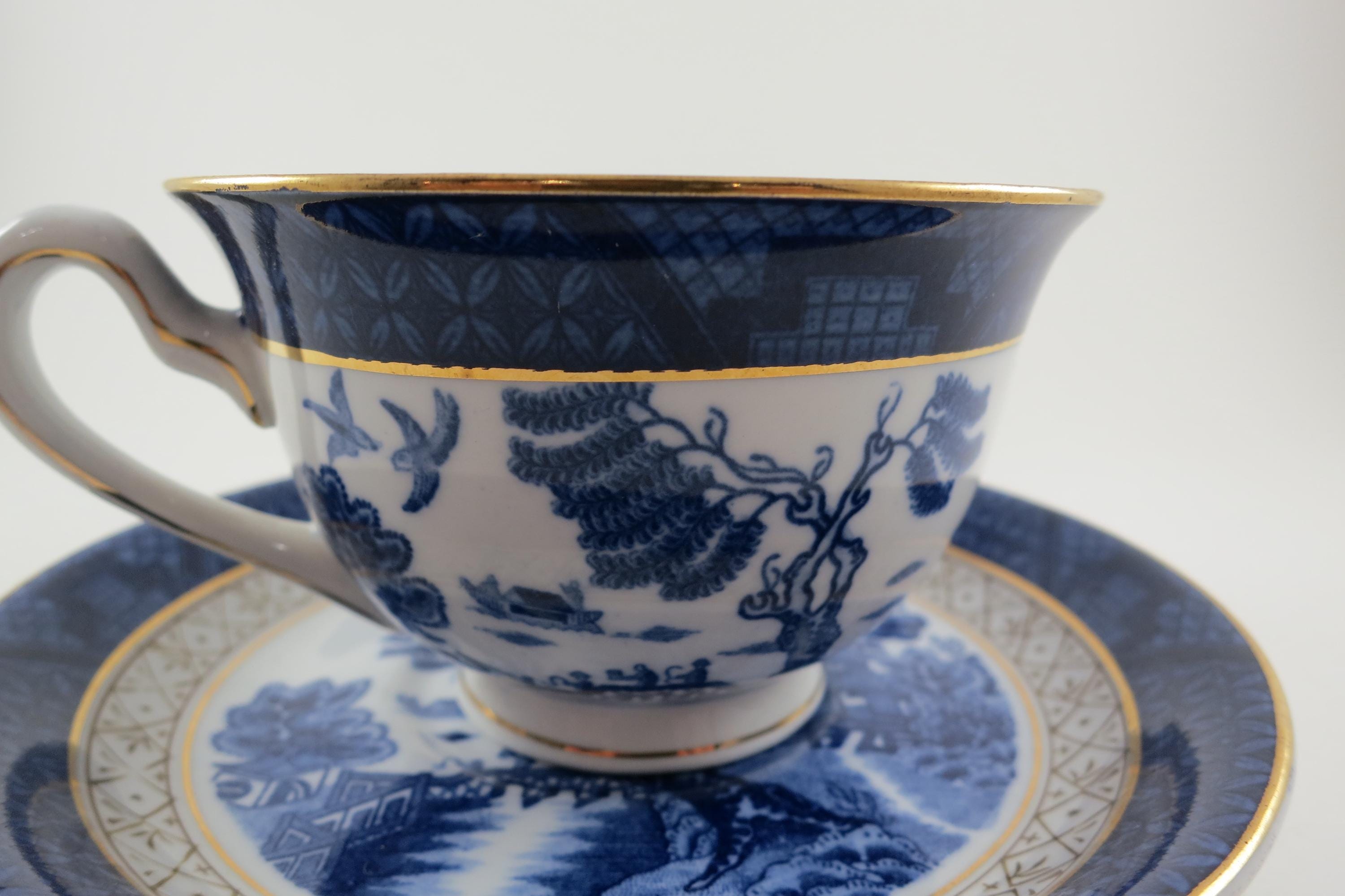 Vintage Ironstone Ware Cobalt Blue Cup and Saucer Set Occupied Japan Pagoda Excellent Condition
