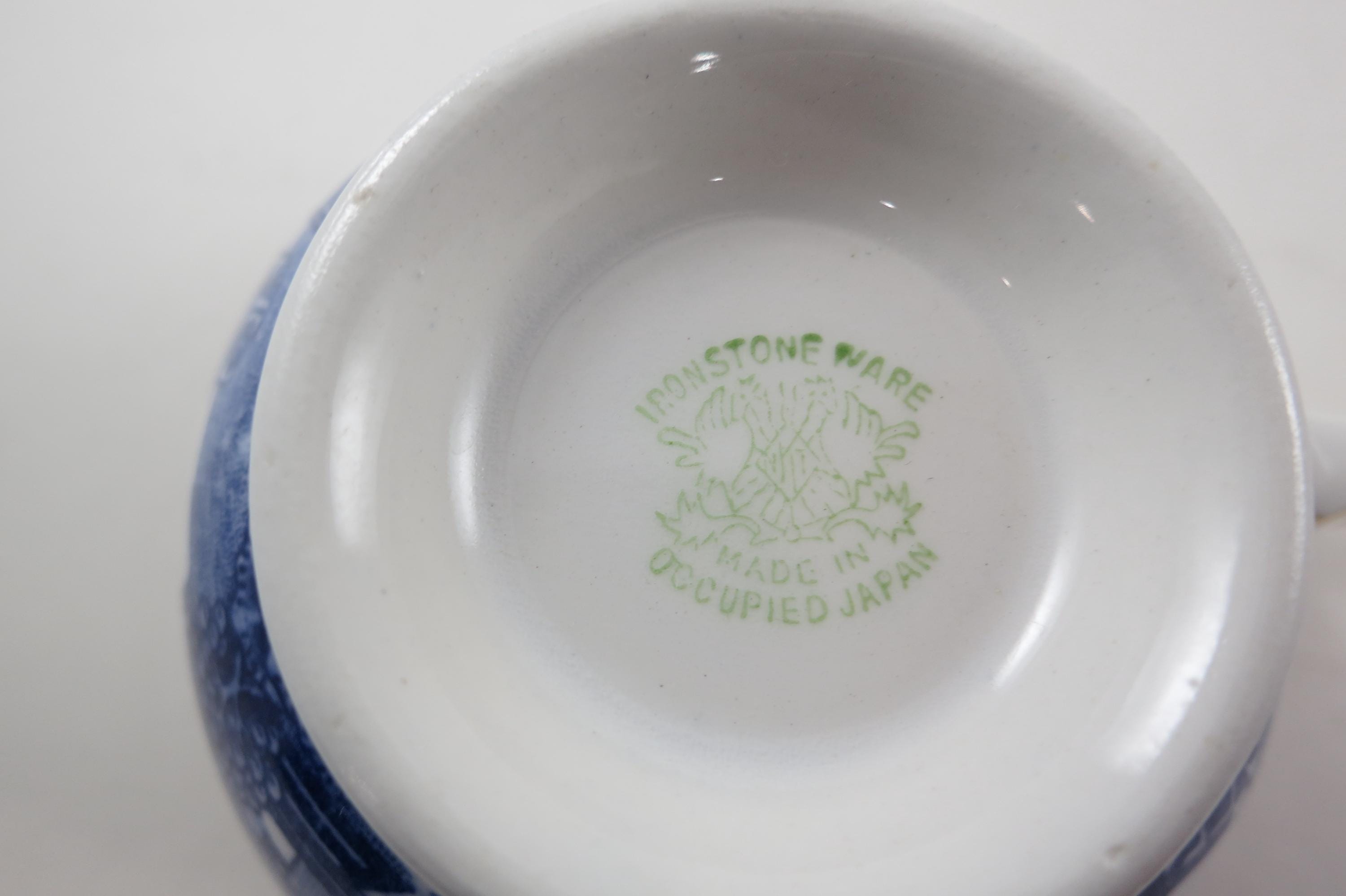 Vintage Ironstone Ware Cobalt Blue Cup and Saucer Set Occupied Japan Pagoda Excellent Condition. No damages, perfect addition to any collection.