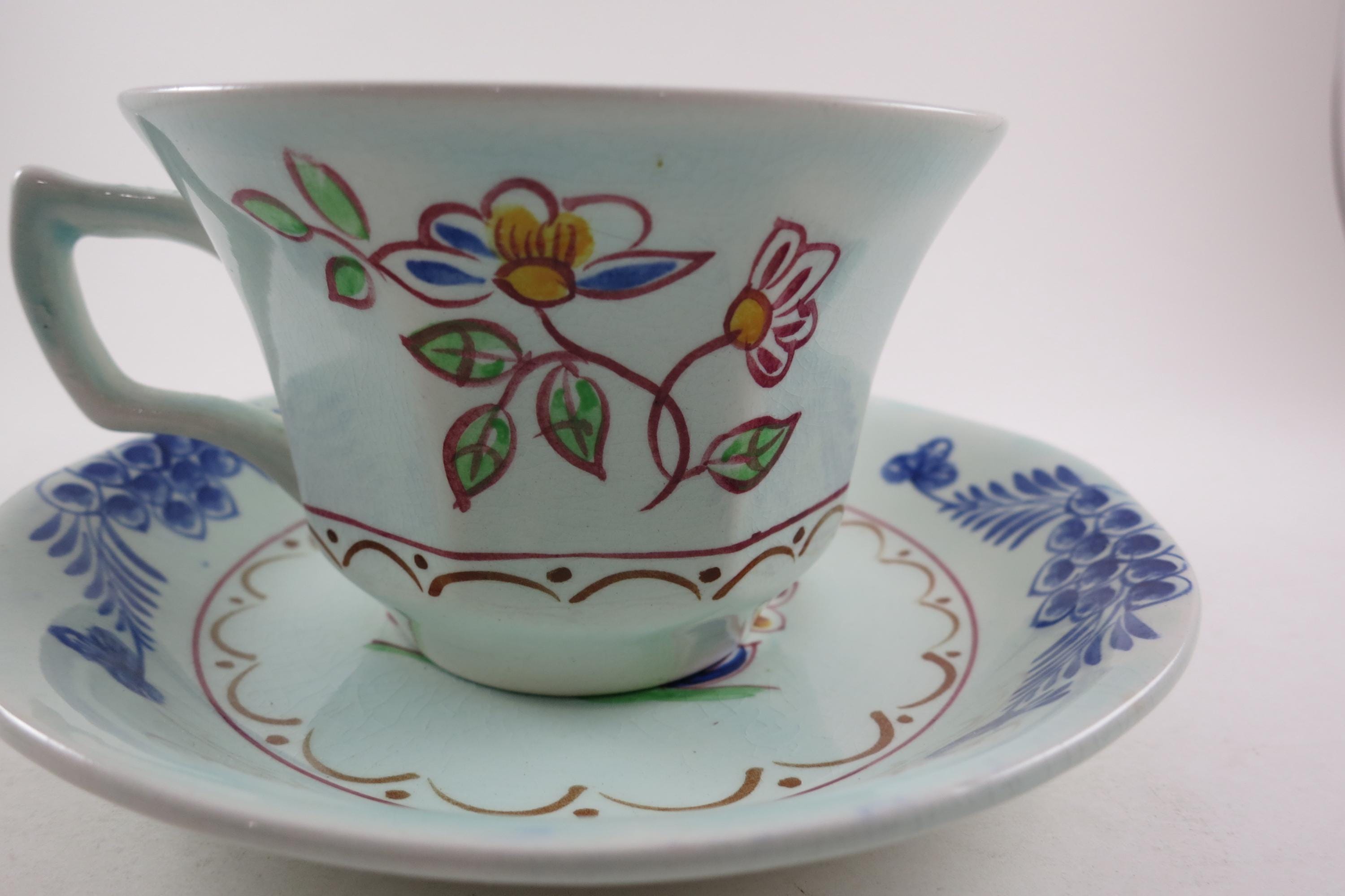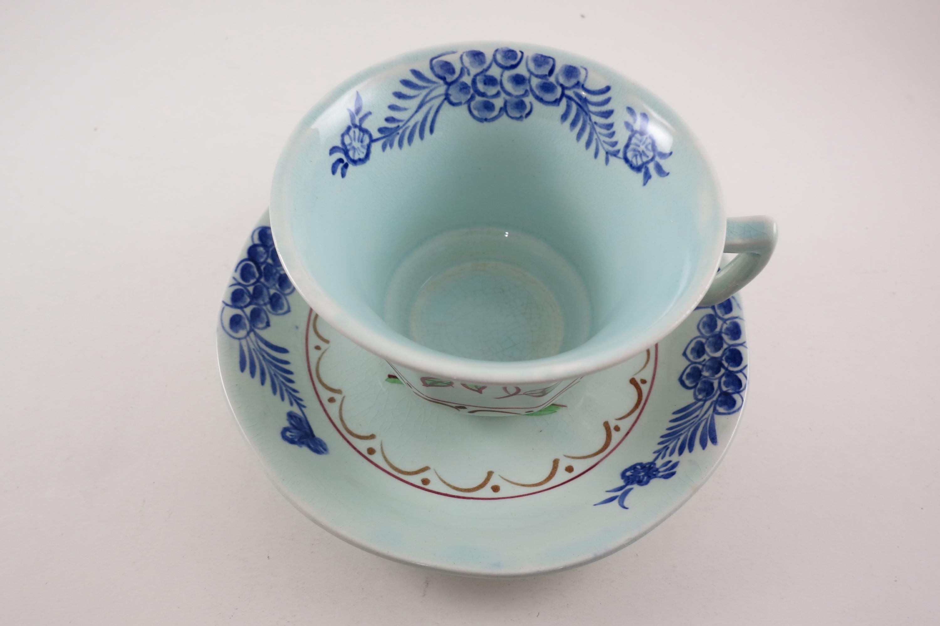 Vintage Adams China Calyx Ware 2413 Cup and Saucer Set Hand Painted Blue
