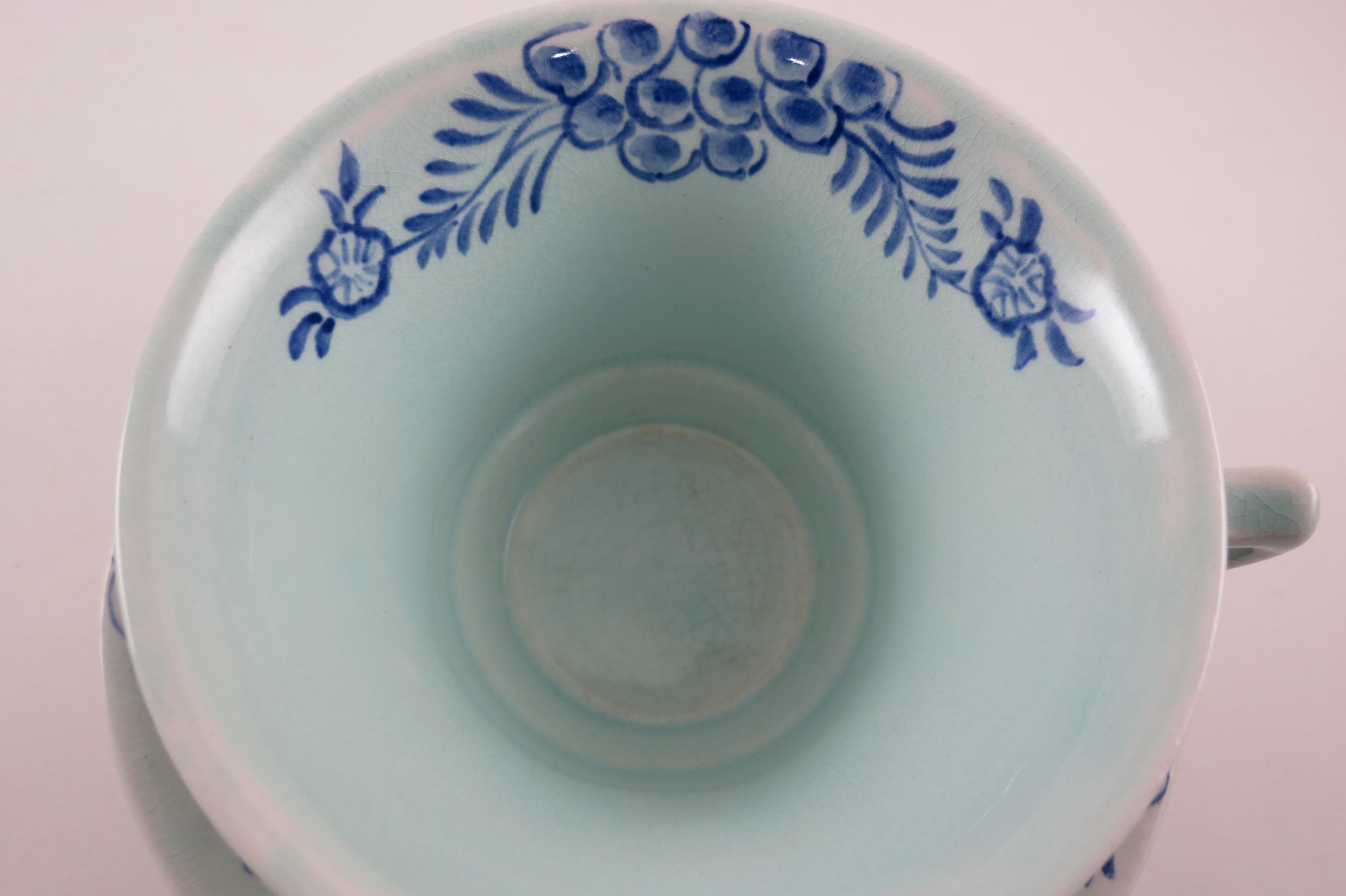 Vintage Adams China Calyx Ware 2413 Cup and Saucer Set Hand Painted Blue. Beautiful condition with no damages.