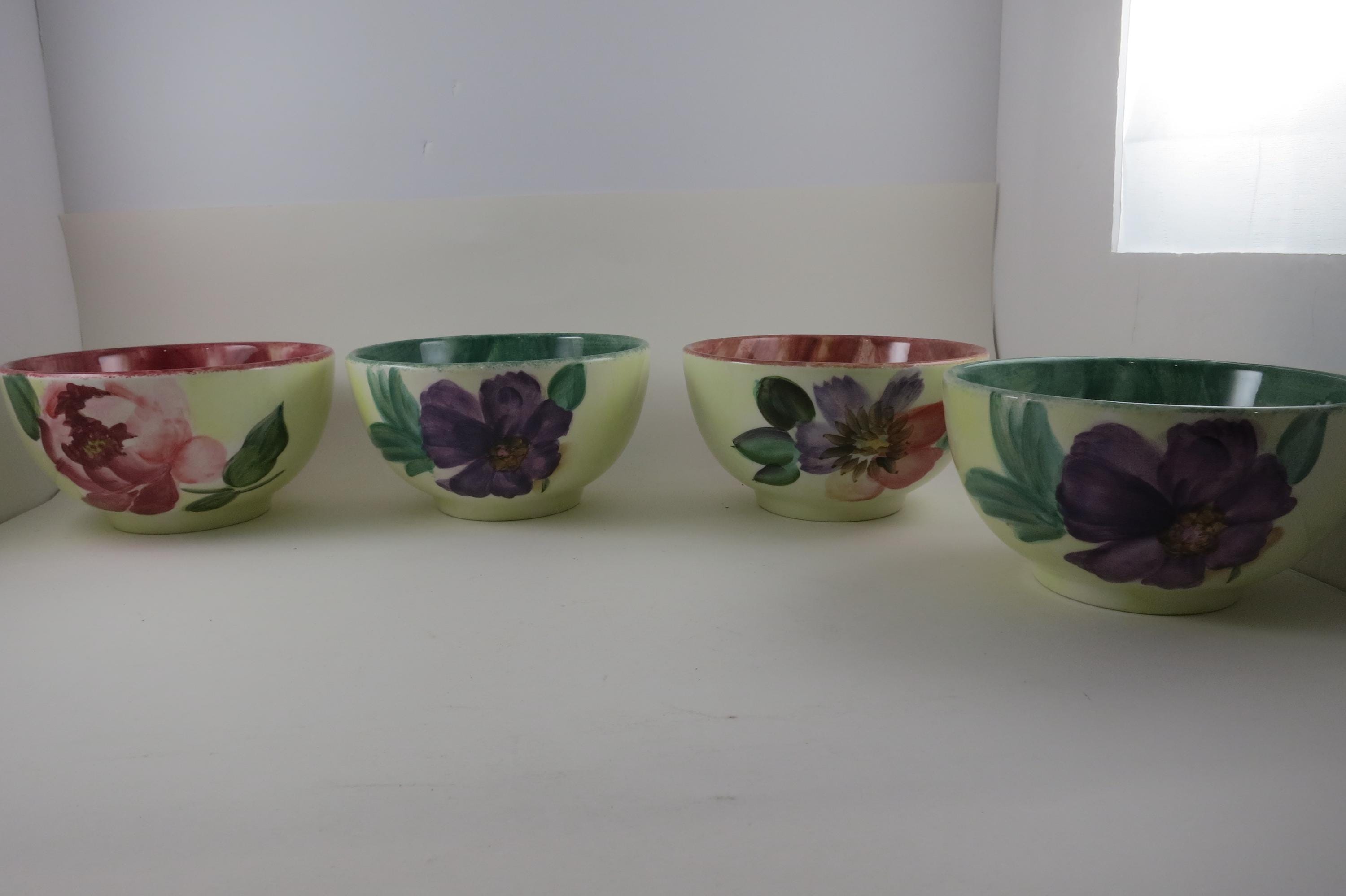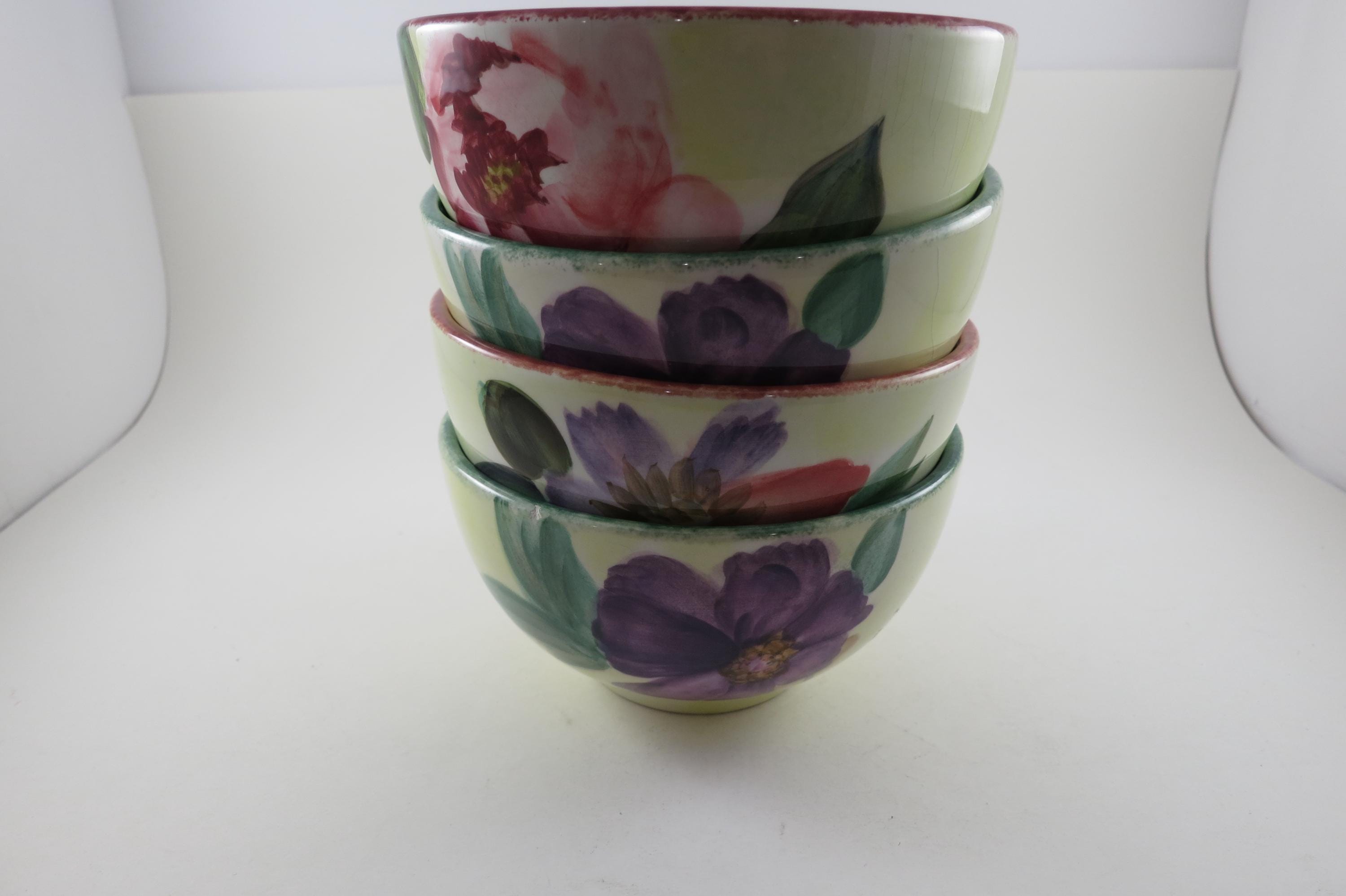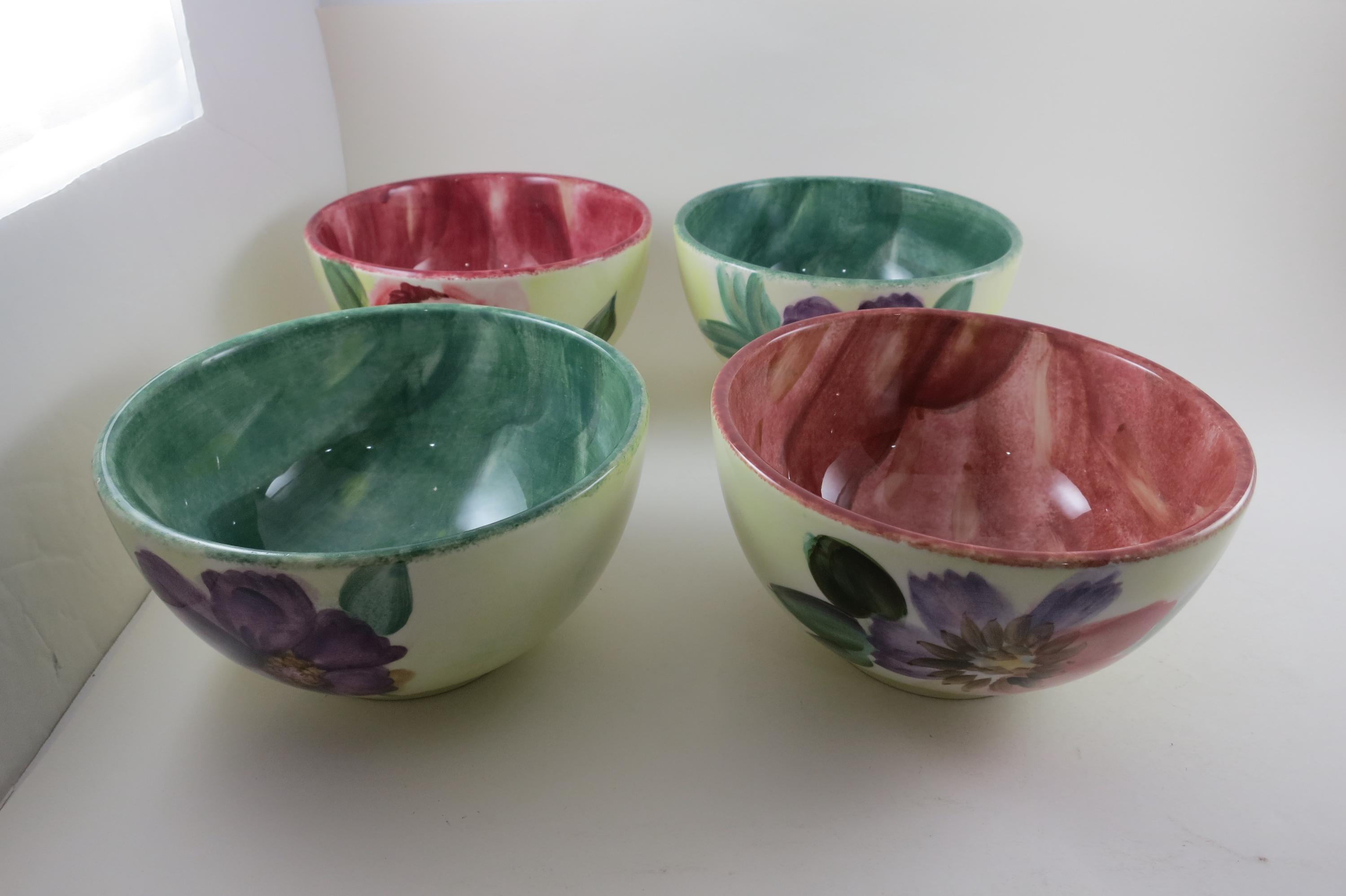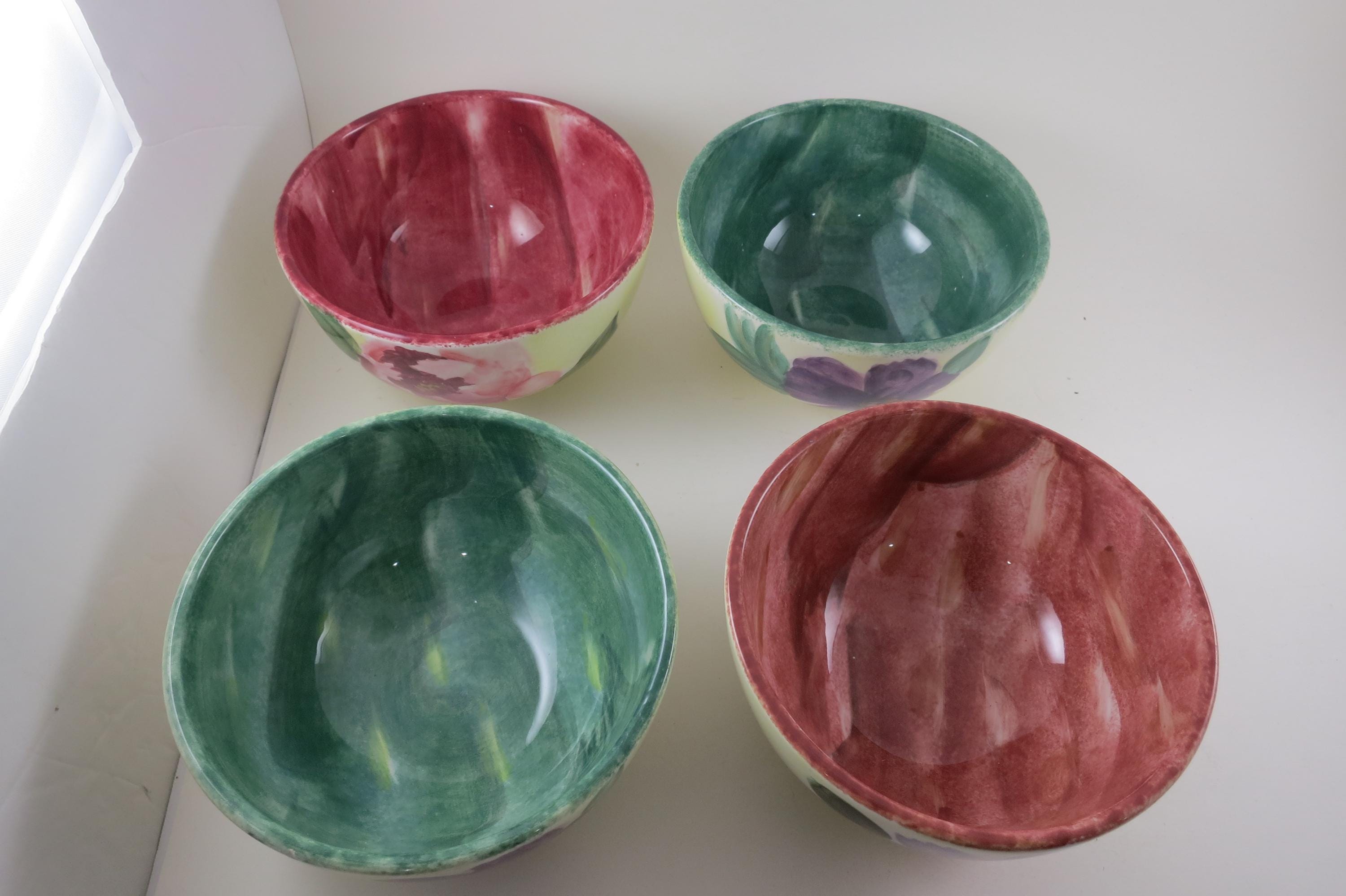 Set of Four Pfaltzgraff Flower Market 6 Inch Soup Bowls 2 Red 2 Green Excellent Used Condition
