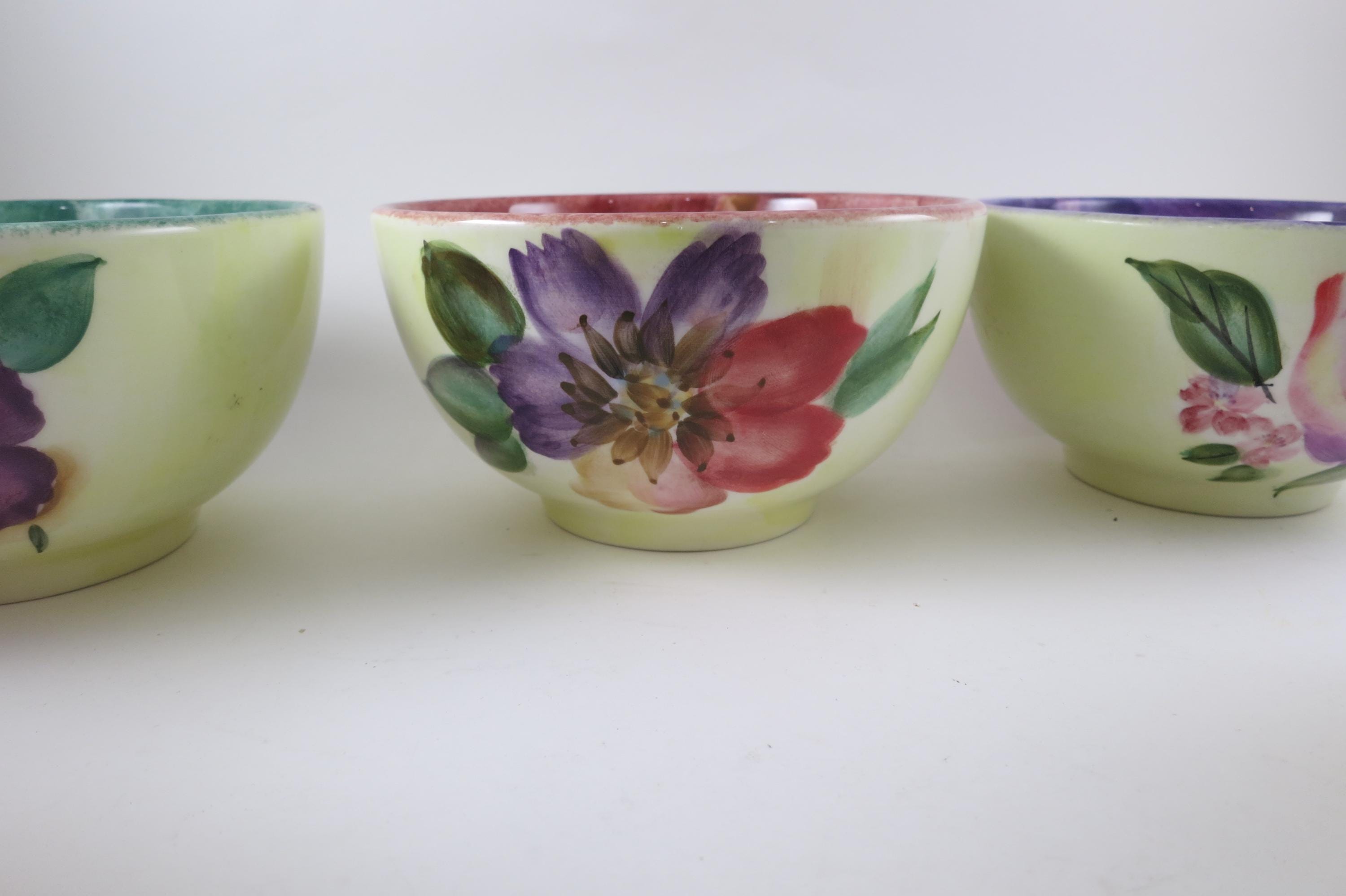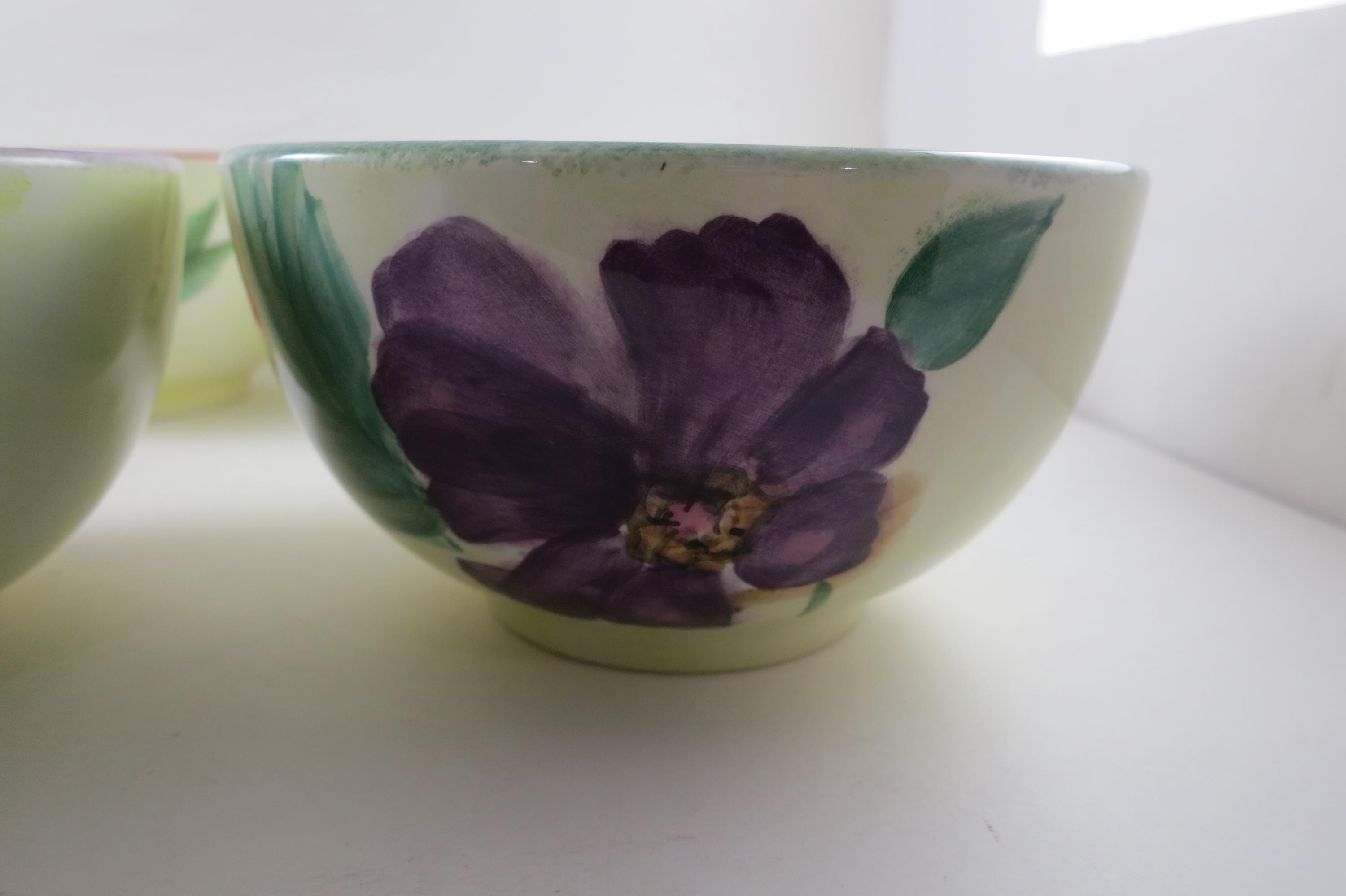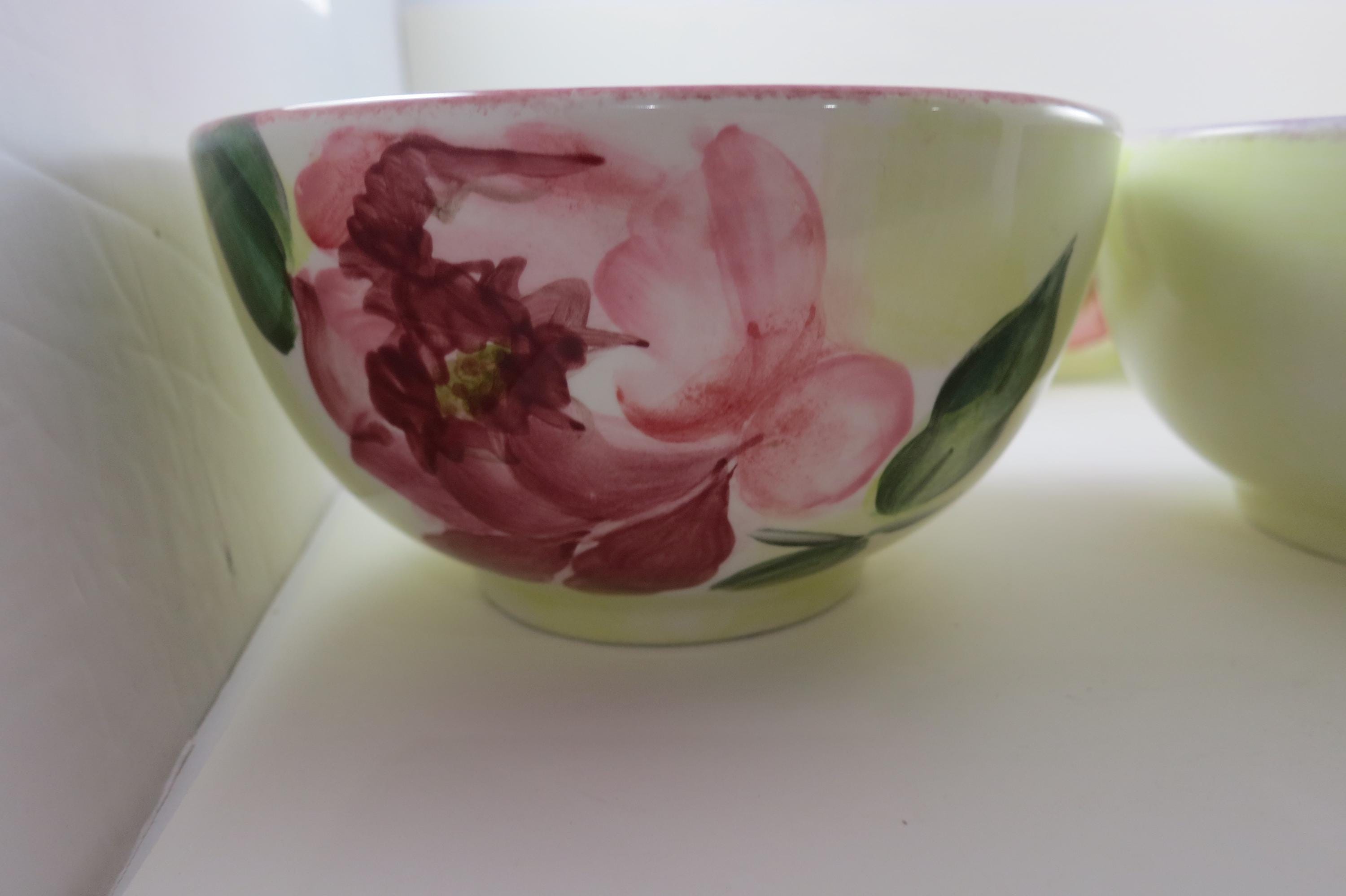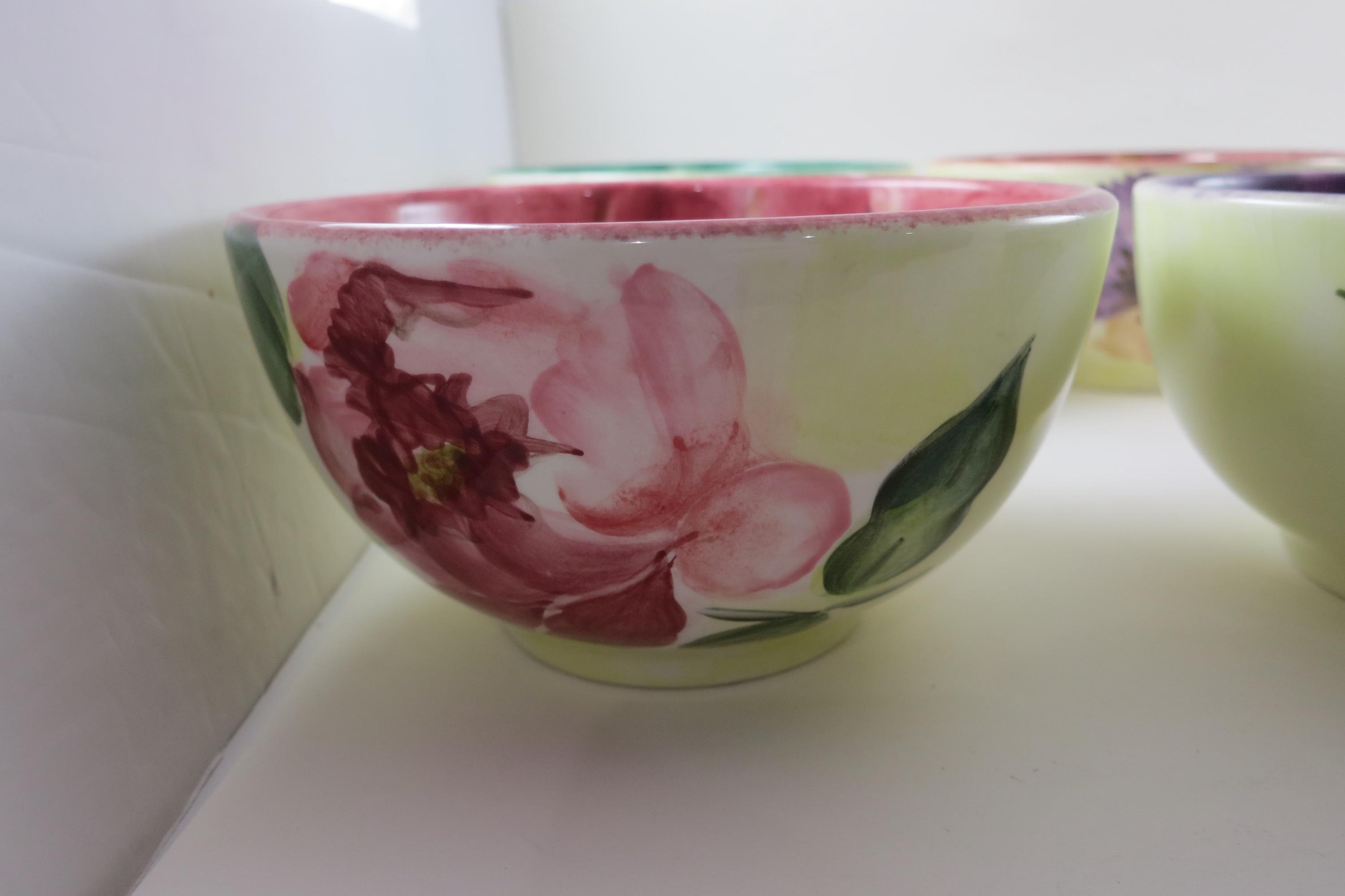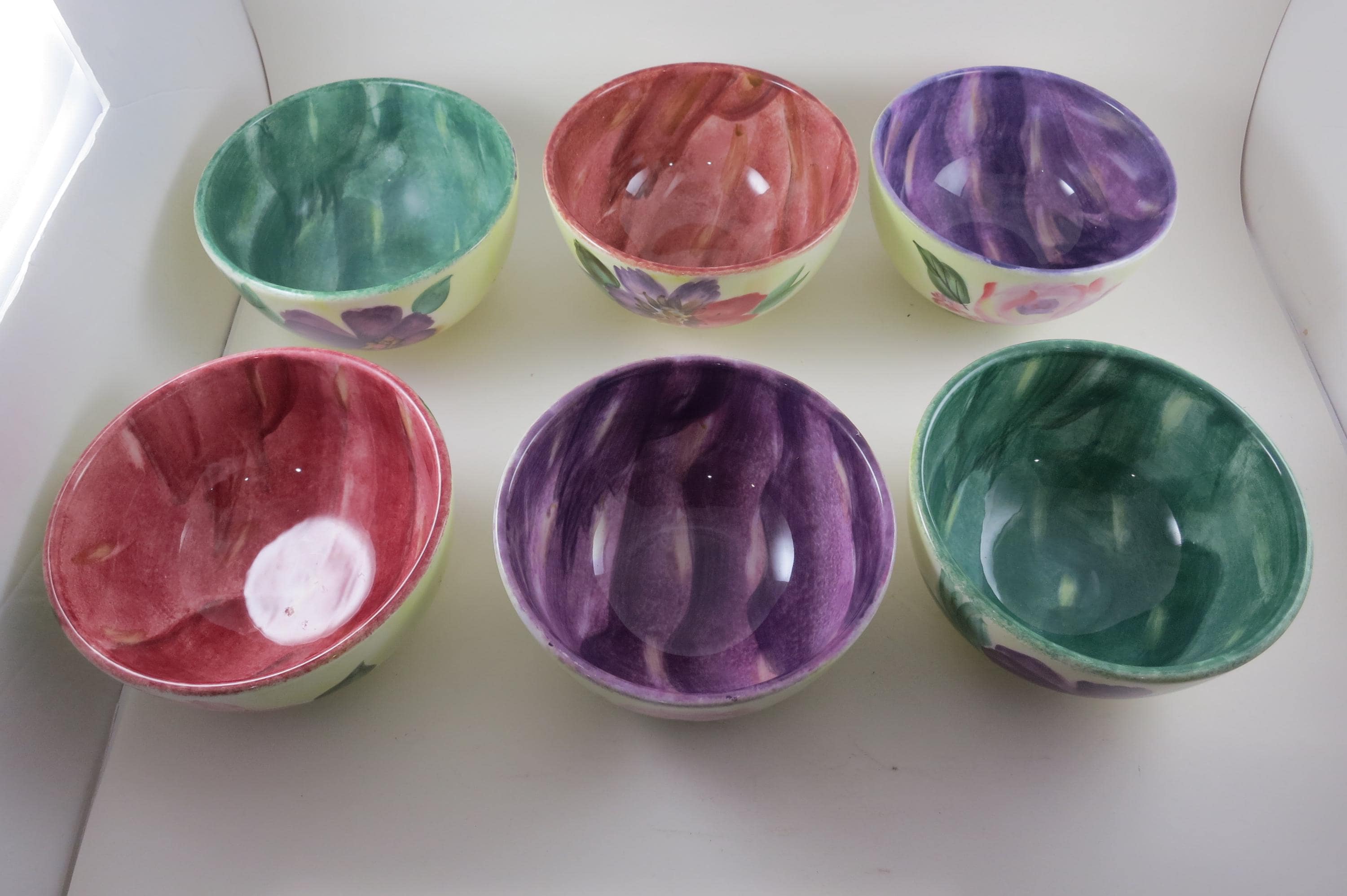 Set of Six Pfaltzgraff Flower Market 6 Inch Soup Bowls 2 Red 2 Green 2 Purple Excellent Used Condition