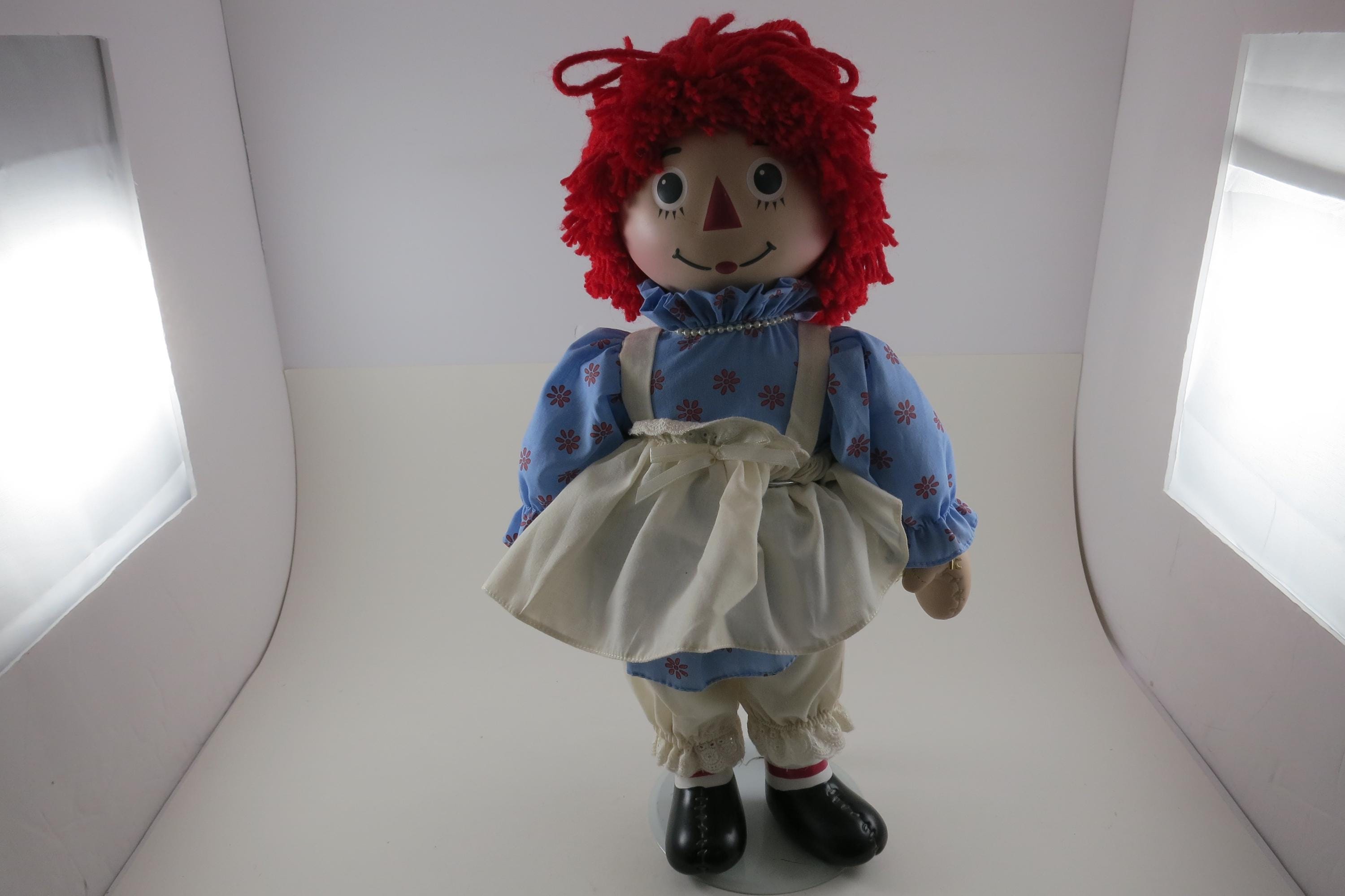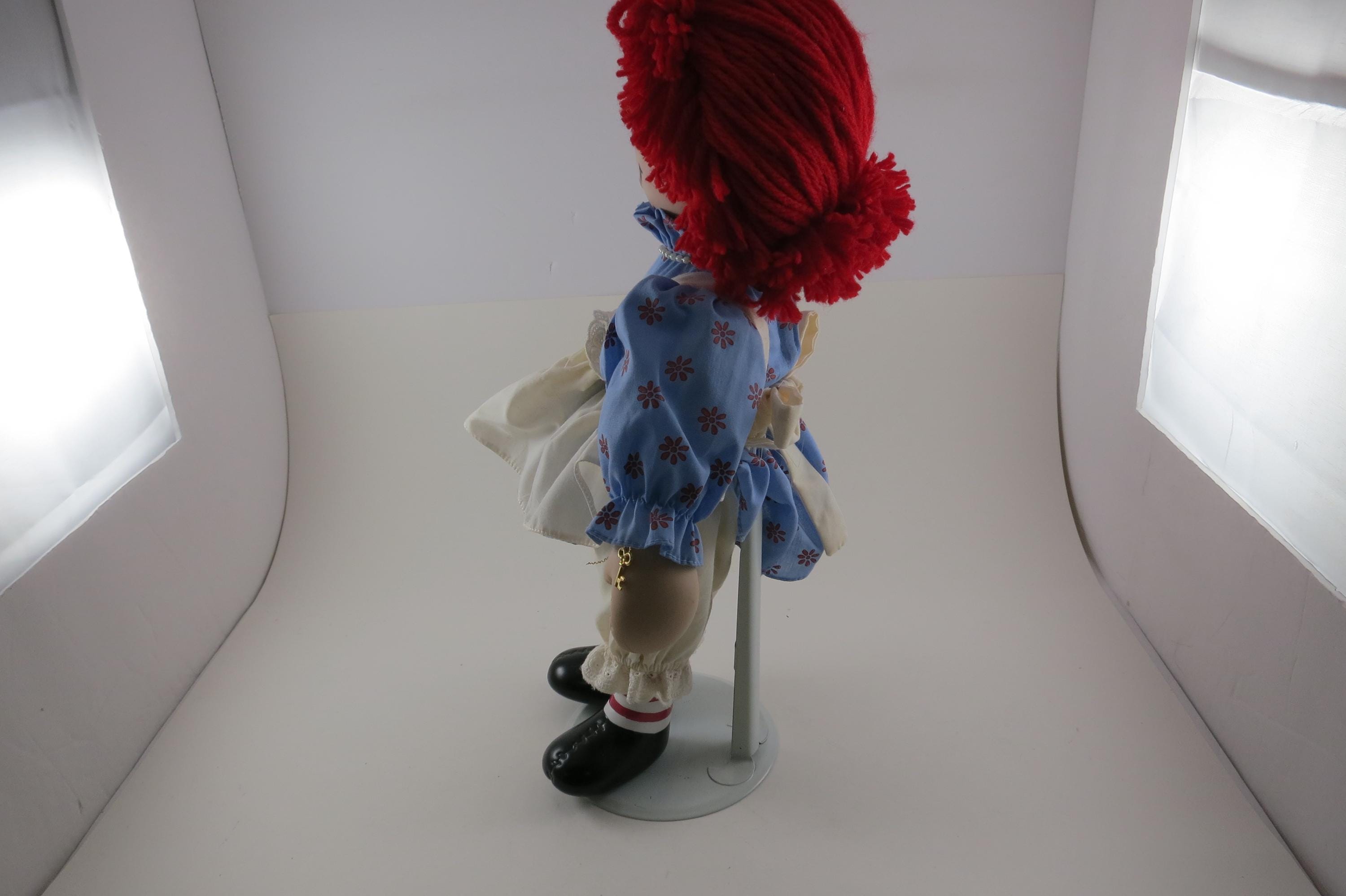 2004 Brass Key Brand 15 Inch Raggedy Ann Collector Doll with Key and Stand Excellent Condition