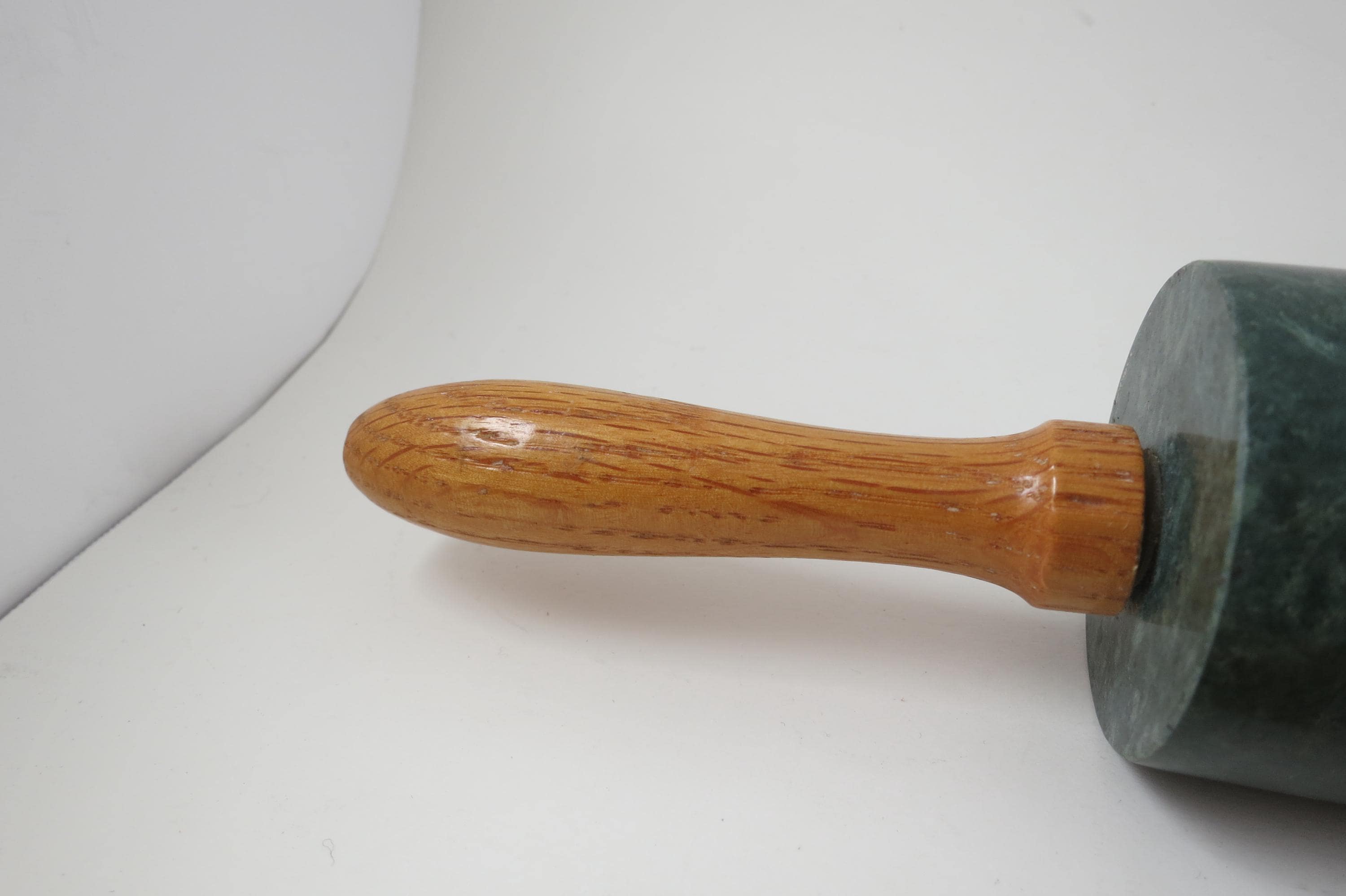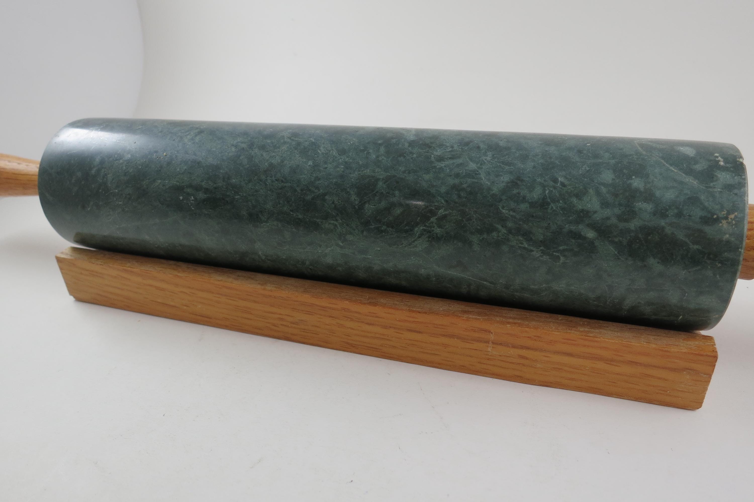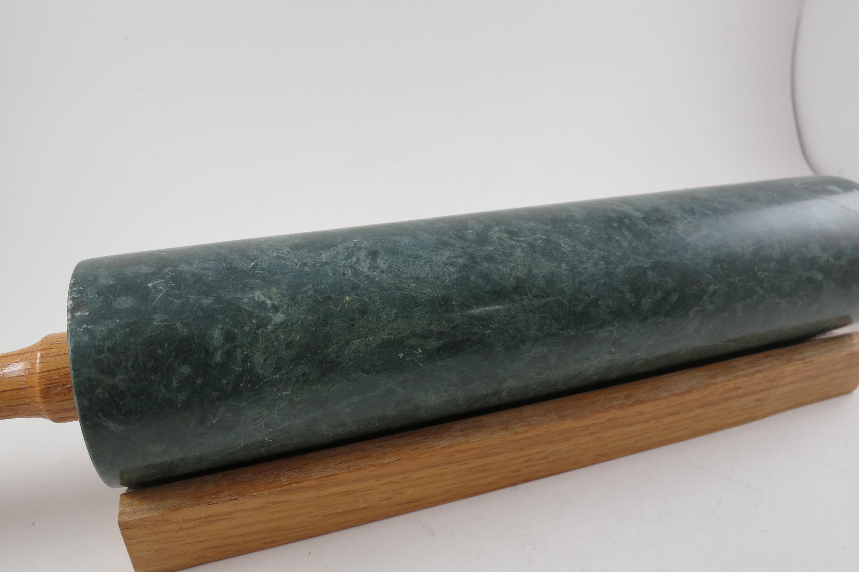 Antique Wooden Green Marble Rolling Pin Excellent Condition with Wooden Stand