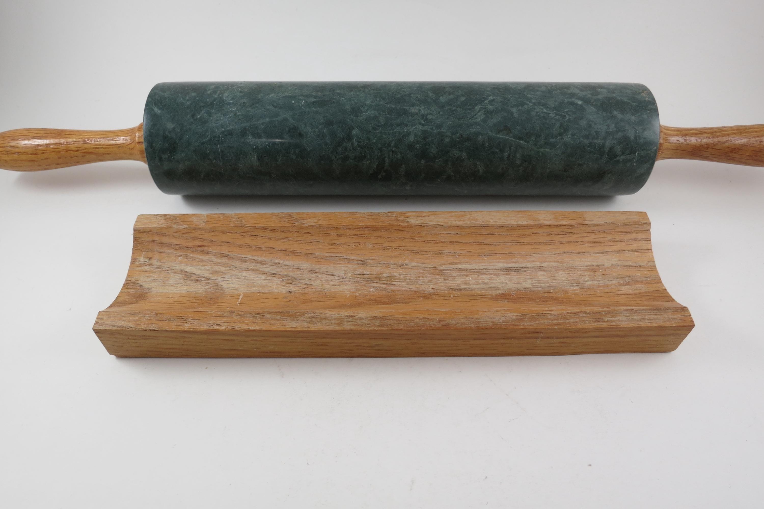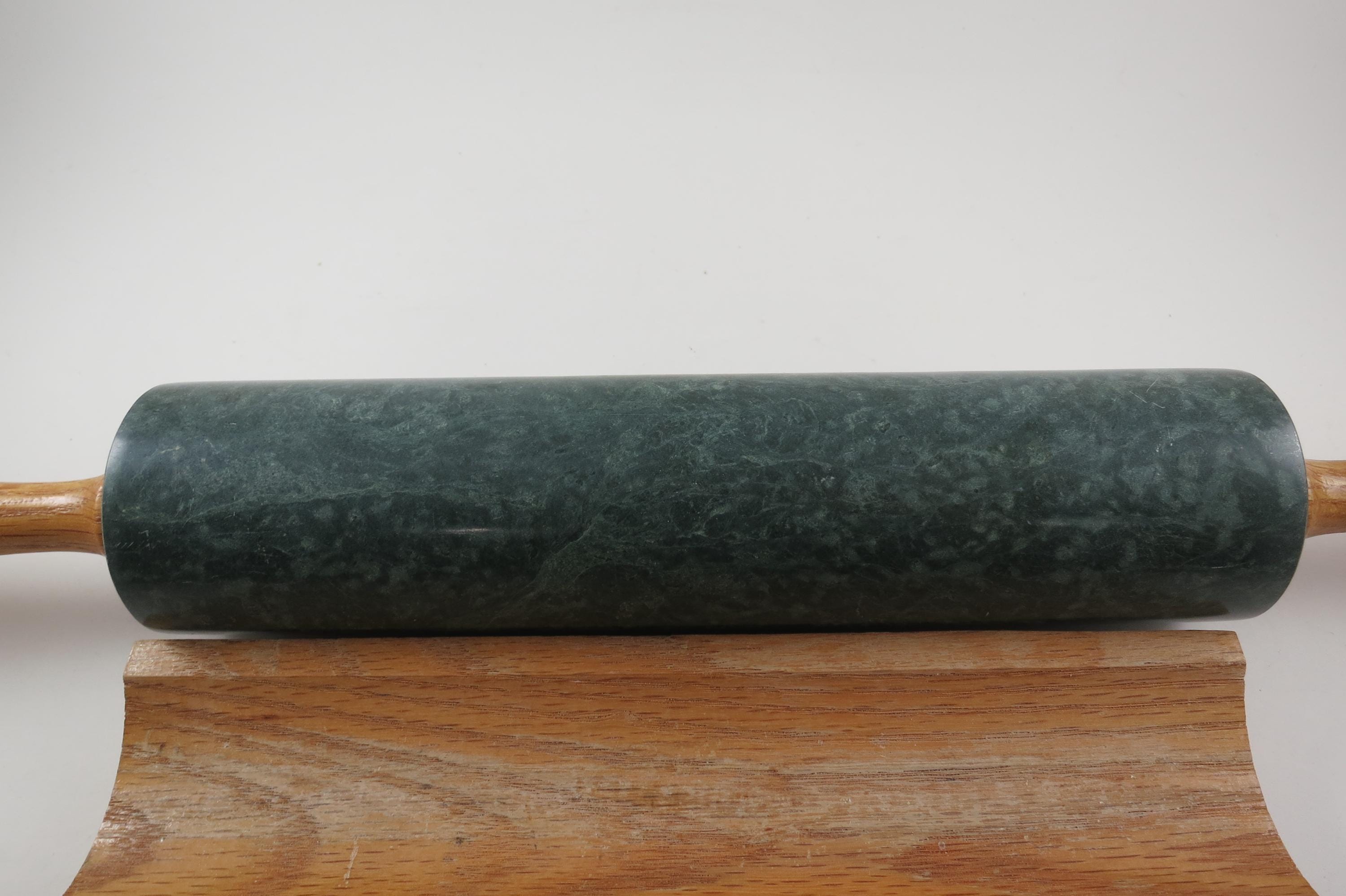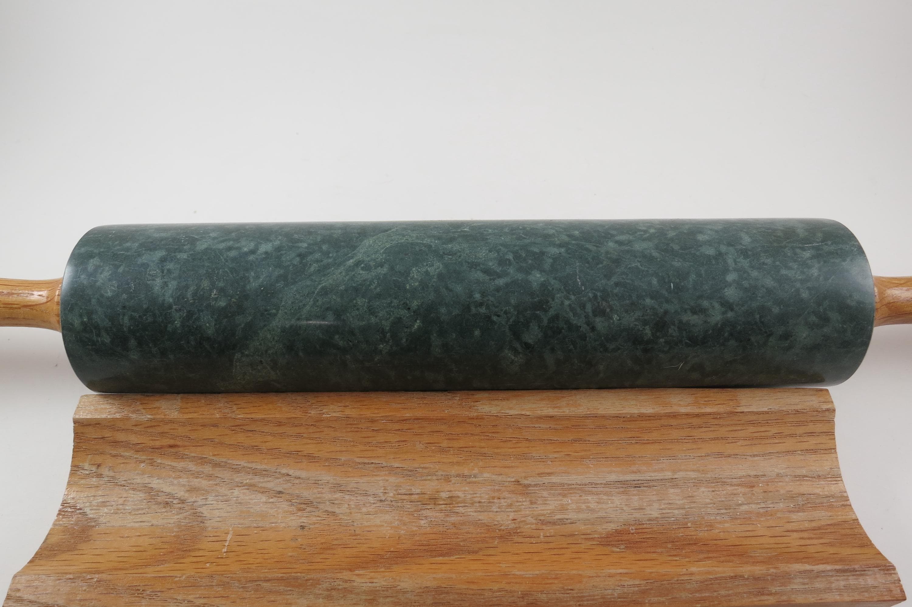 Antique Wooden Green Marble Rolling Pin Excellent Condition with Wooden Stand