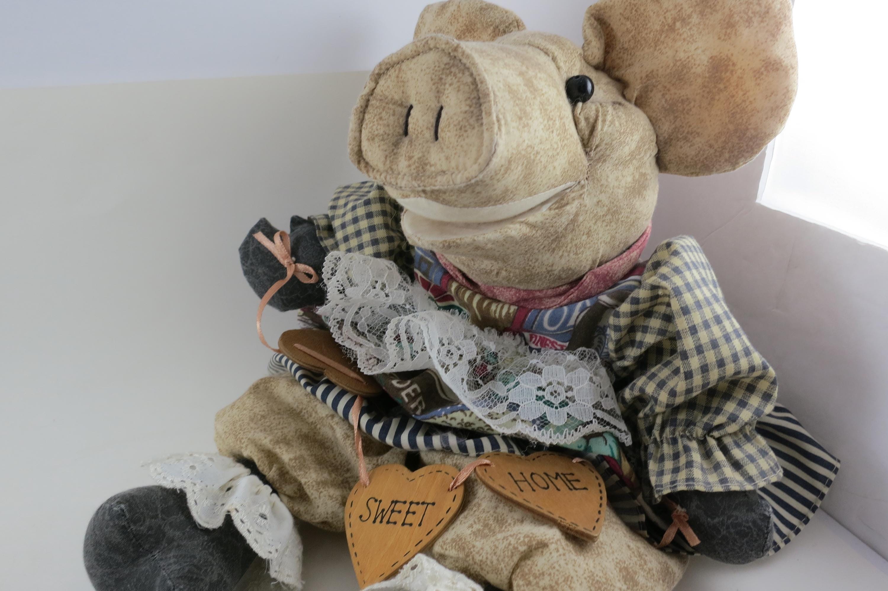 Vintage Pig Sitter Stuffed Animal Plush Toy Musical 8+ Nursery Rhymes Country Decor Oinks Excellent Condition