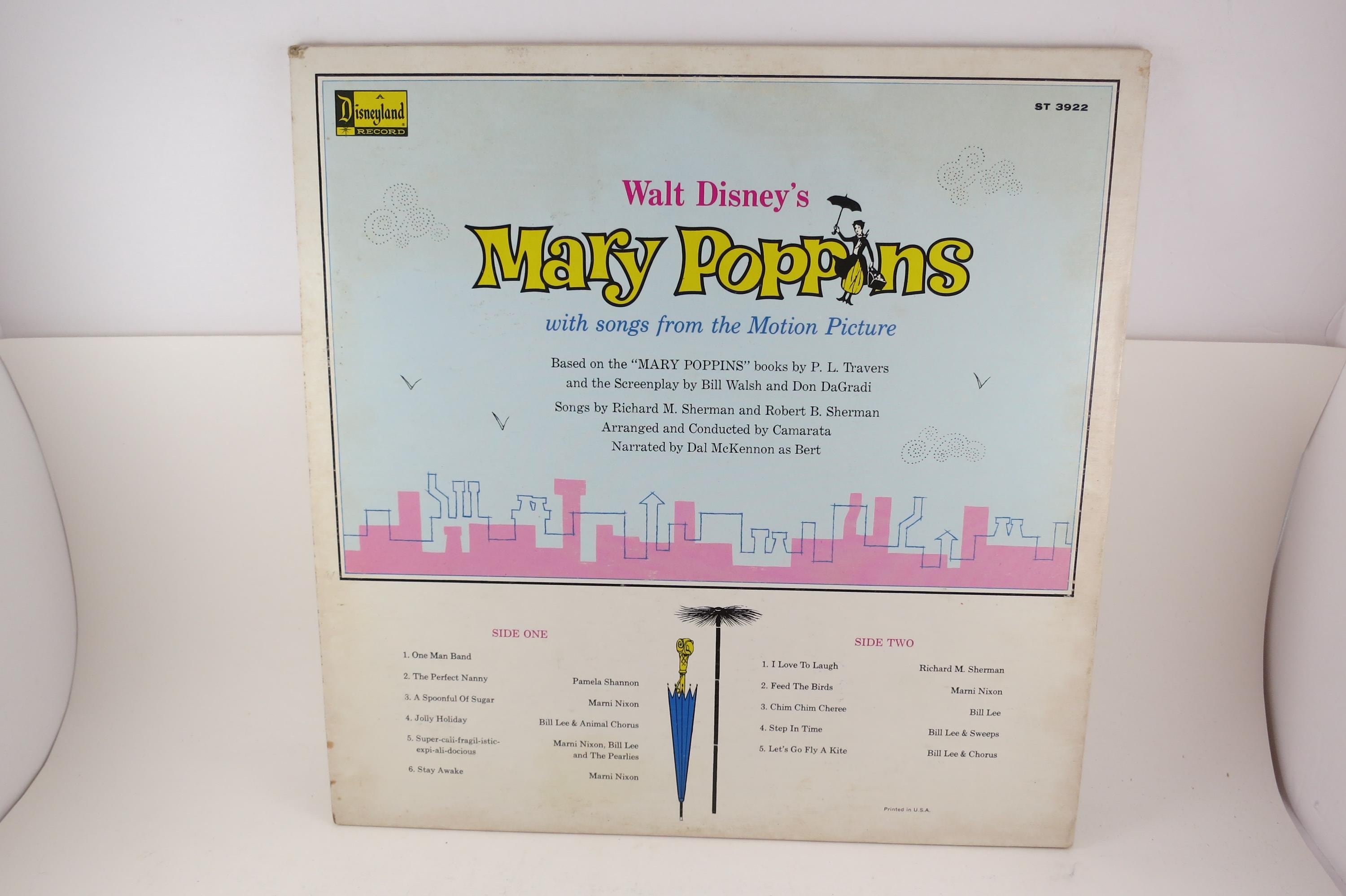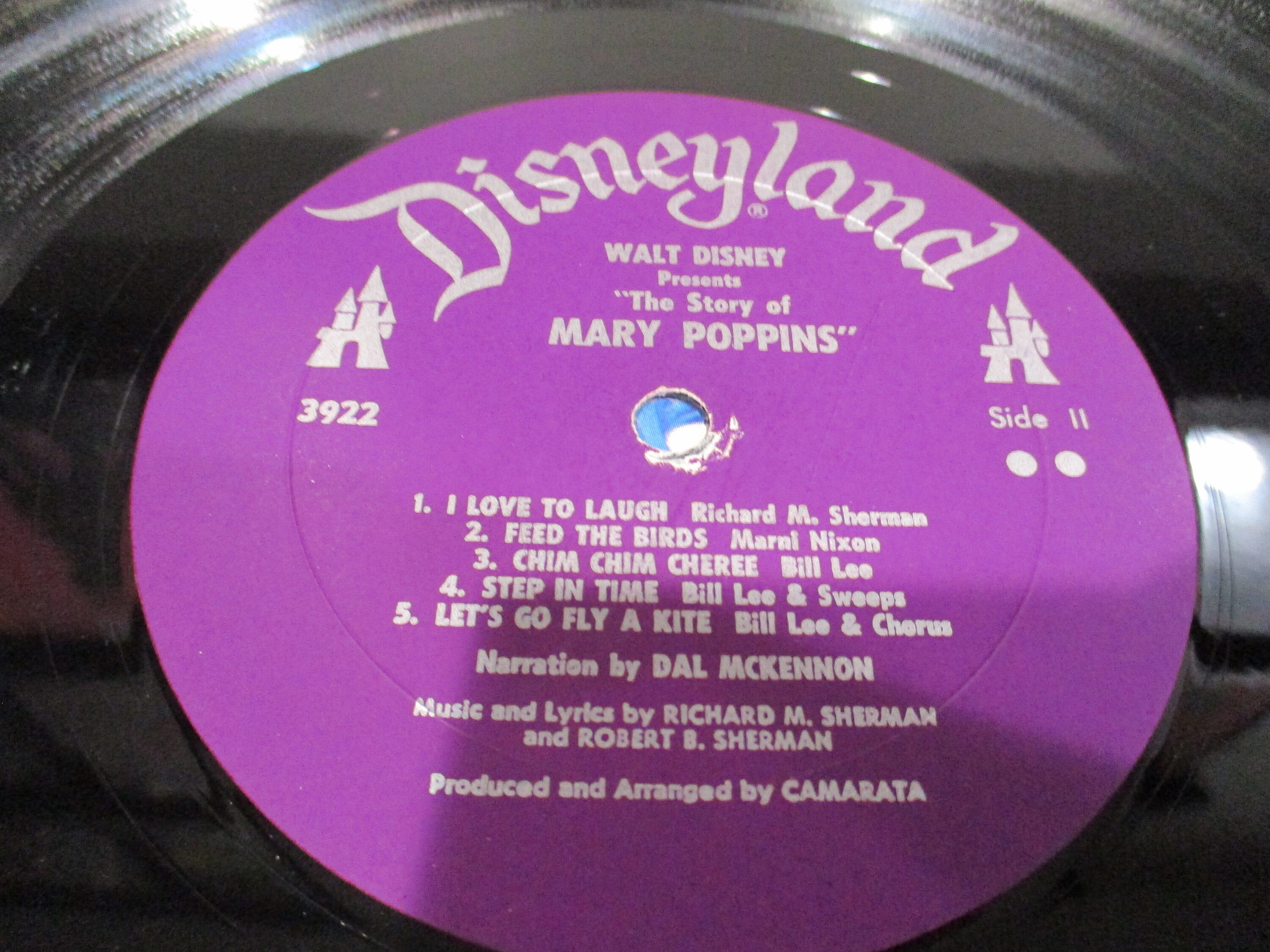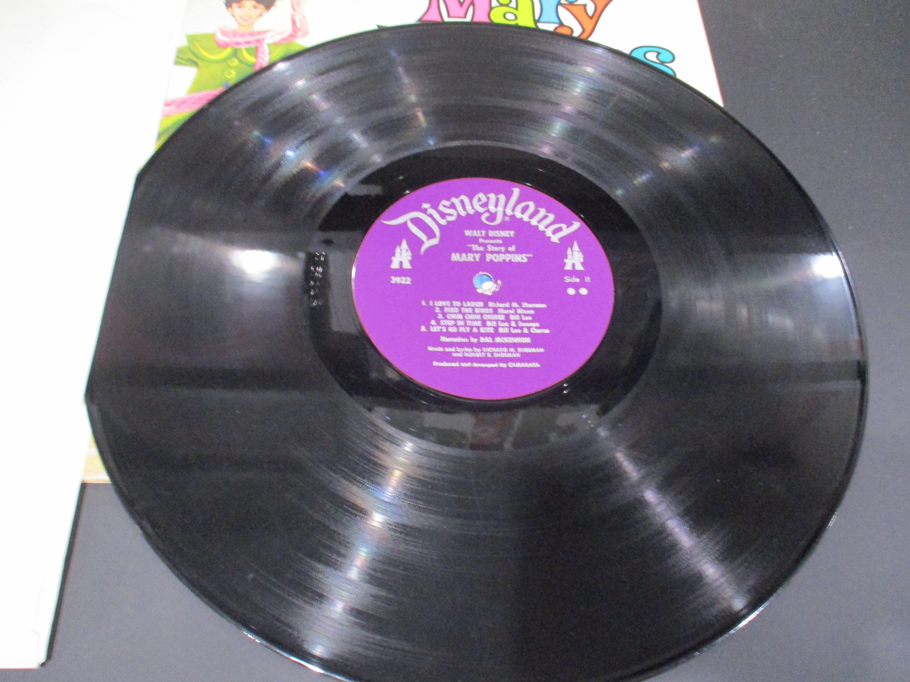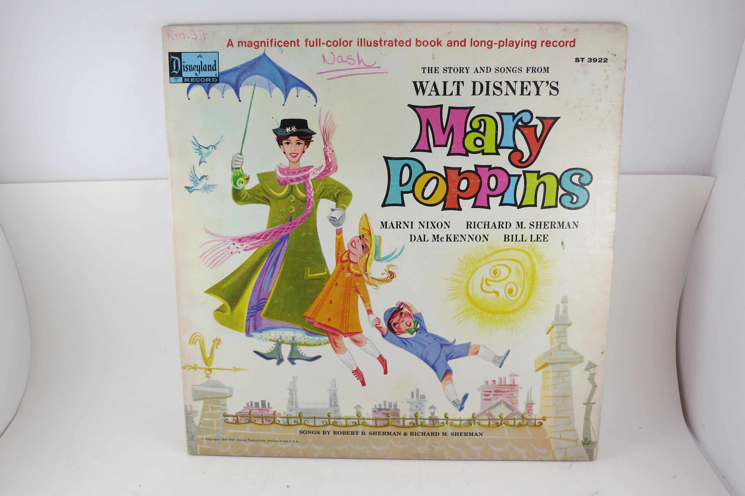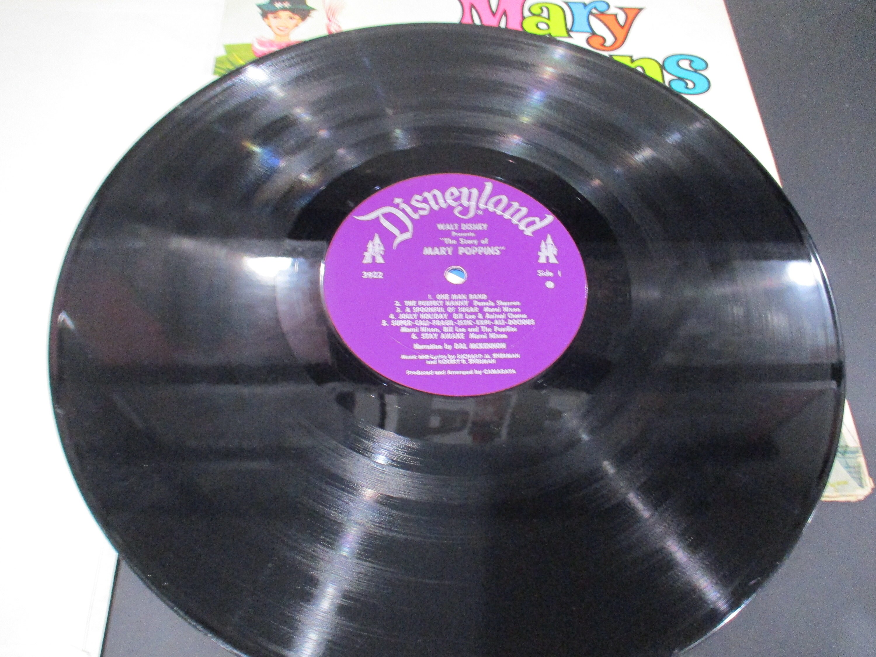 Vintage 1964 Children's LP Record Walt Disney's Mary Poppins Disneyland Records with Color Picture Book. Original cover is in very good condition and includes the full color picture book. Has some foxing on the inner book and a previous owners name on the cover. Record is excellent. Great addition to any collection or a perfect gift. Tracks are as follows