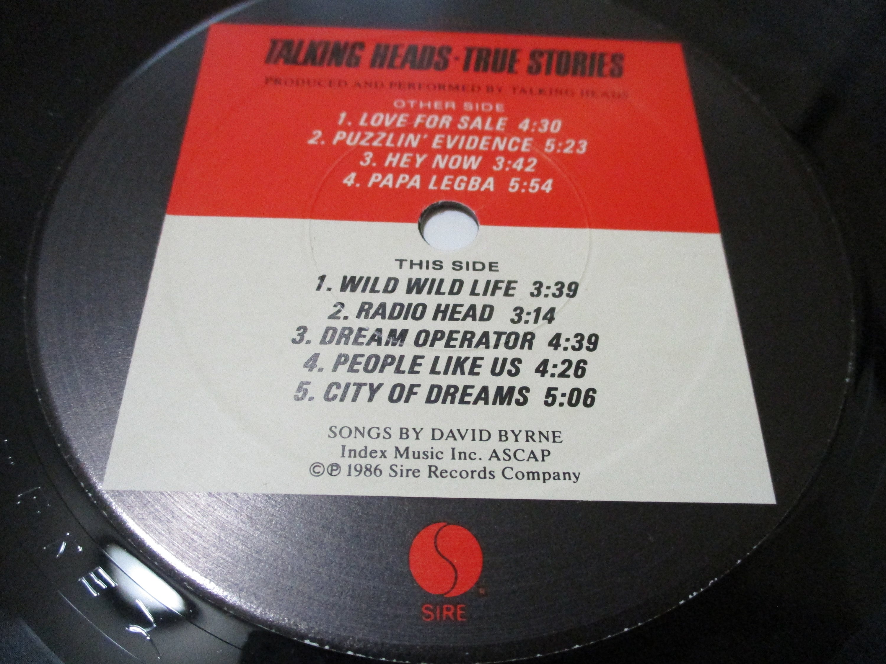 Vintage 1987 Vinyl LP Record True Stories The Talking Heads Excellent Condition. Original cover is excellent and includes the original inner paper sleeve. Record is excellent as well. Tracks are as follows