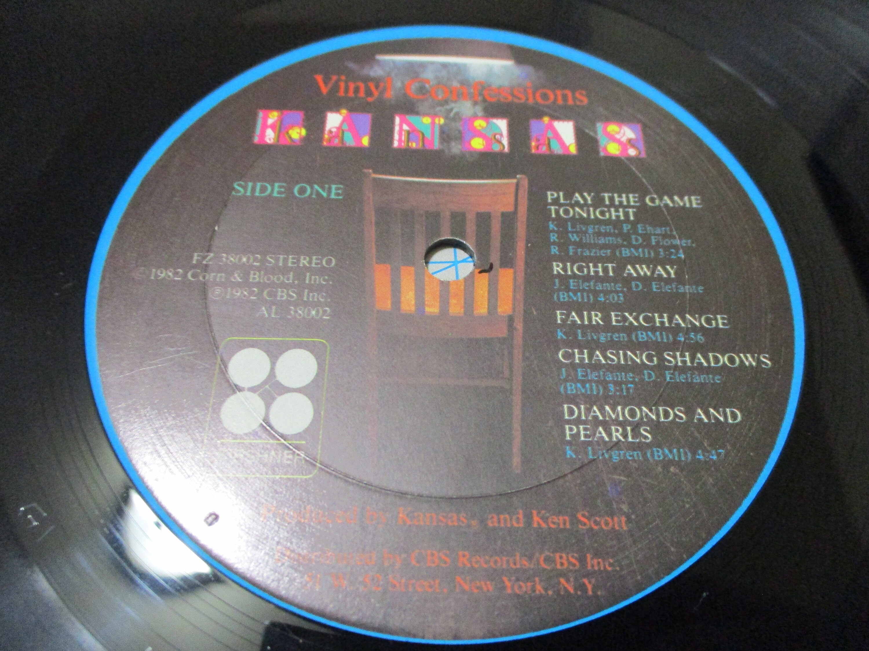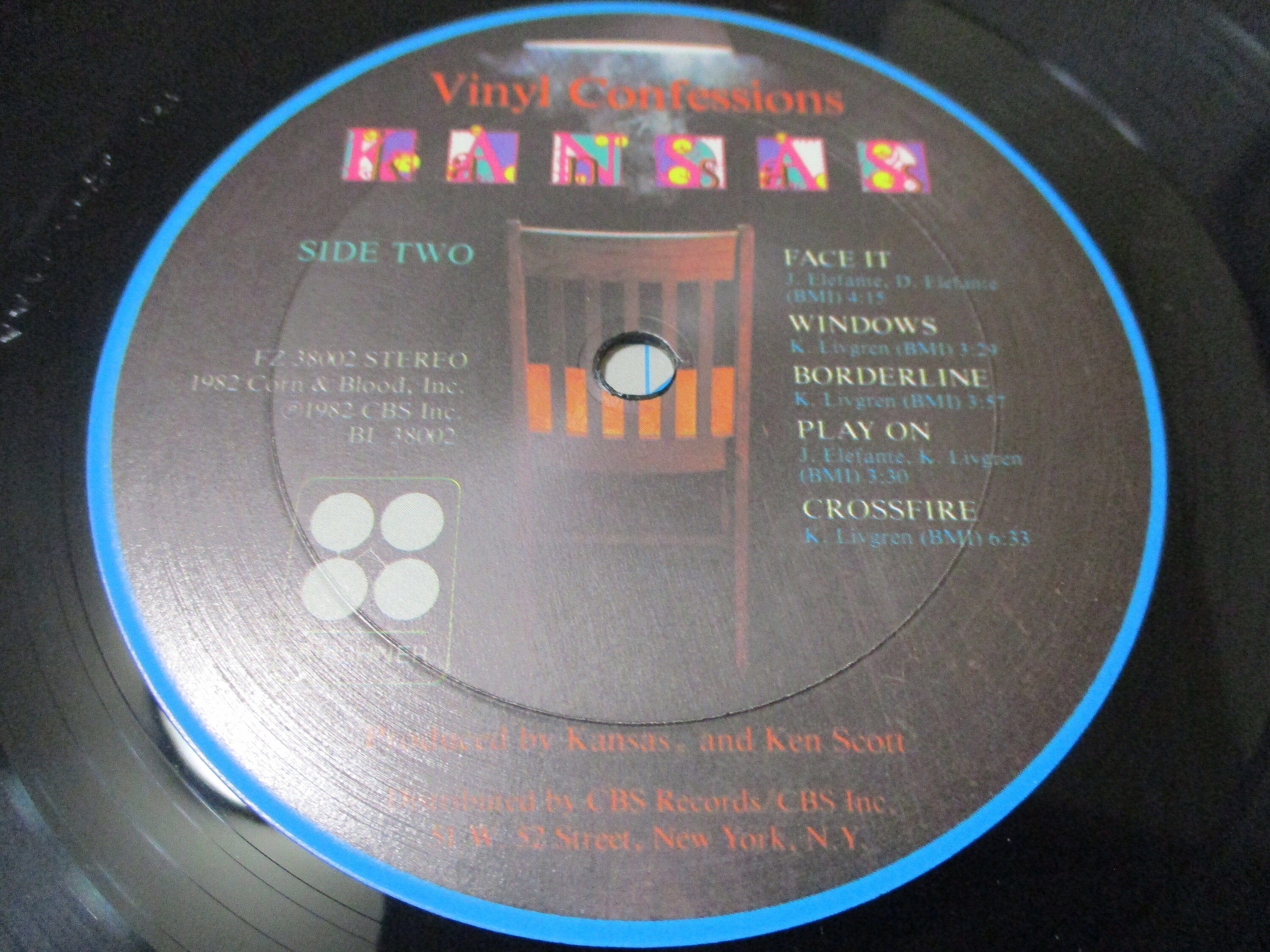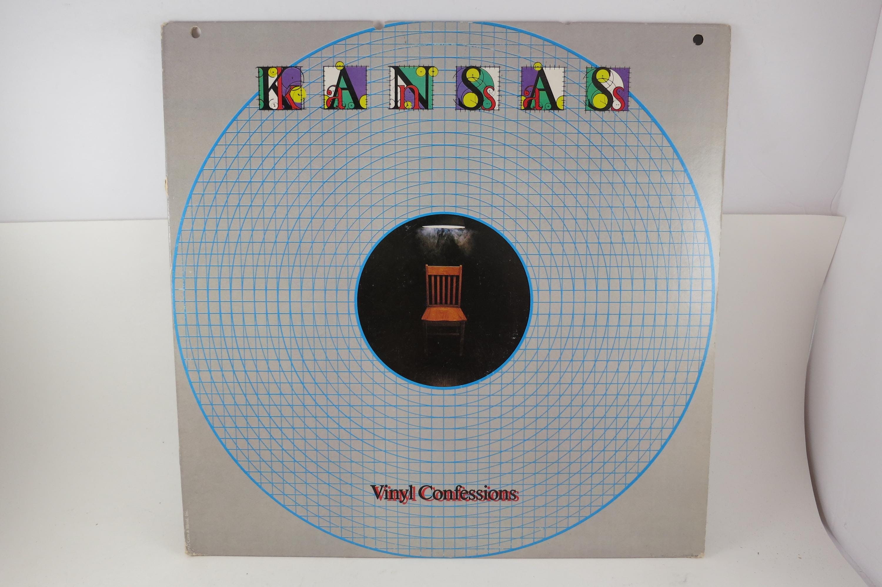 Vintage 1982 LP Vinyl Record Kansas Vinyl Confessions Excellent Condition. Original cover is in very good condition and includes the original inner paper sleeve. Has three small punches on the top seam. Record Is excellent and plays perfect. Tracks are as follows