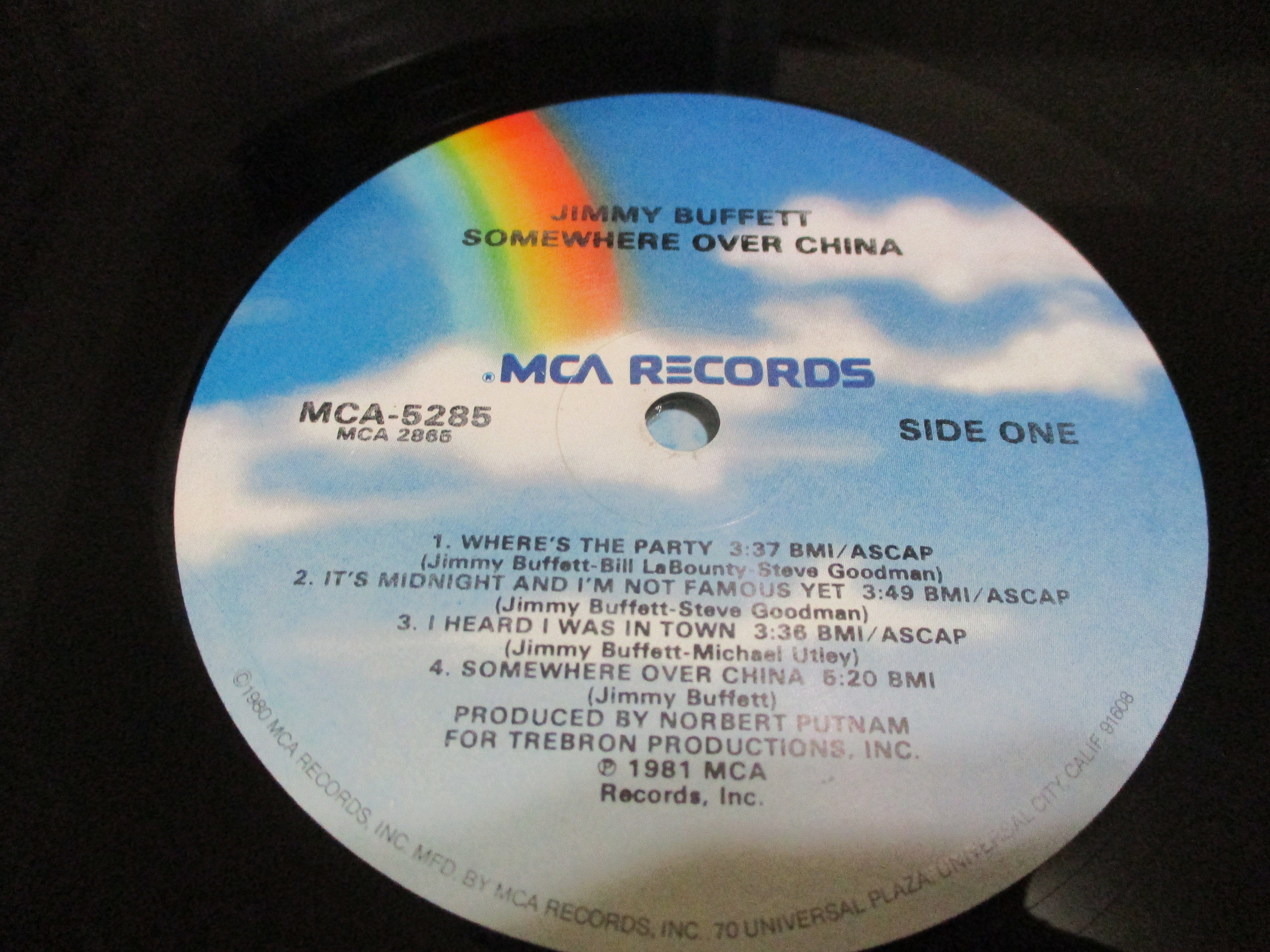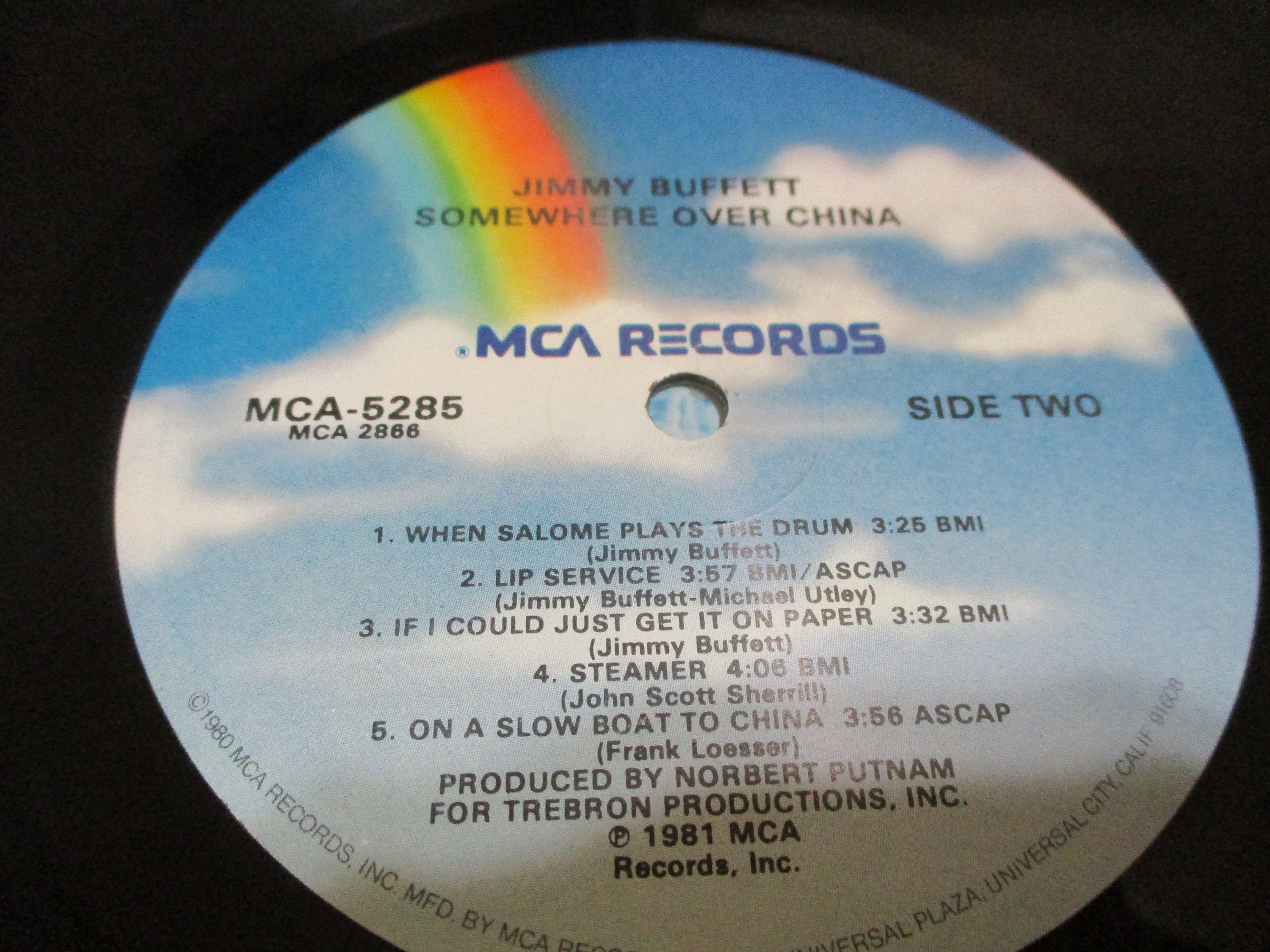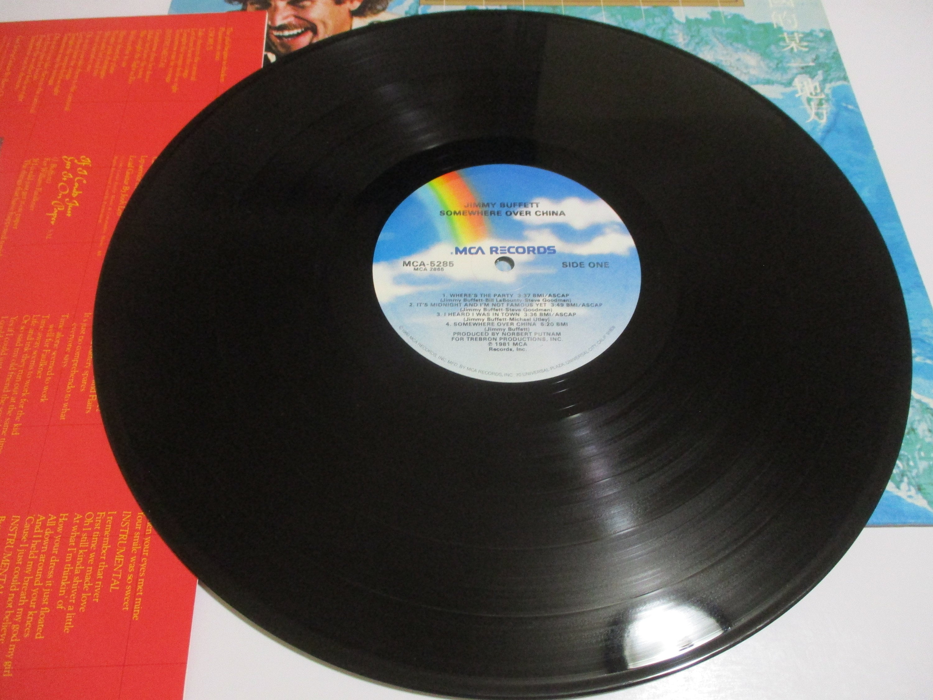 Vintage 1982 Vinyl LP Record Jimmy Buffett Somewhere Over China Near Mint Condition. Original cover is In Near Mint condition and includes the original inner paper sleeve. Record is Near Mint. Tracks are as follows