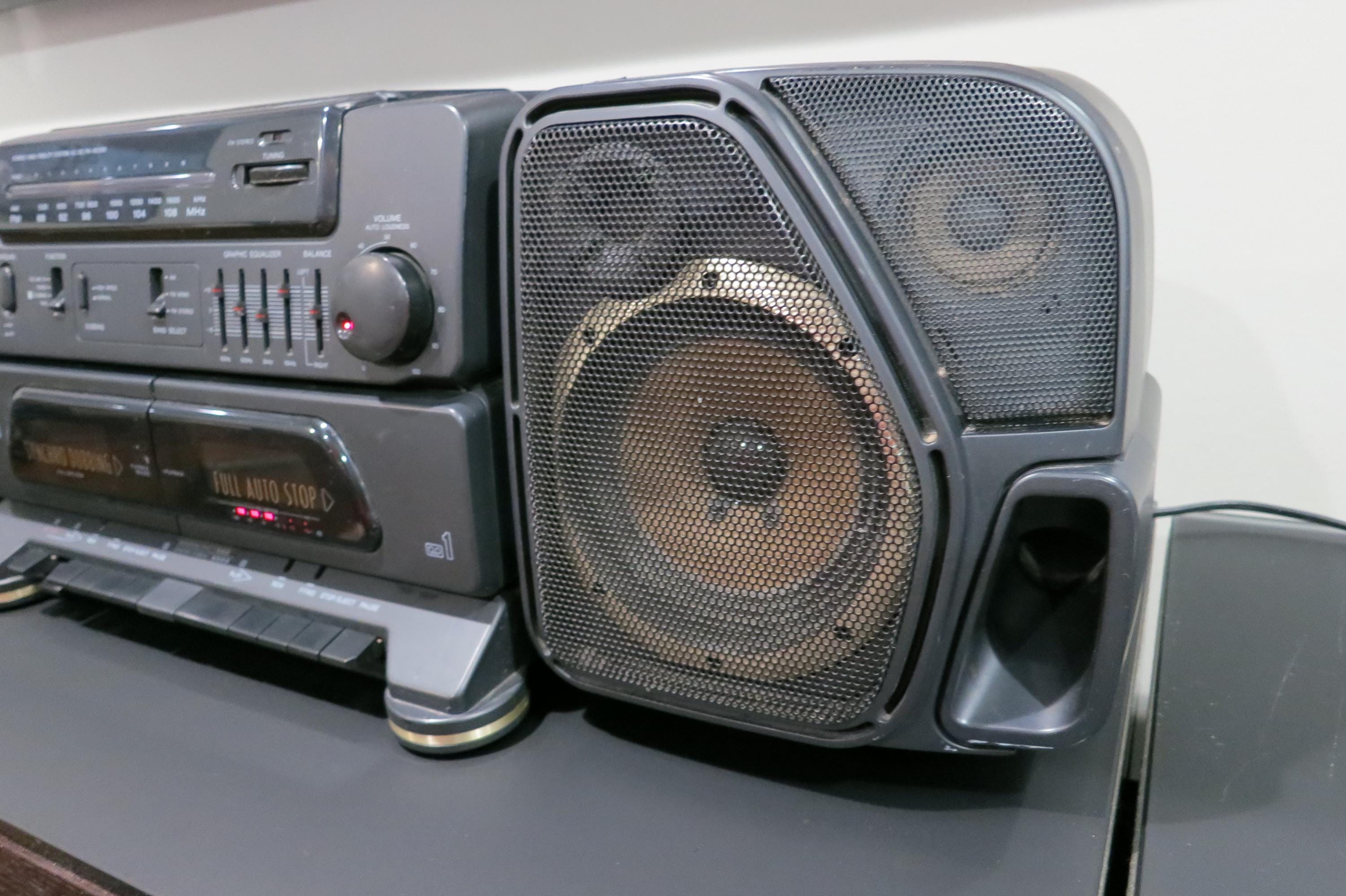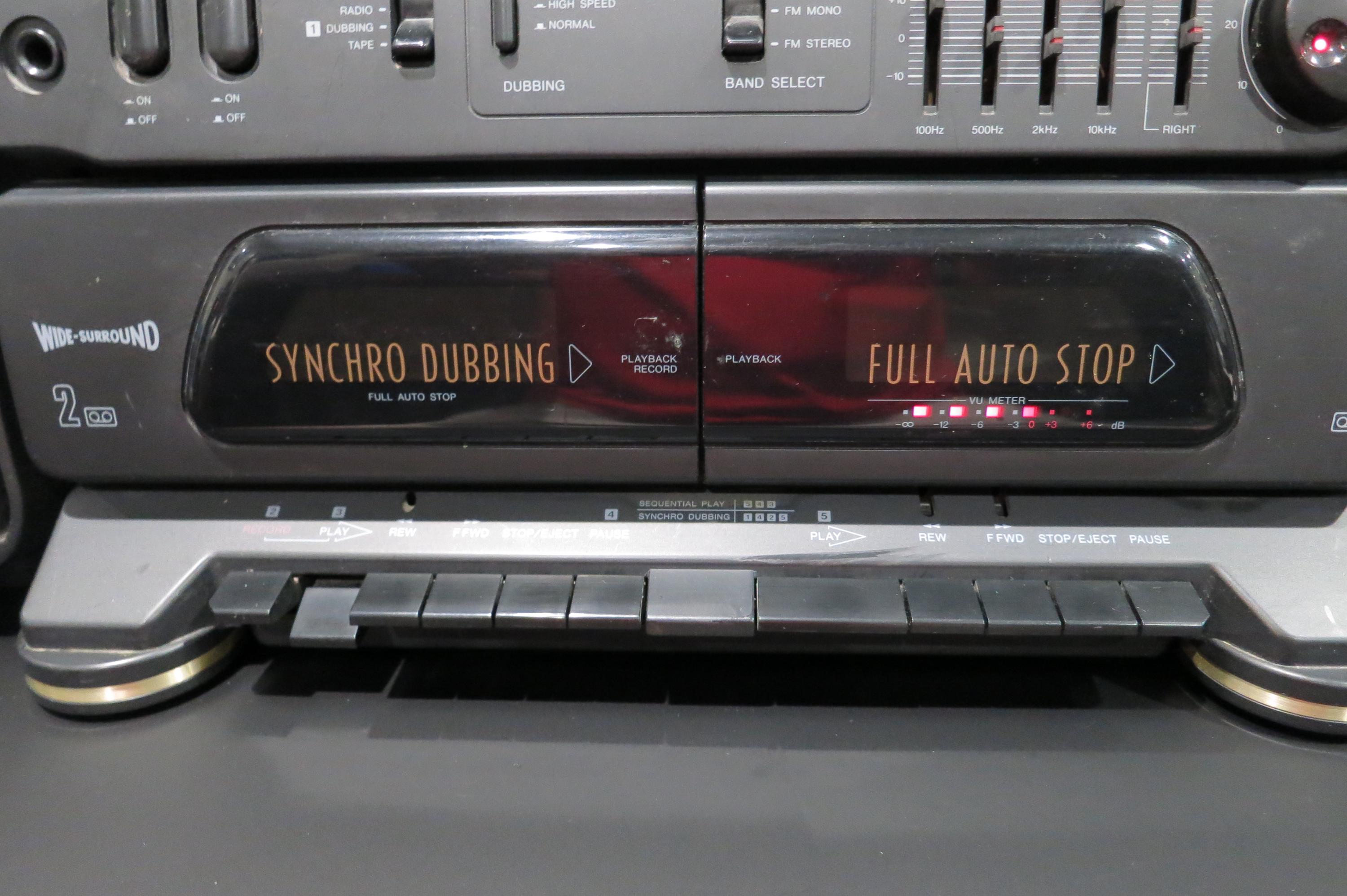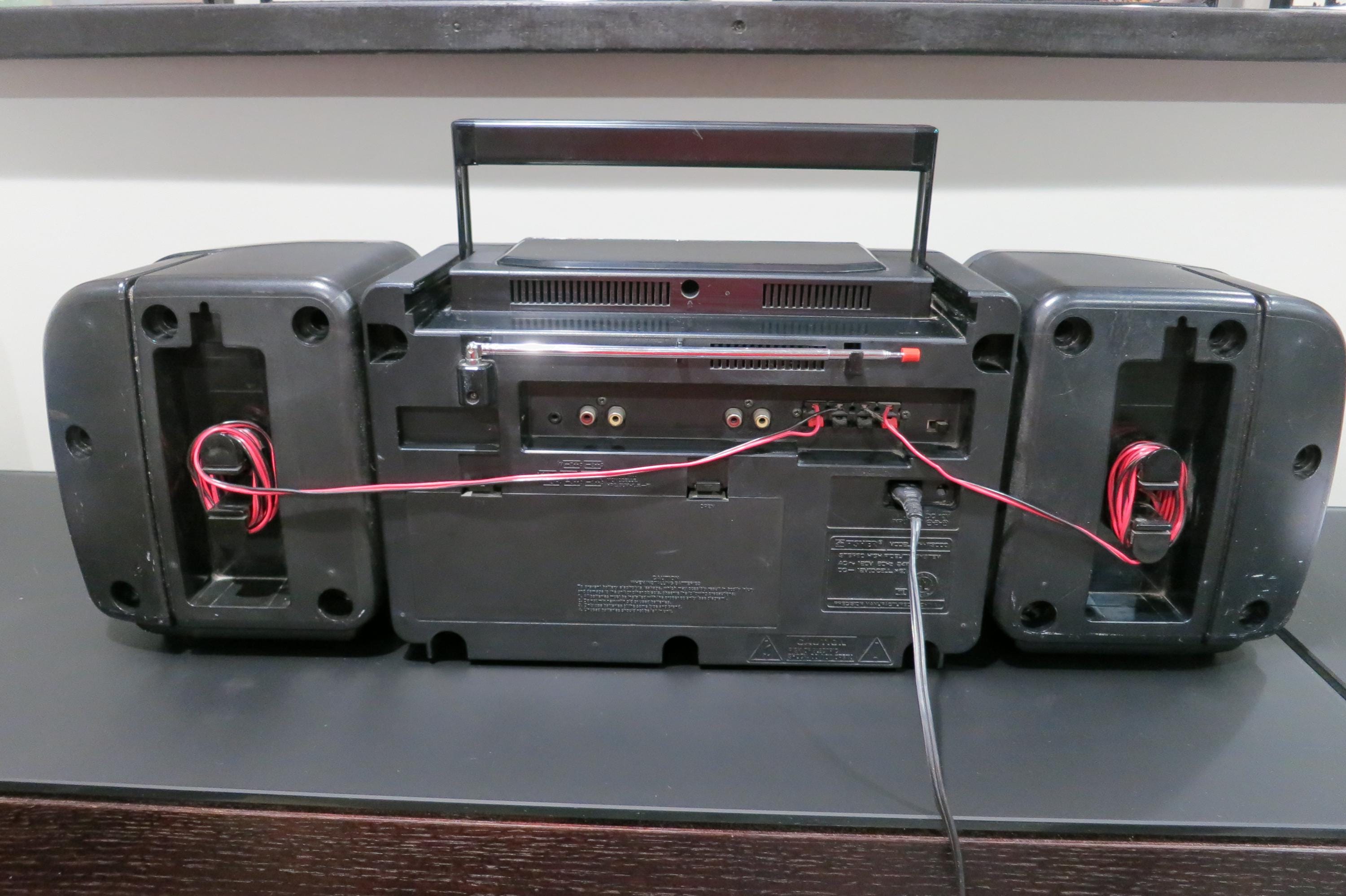 This is a very nice boom box that can also be used as a home stereo system. Tons of features, every one works! This unit has been very well cared for. Has a few normal cosmetic scuffs here and there. Features Include