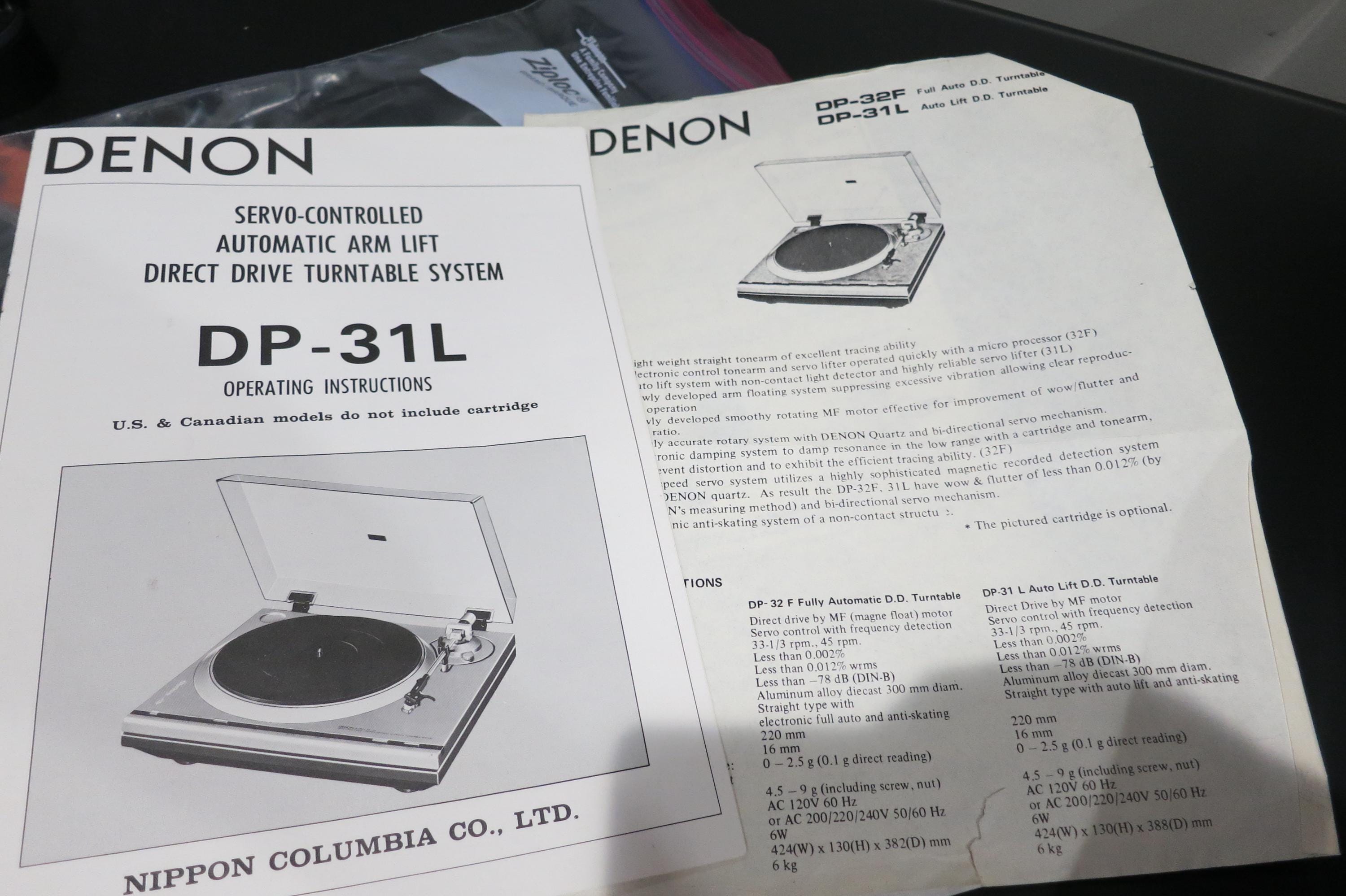 Vintage Denon Quartz Automatic Direct Drive Turn Table Record Player System DP-31L Works Like New and Looks Pretty Close.
