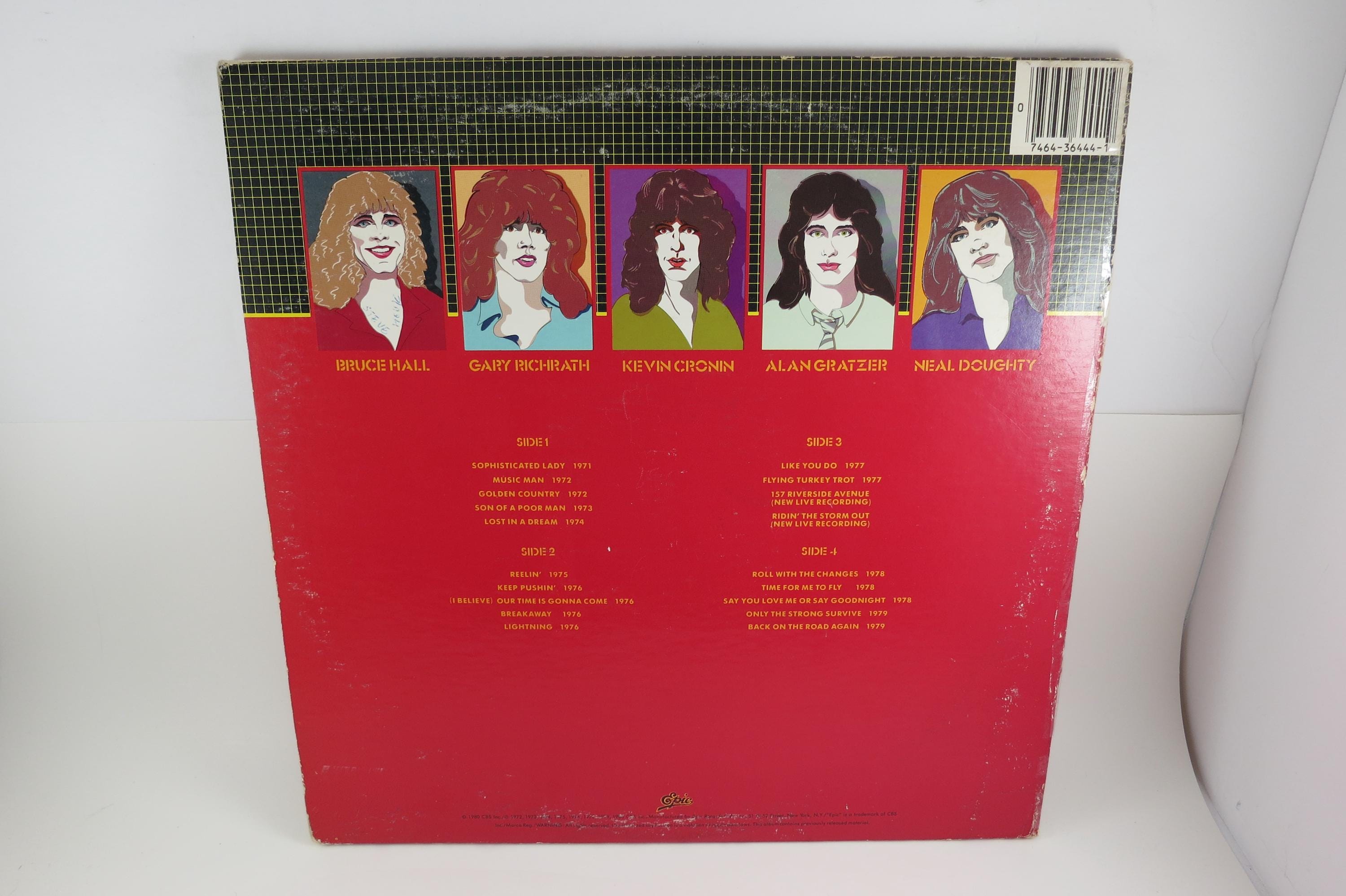1980 Vinyl LP Record Reo Speedwagon A Decade of Rock and Roll 1970 to 1980 Excellent Condition. Original cover is in very good condition and includes the inner paper sleeves and the booklet. Has clear tape on the spine. Records are both excellent. Great Album! Tracks are as follows