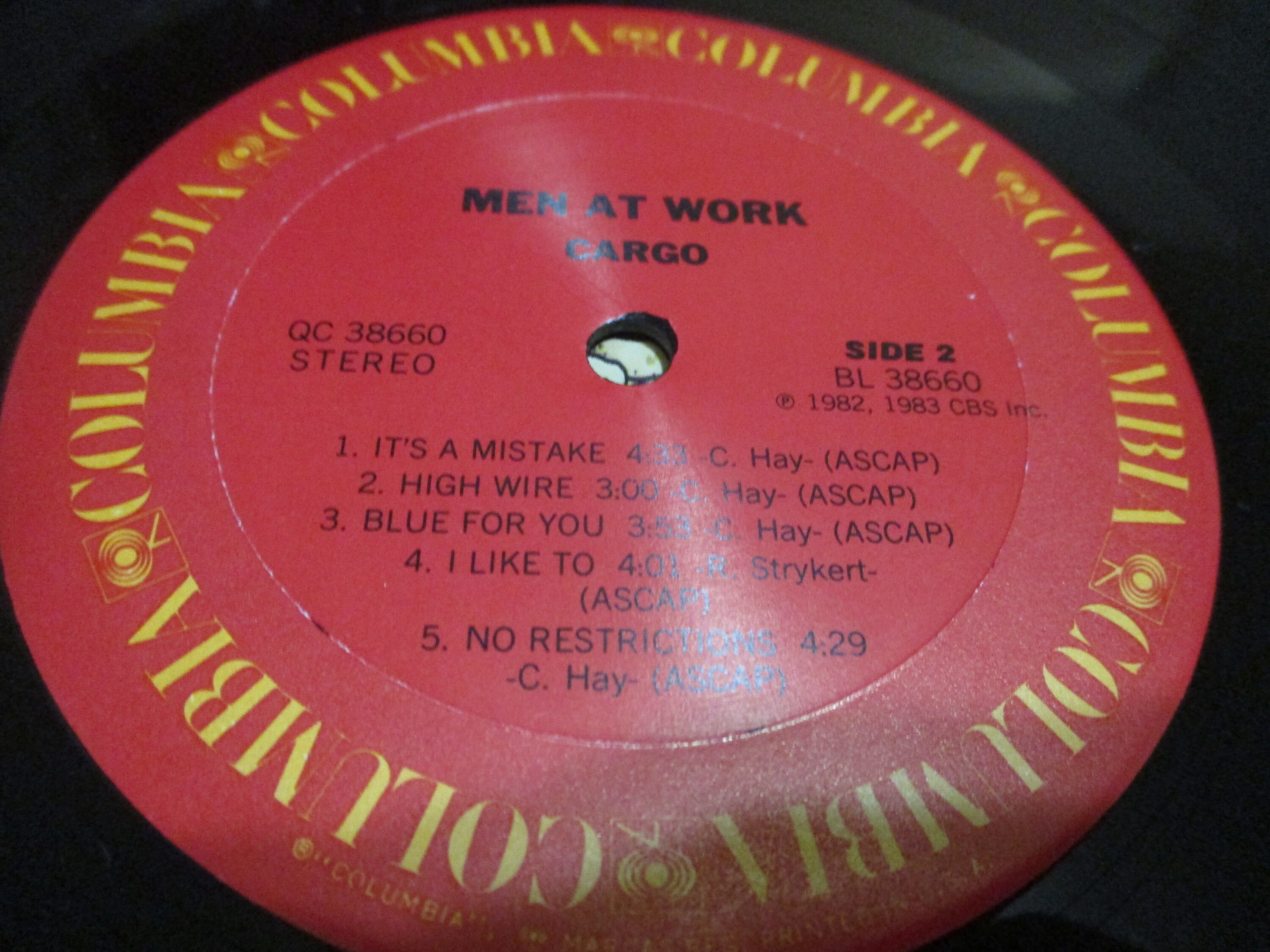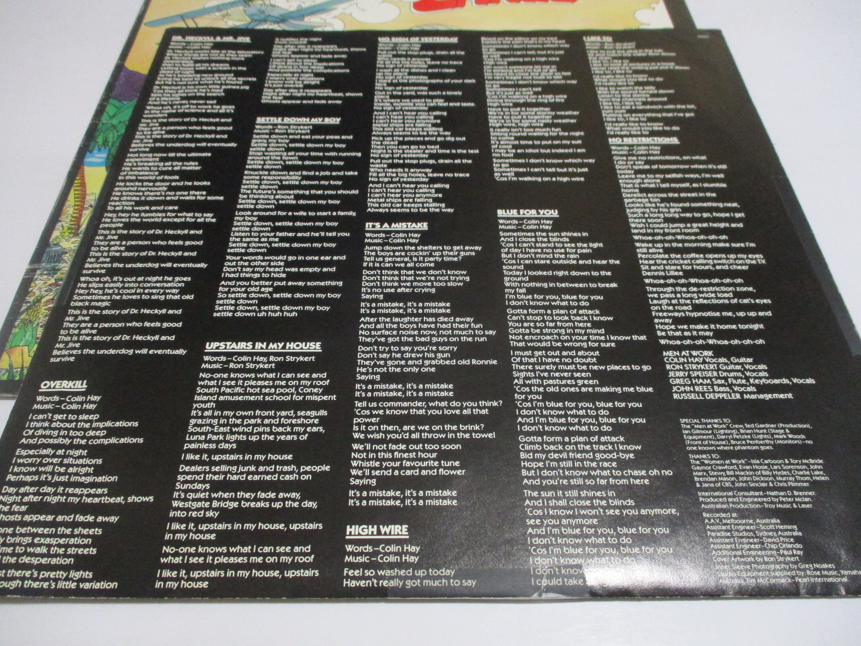 Vintage 1983 Vinyl LP Record Men At Work Cargo Excellent Condition. Original cover is excellent and includes the original inner paper sleeve. Record is excellent. Tracks are as follows