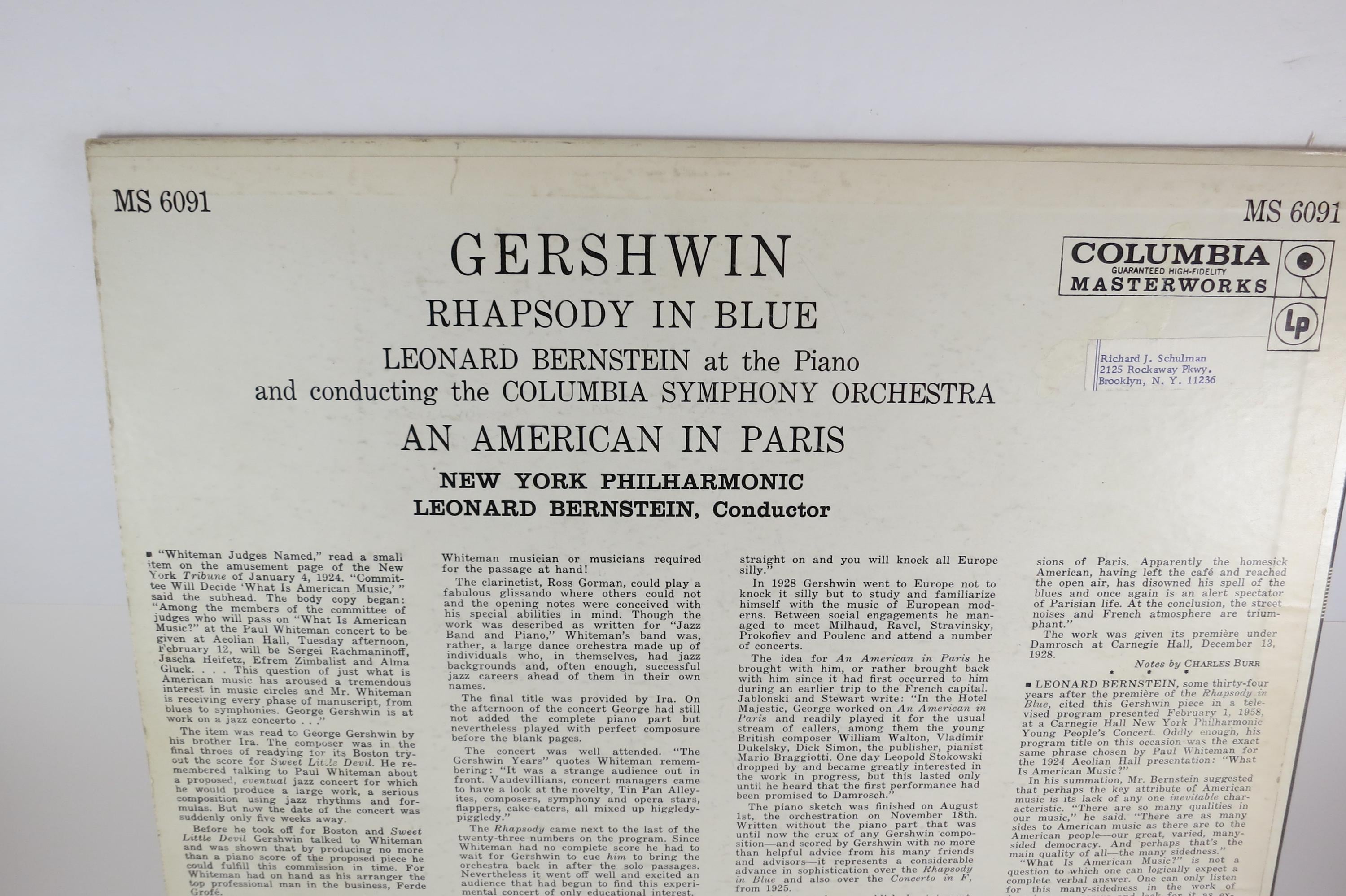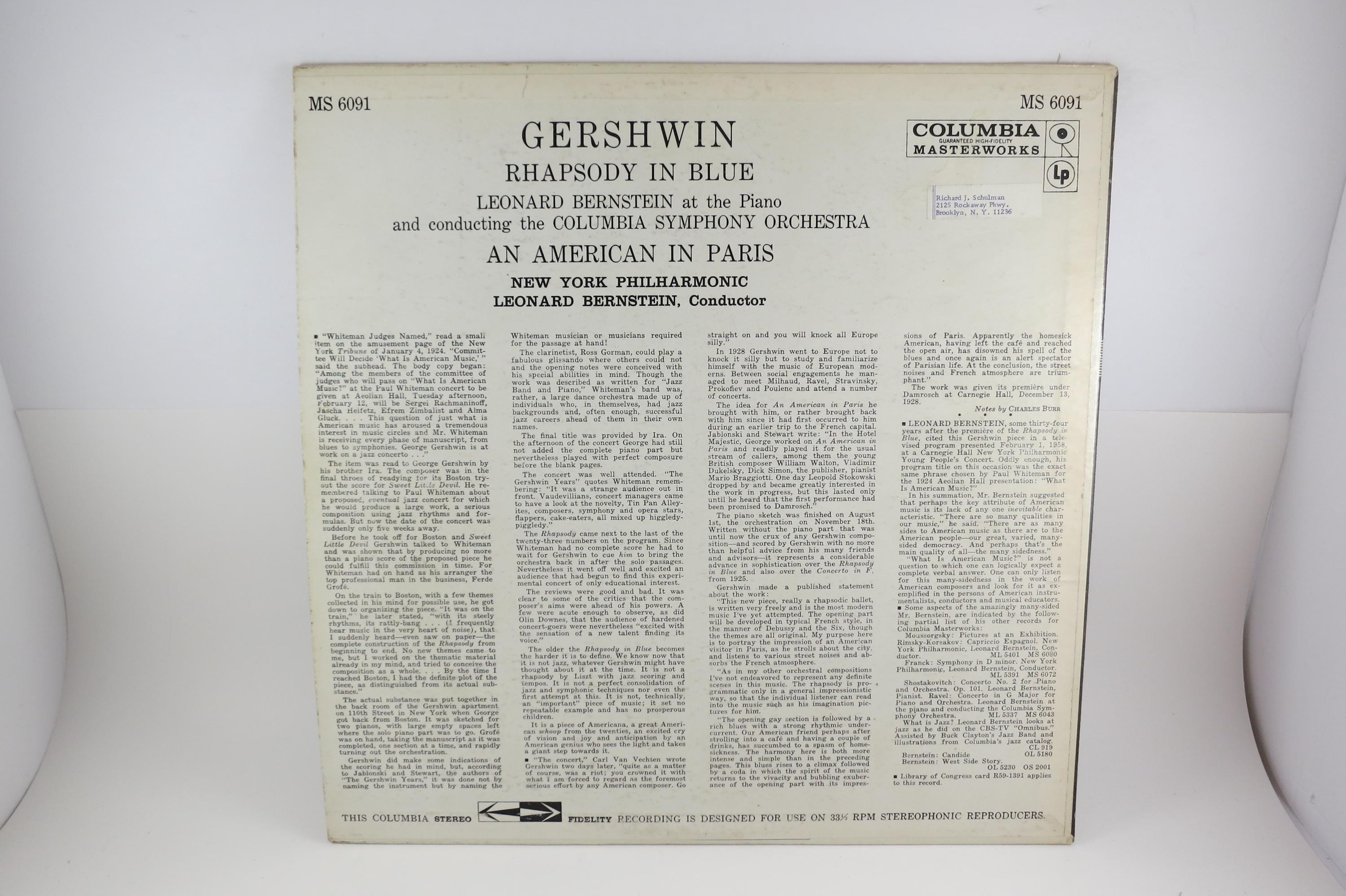 Vintage 1959 Vinyl LP Record Rhapsody in Blue An American in Paris Gershwin Bernstein Excellent Condition 6 Eye Columbia Label
